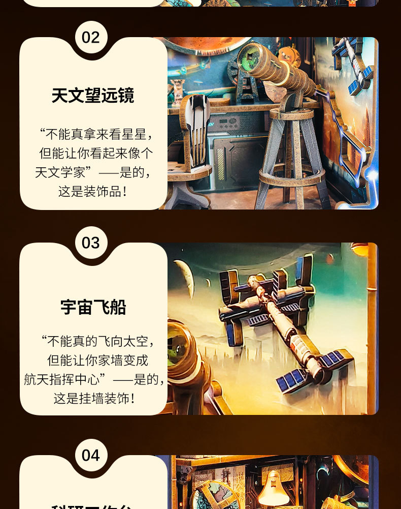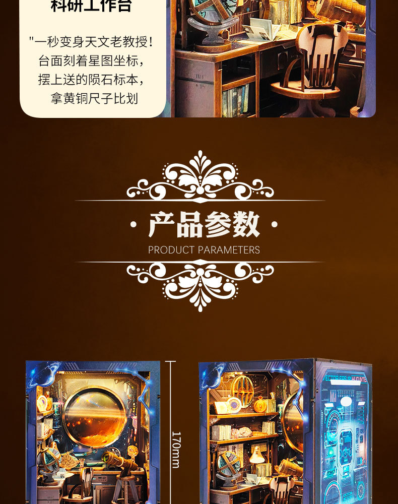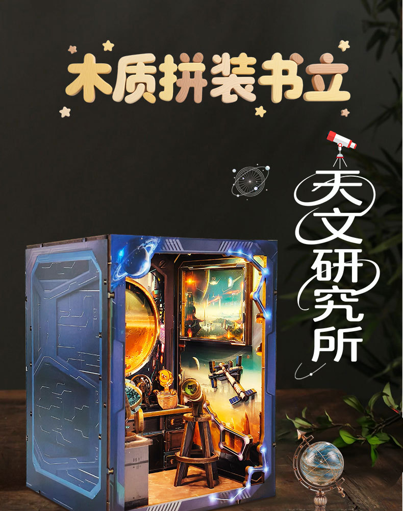 关键词:天文研究院DIY书立小屋木质微缩场景玩具创意桌面摆件益智拼图