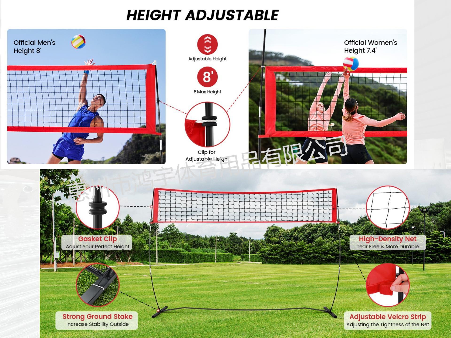 排球训练网便携式沙滩排球网室内室外独立式排球练习网高度可调节
