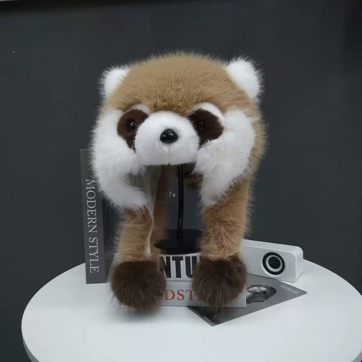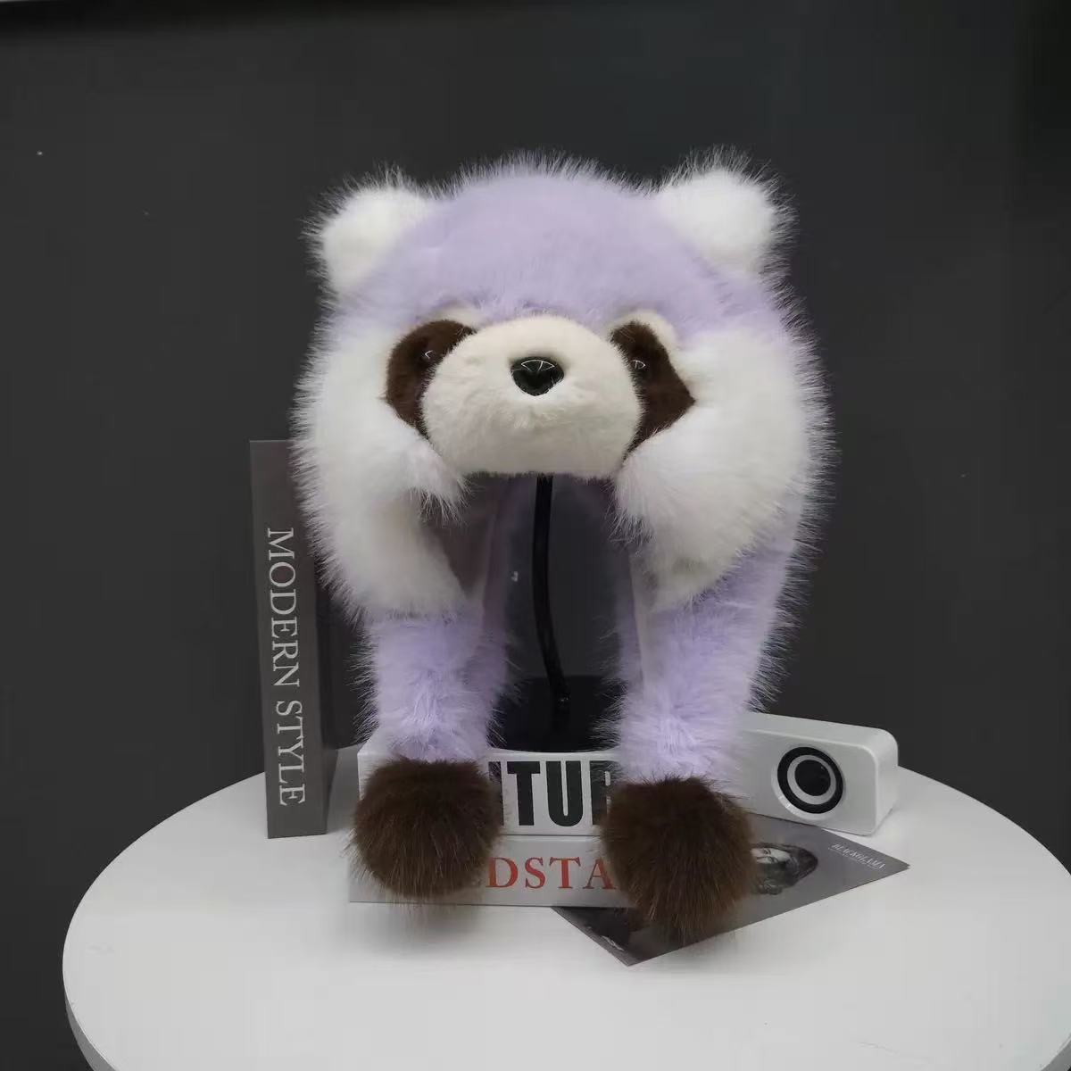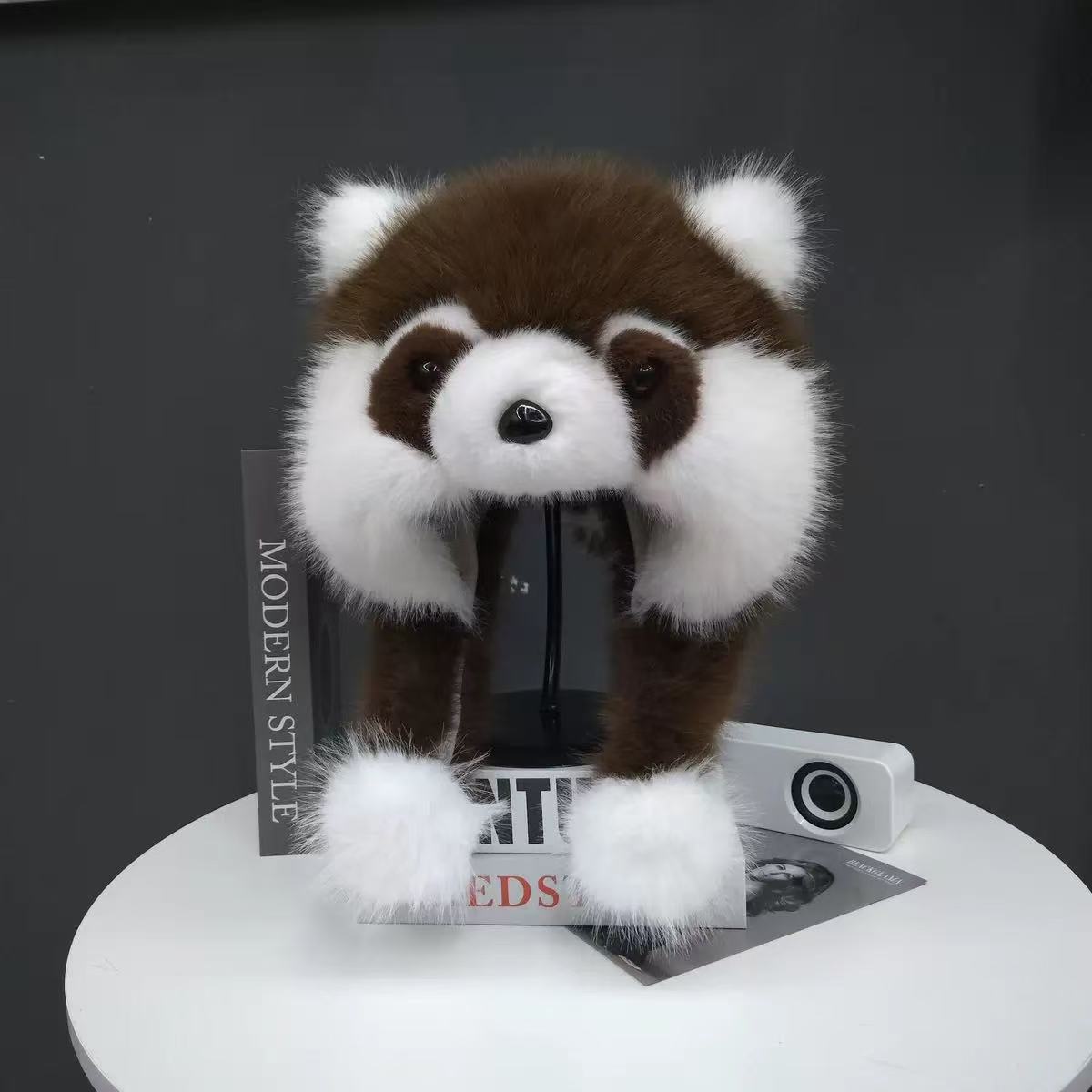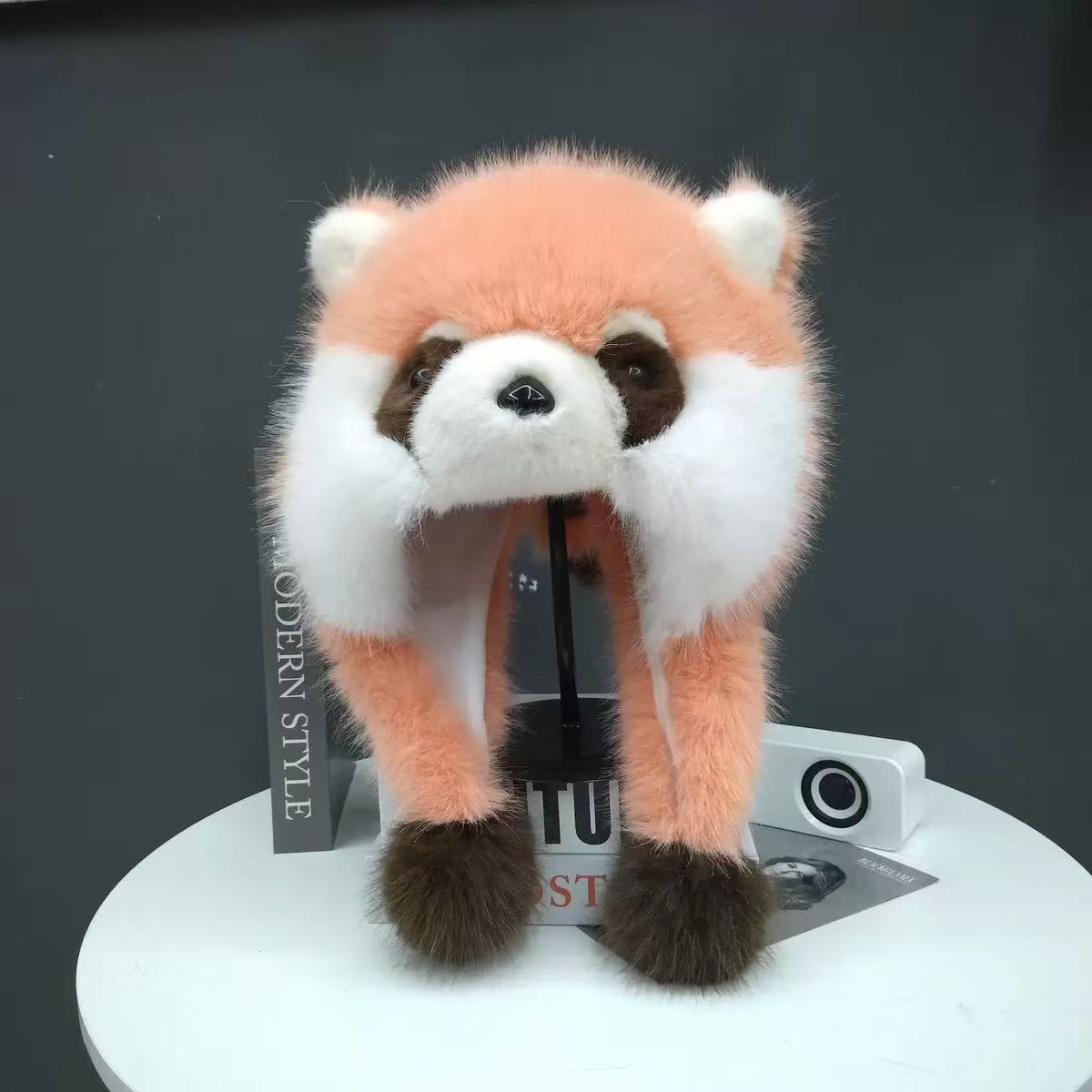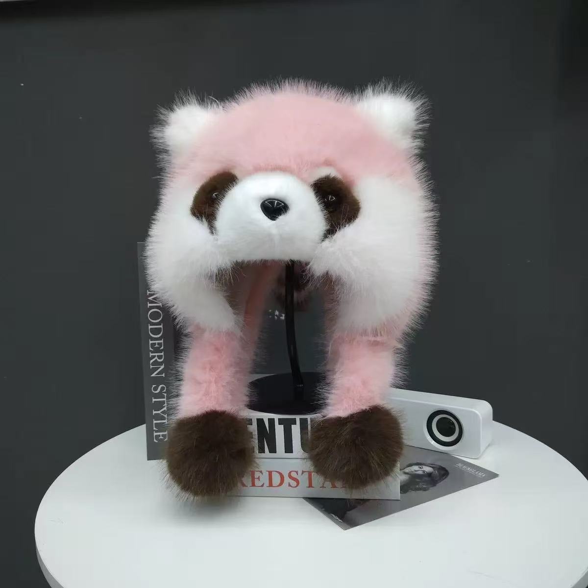 亲子款秋冬帽子女冬季加绒保暖雷锋帽儿童可爱熊猫毛绒护耳套头帽