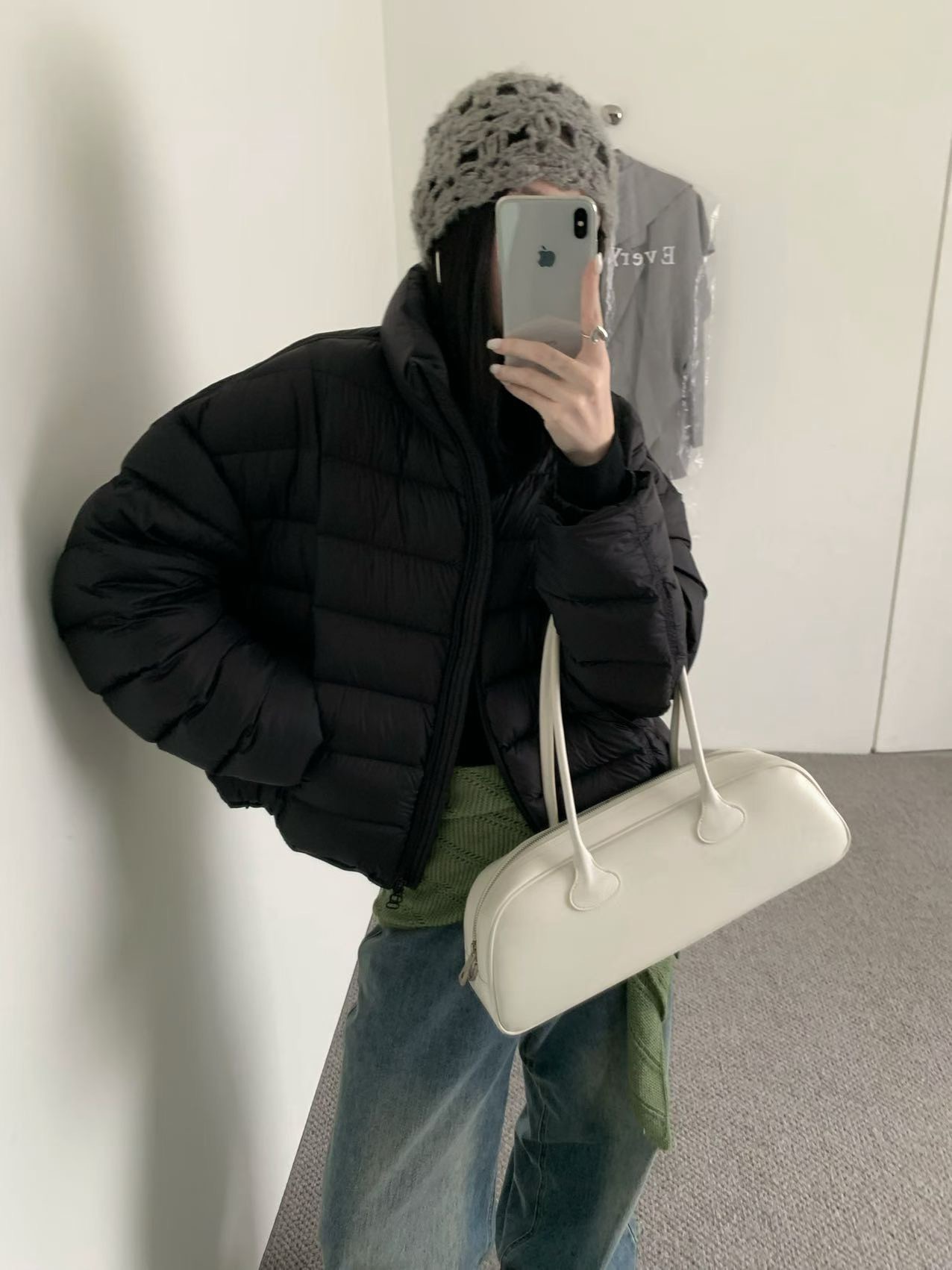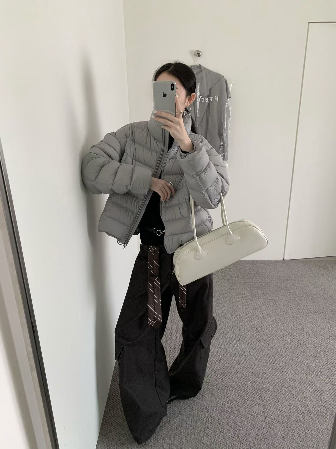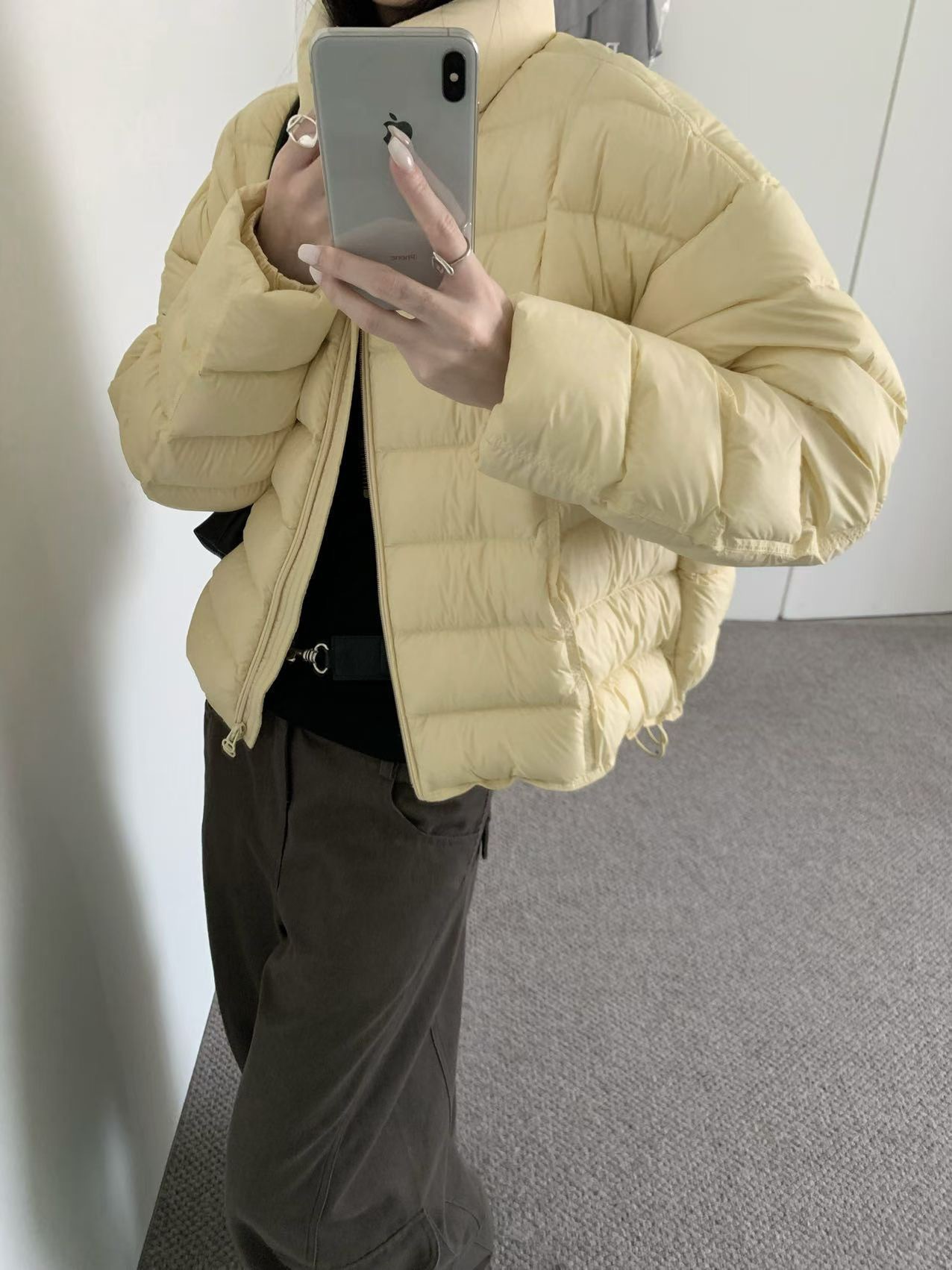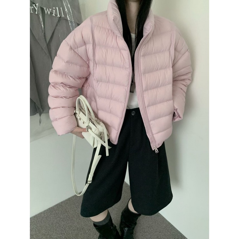 小个子立领短泡芙2025新款白鸭绒韩系排骨羽绒服面包轻薄外套平湖