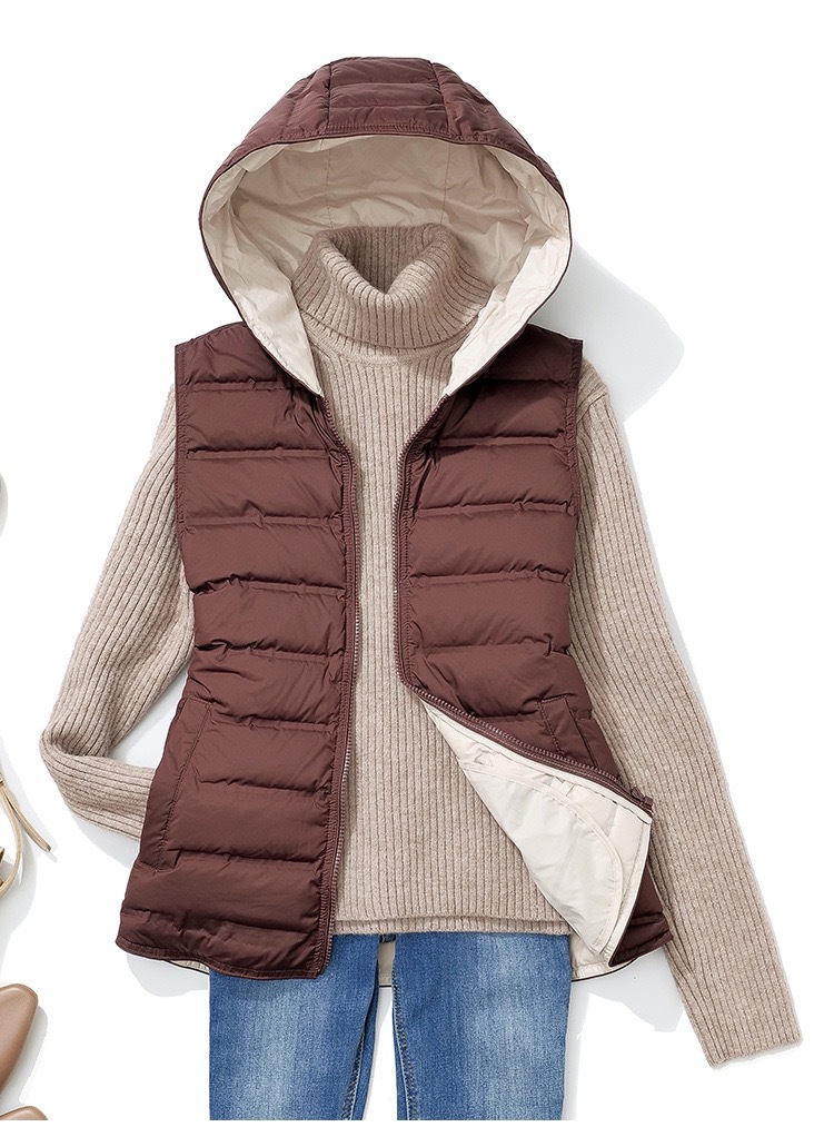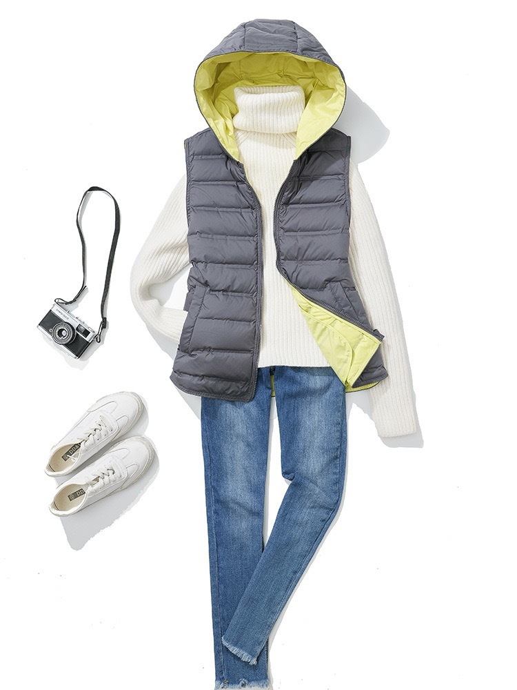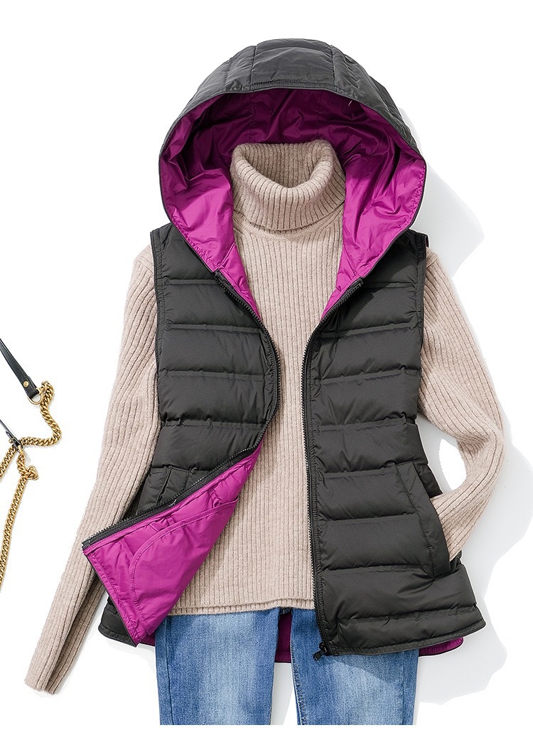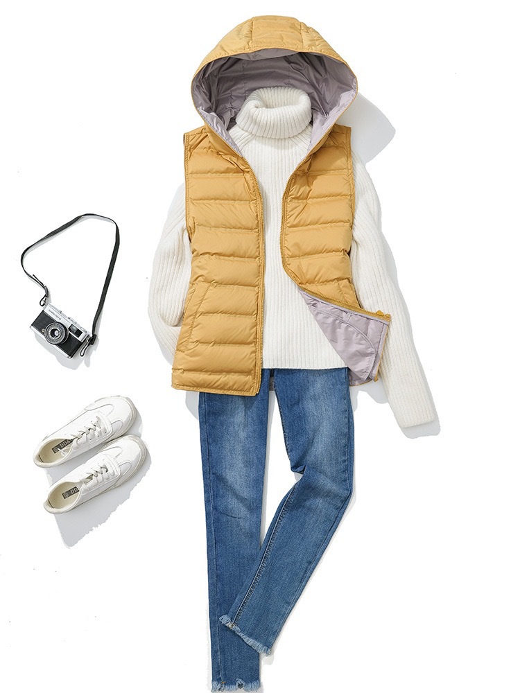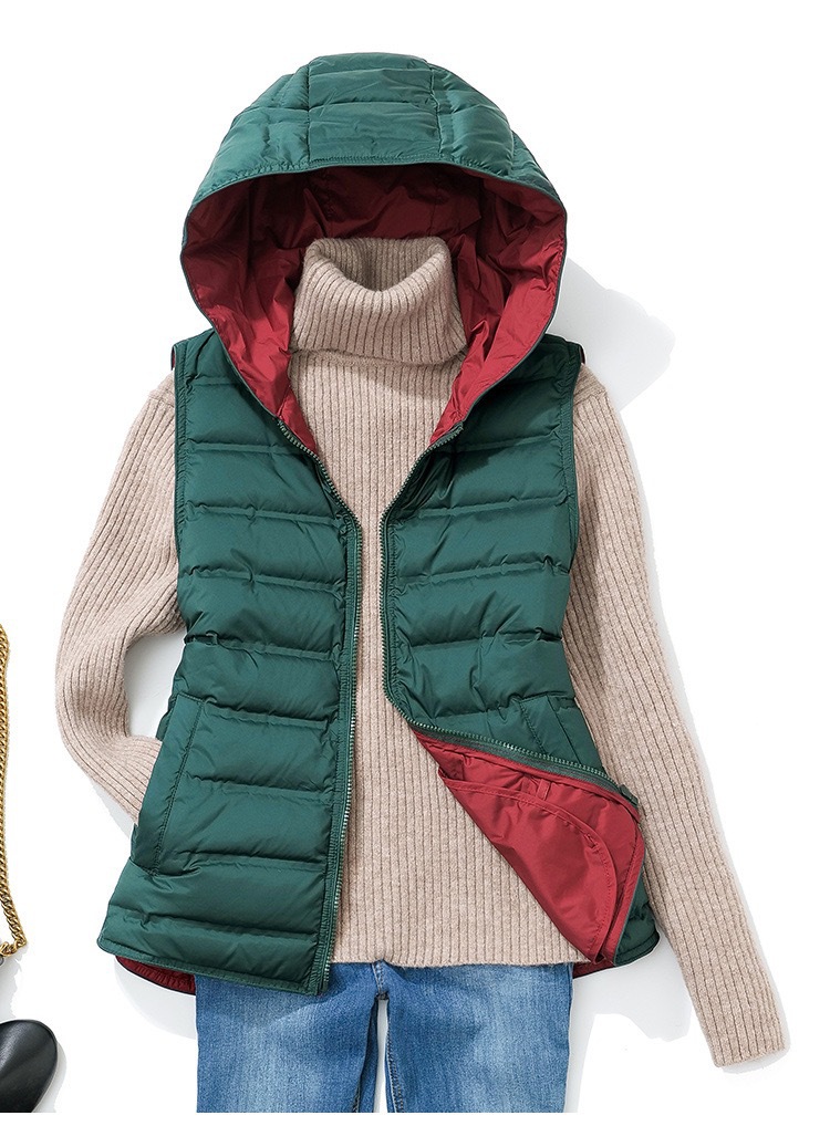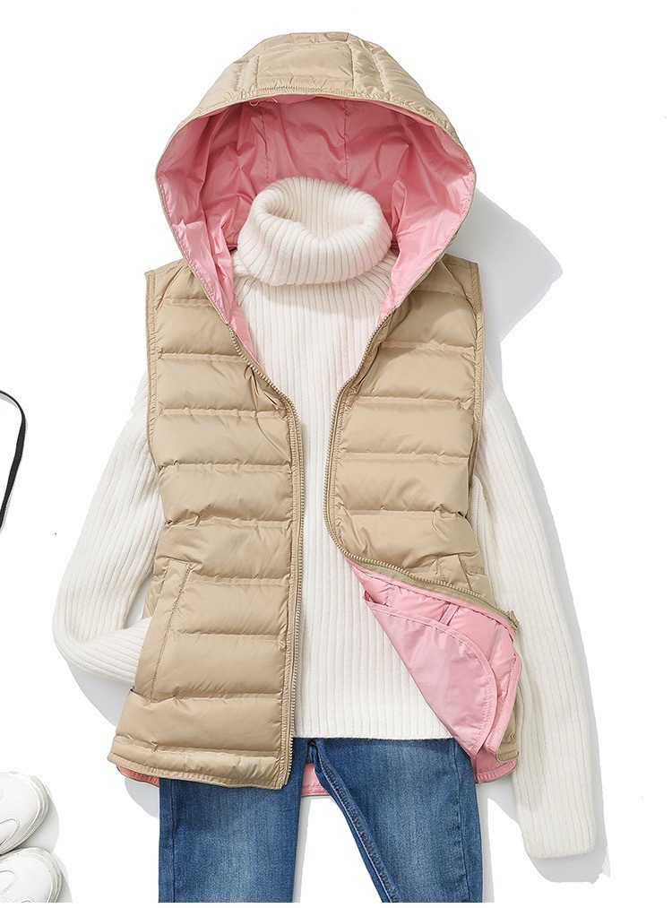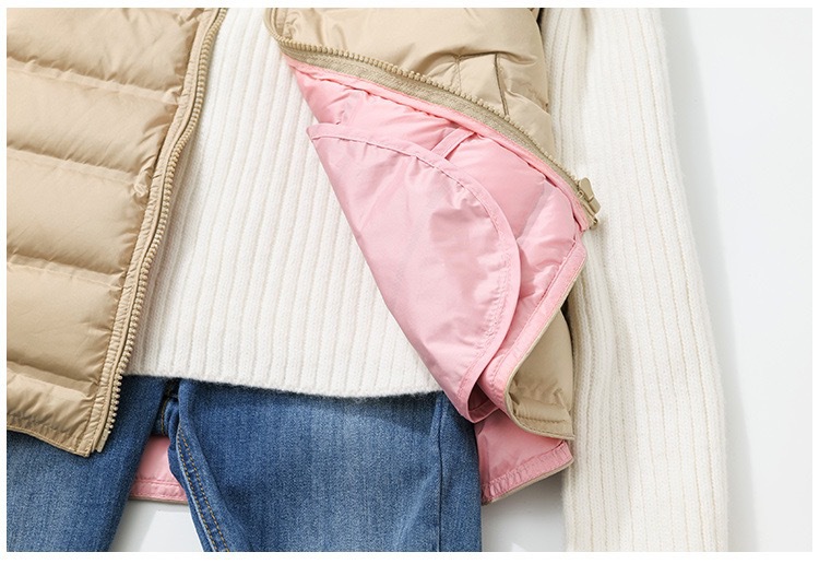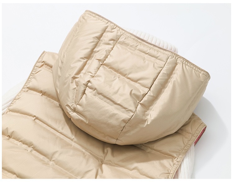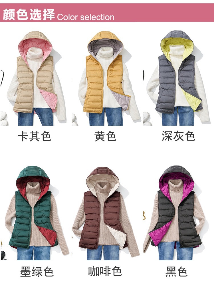推荐理由:跨境秋冬无缝压胶轻薄羽绒服马甲女短款轻便内搭连帽双面穿背心潮