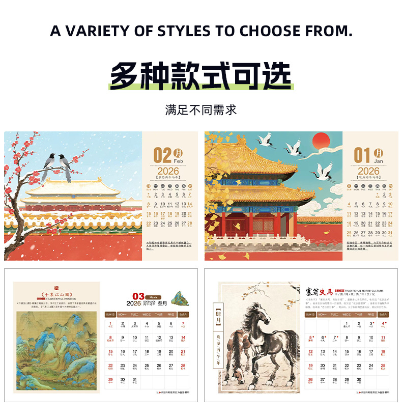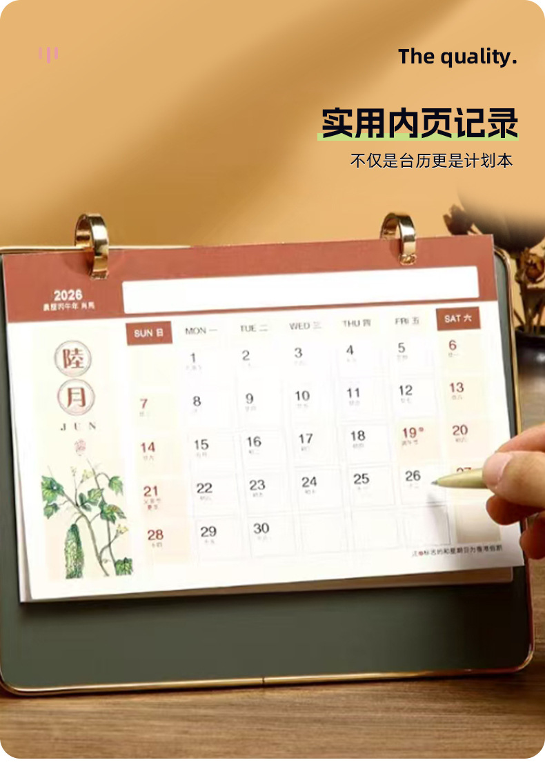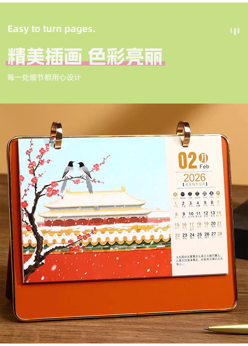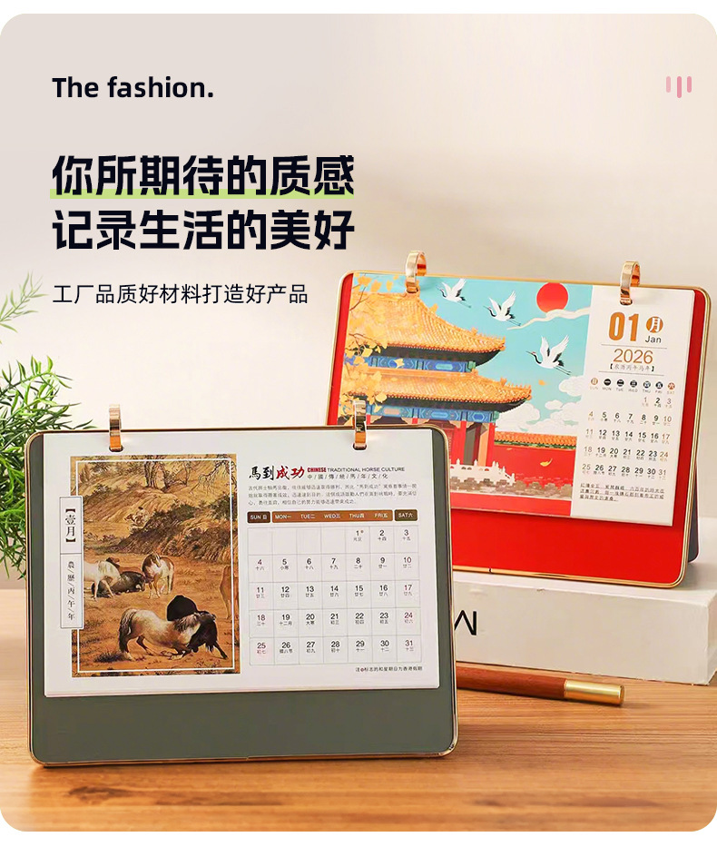 2026新款三折多功能皮面台历商务创意摆件公司桌面翻页记事日历