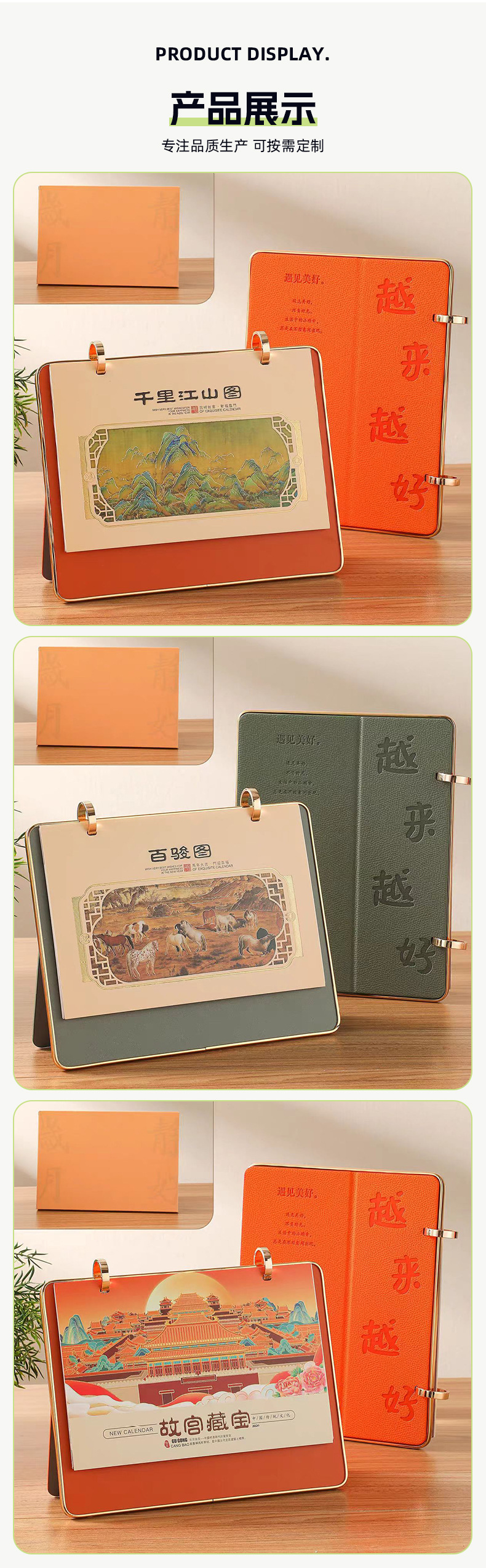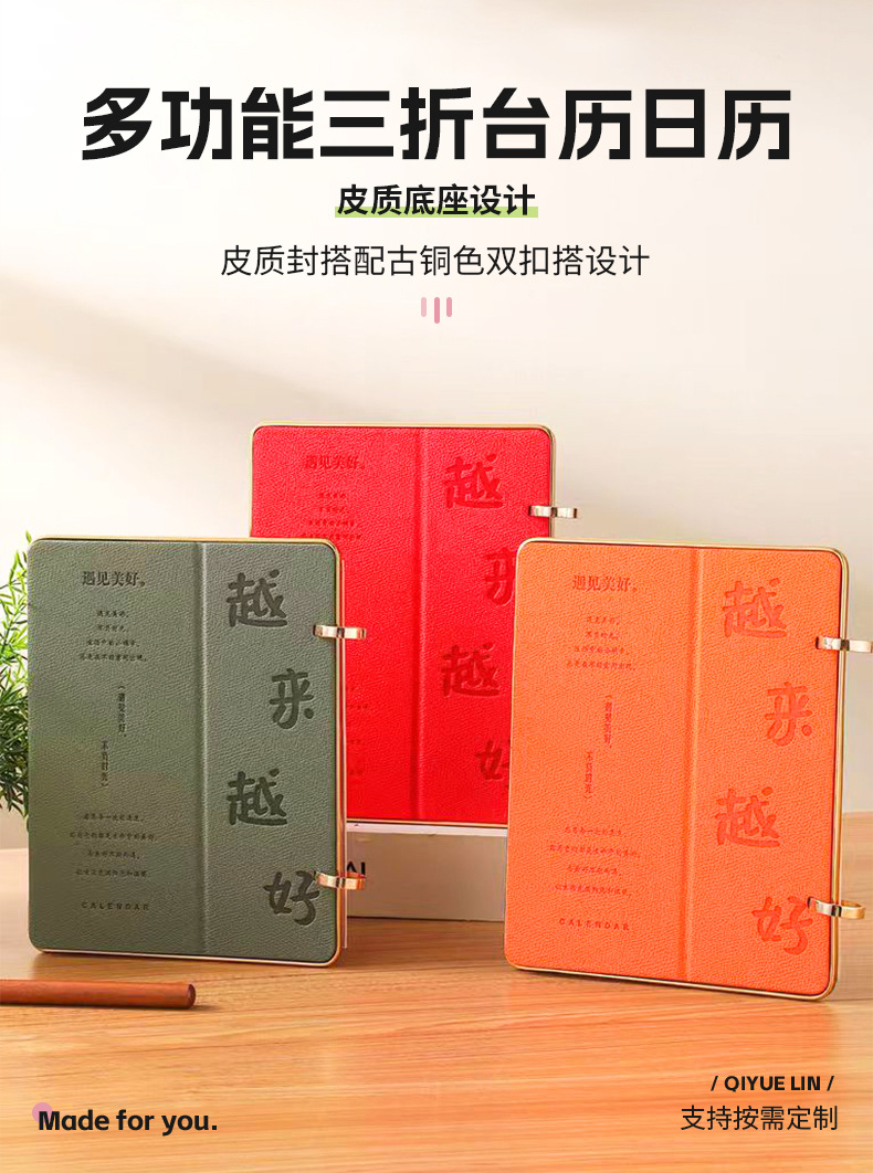 关键词:三折多功能皮面台历