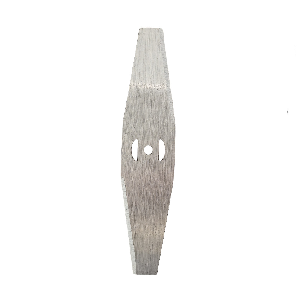 刀片并非越厚越长越耐用,但也不能太薄太短。经过我们工厂多年研究和试验测试,割草刀片使用效果最佳、效率最高的是厚度为2.0毫米,长度为305毫米,同时经过淬火工艺处理后,刀片硬度增加,使用寿命更长,并且打到石头不易飞片。