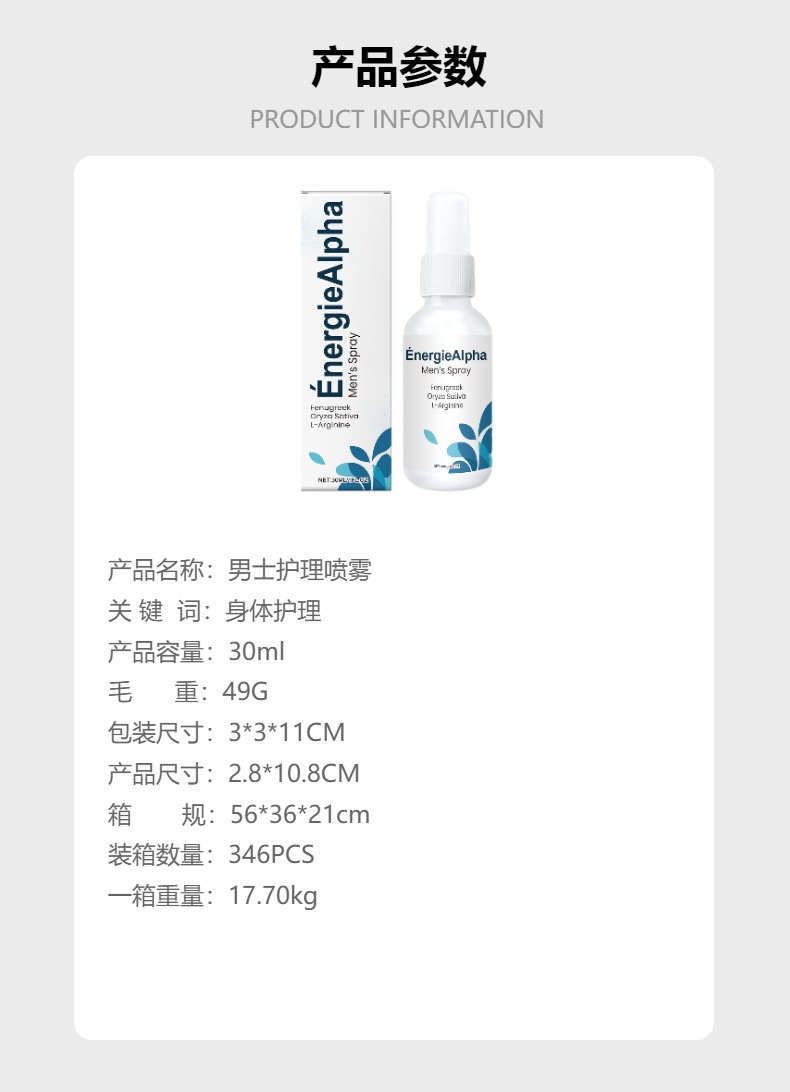 关键词:男士护理喷雾、身体清爽喷雾、日常养护、活力提升