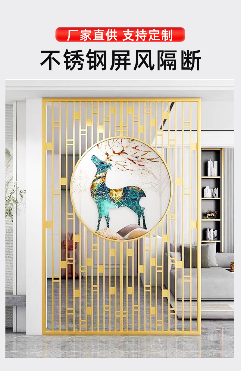 佛山304不锈钢屏风厂家 客厅新中式金属隔断办公室装饰镂空玄关