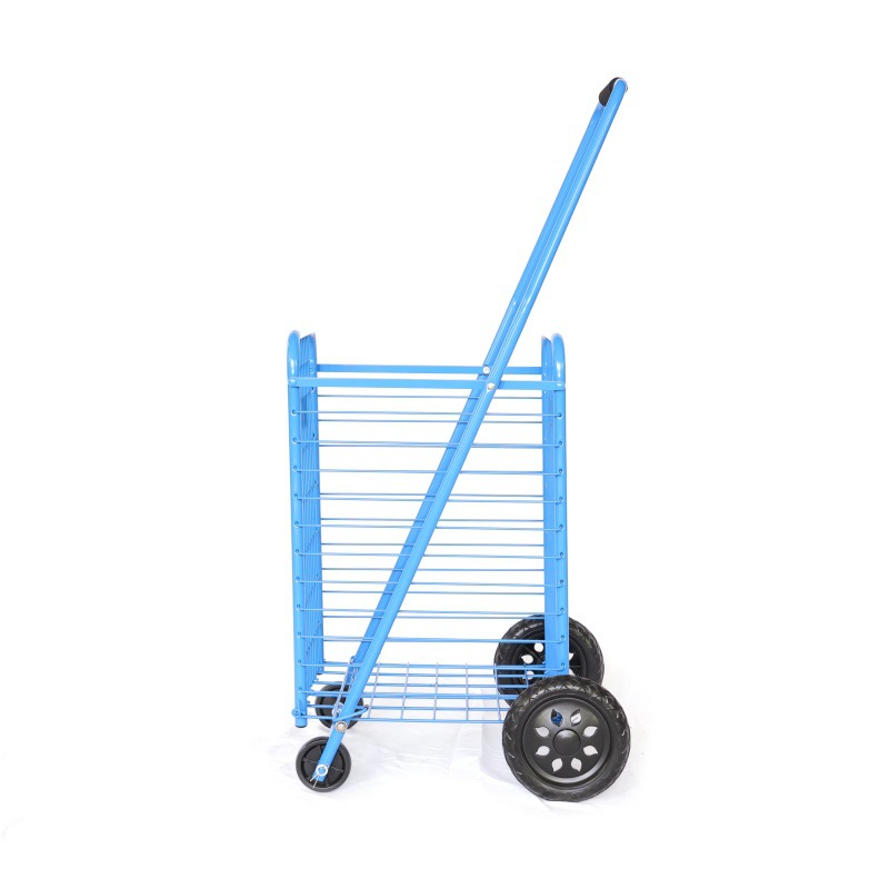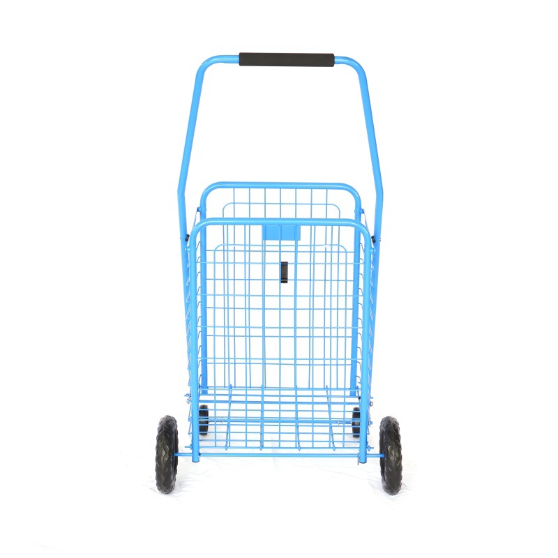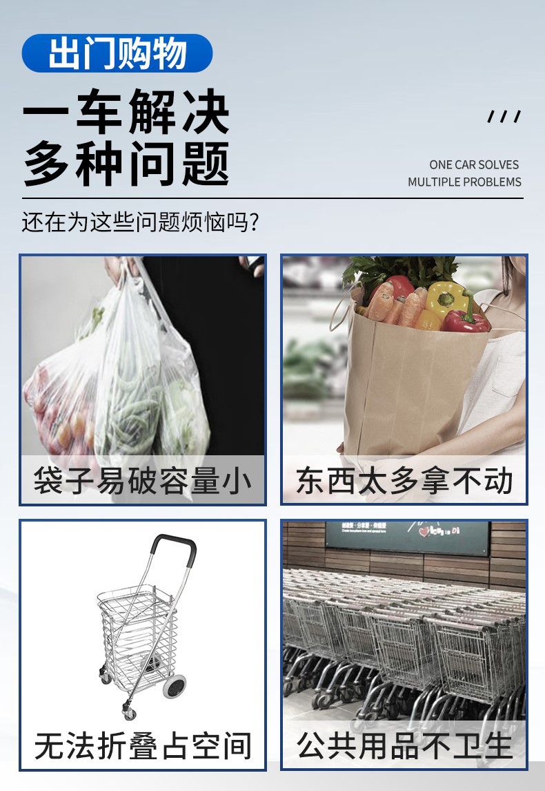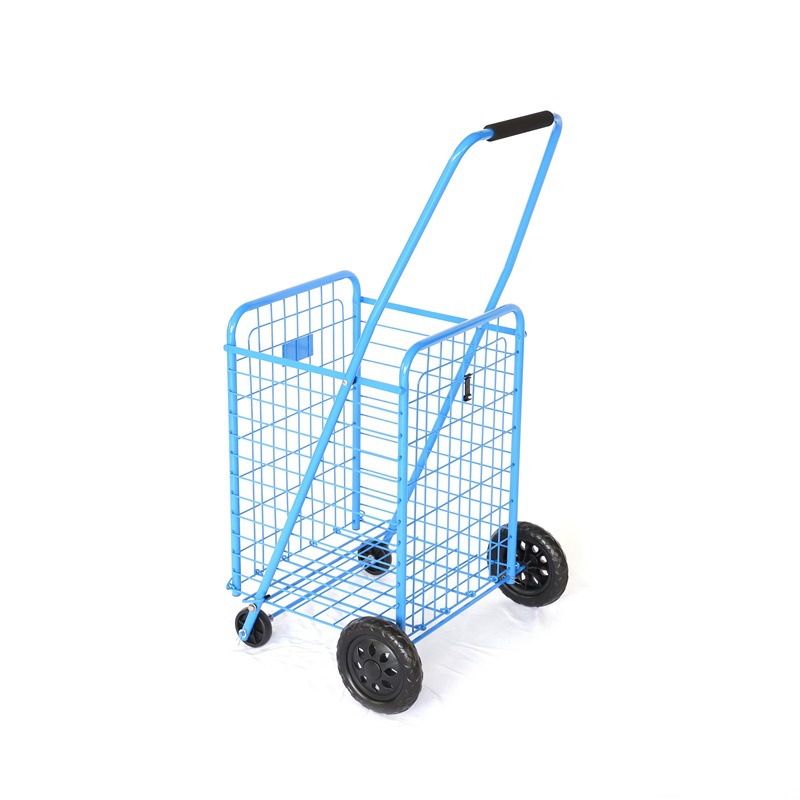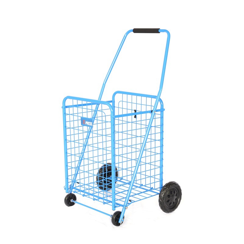 家用超市可移动手拉购物车摆摊快递拉货折叠手推车蓝色折叠菜篮车