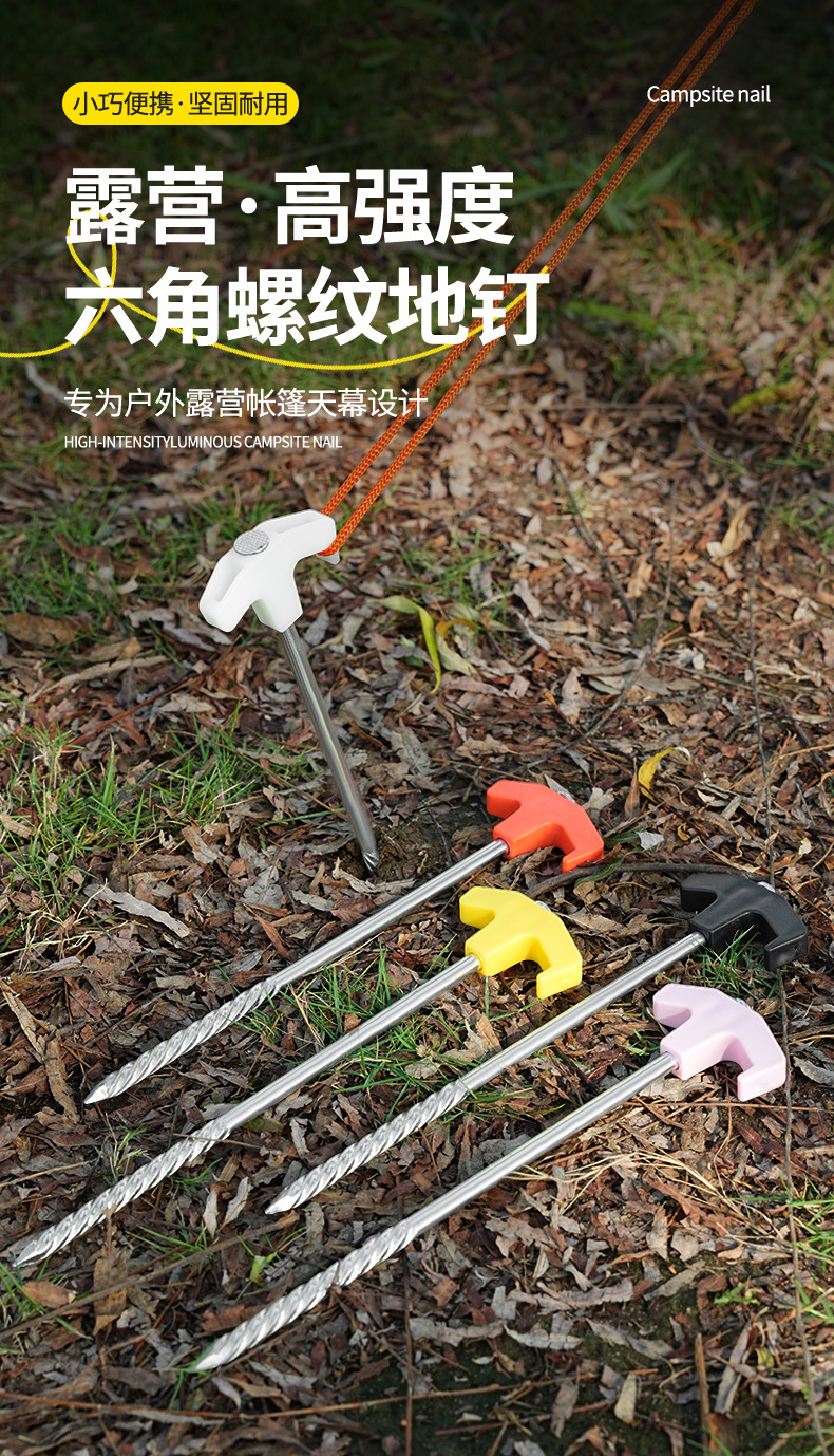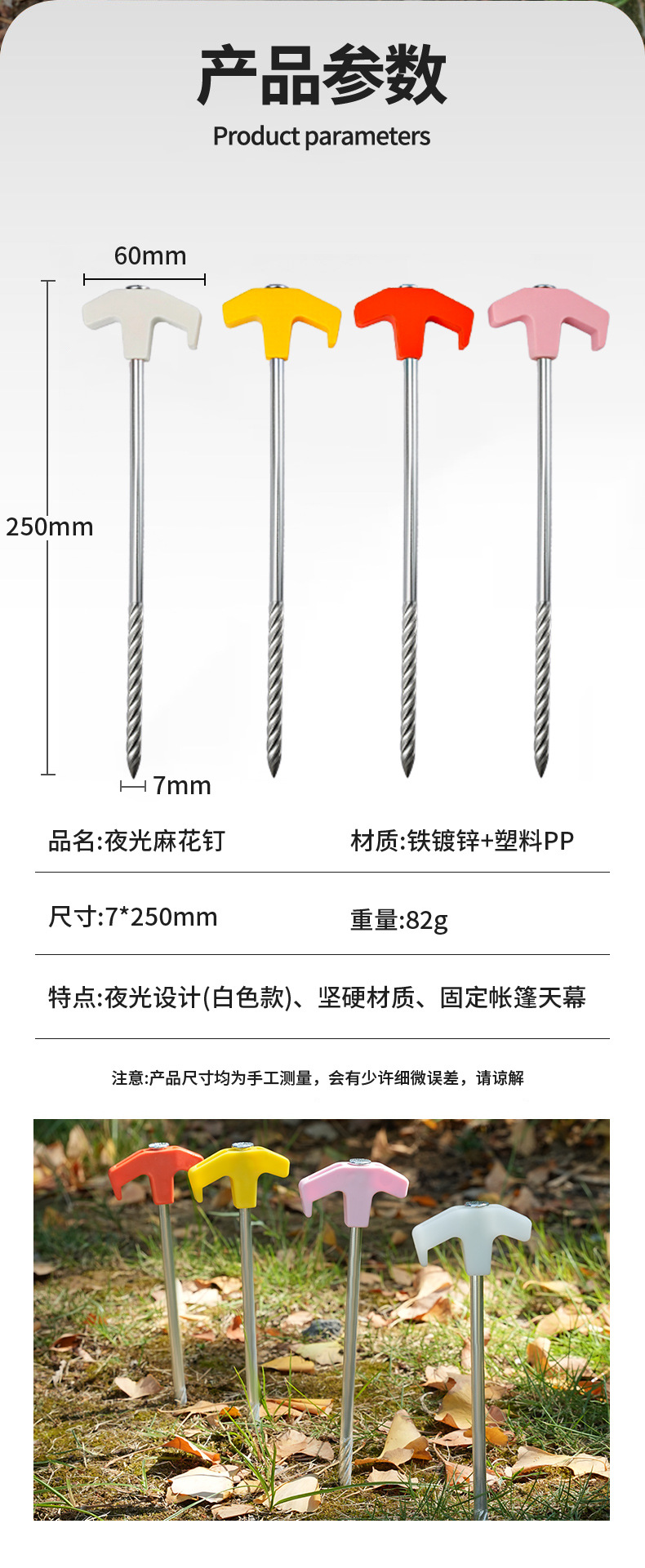 夜光地钉麻花钉户外用品露营配件天幕帐篷固定器荧光地钉防风地钉