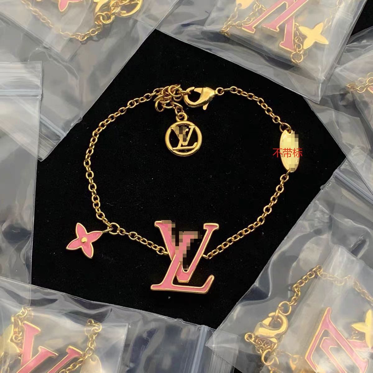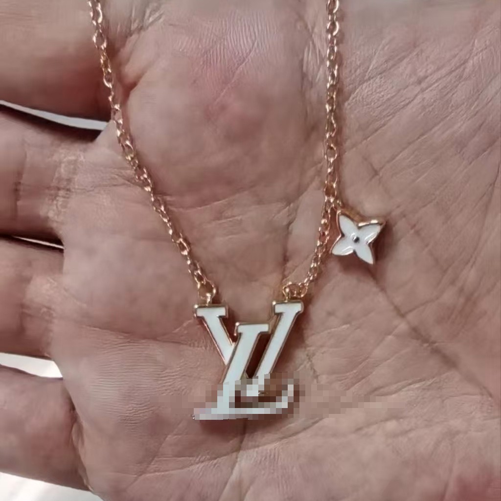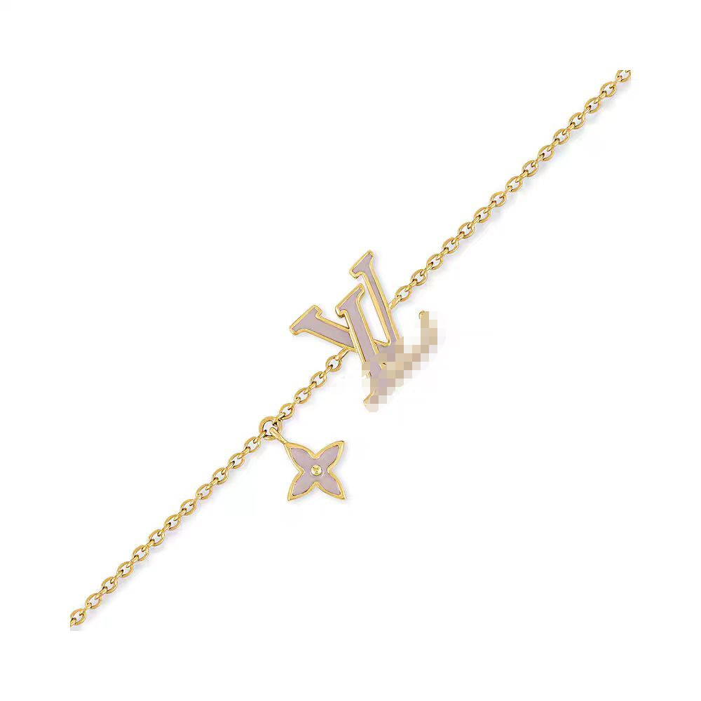 抖音爆款高品质粉珐琅L字母手链女 欧美风轻奢气质时尚白珐琅项链
