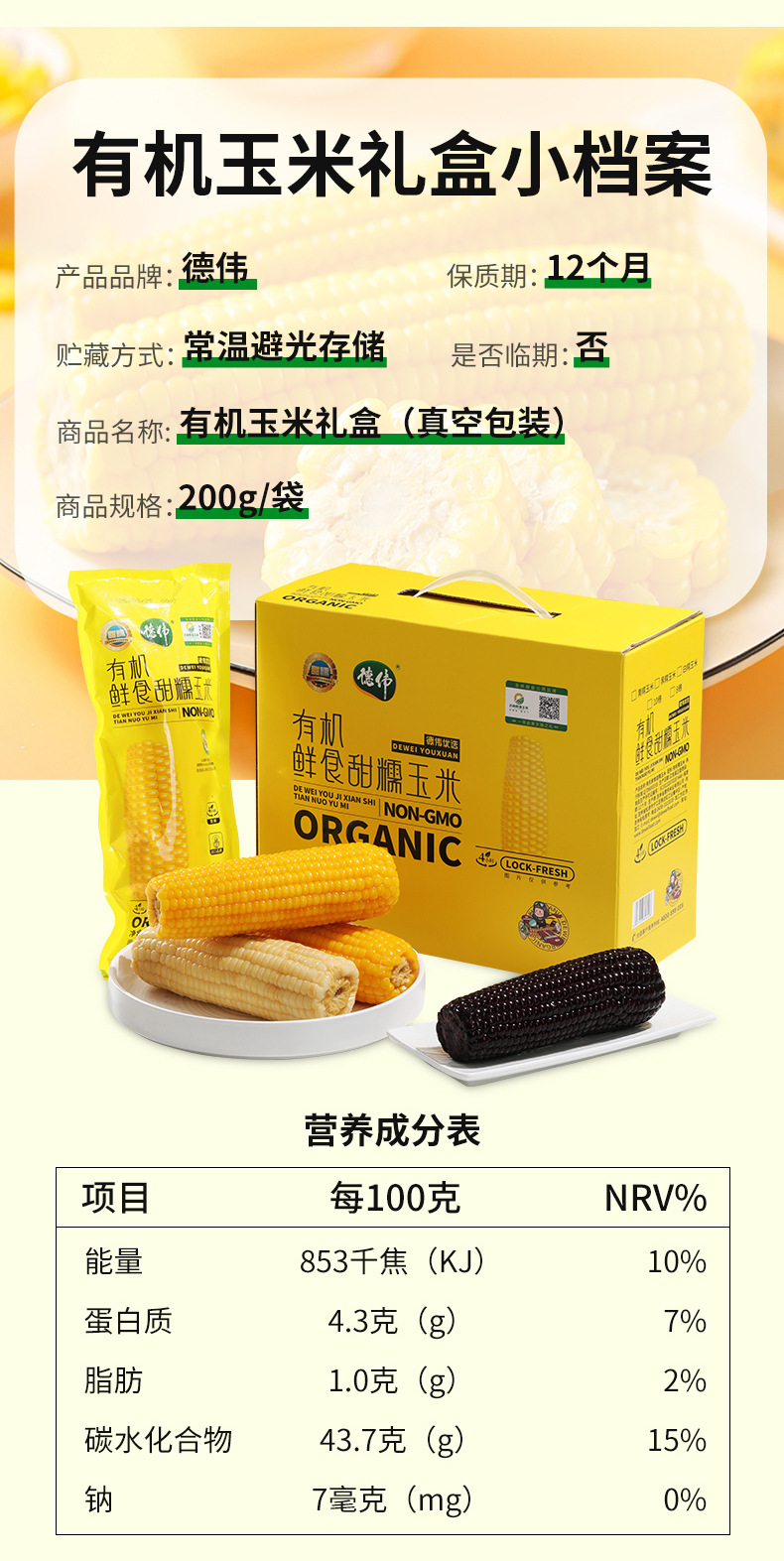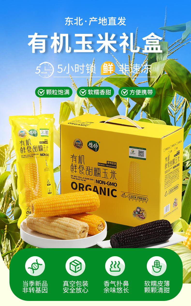 即食玉米德伟东北有机白玉米280g大棒黑甜玉米粘黏苞米粗粮真空装