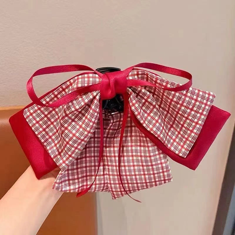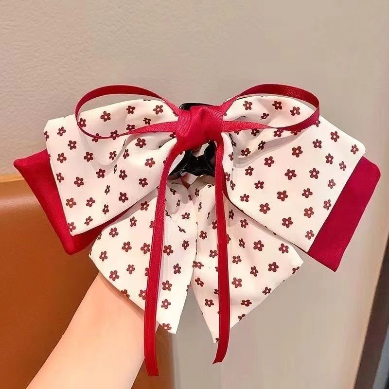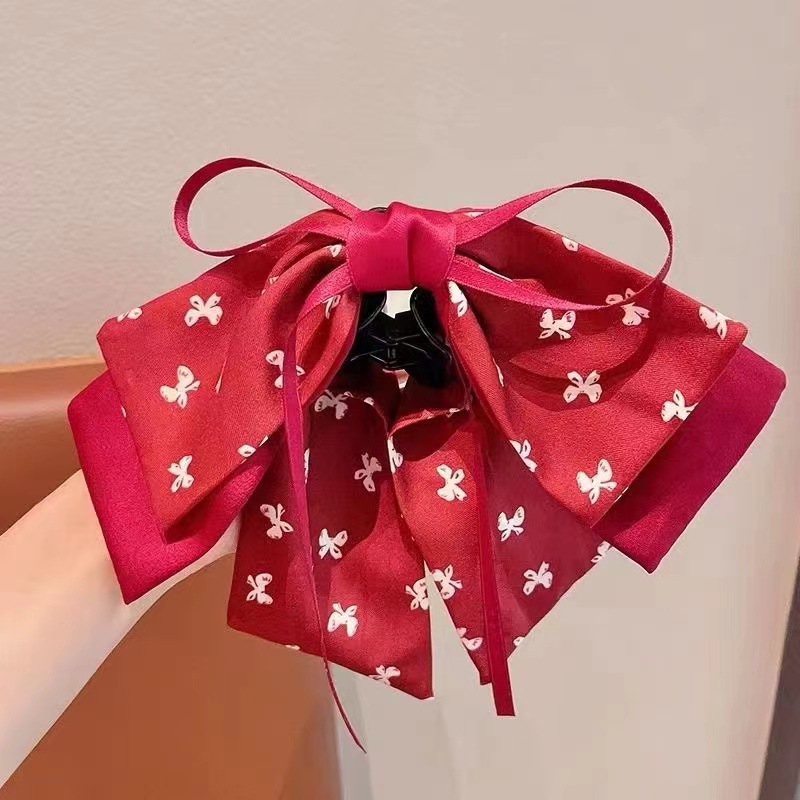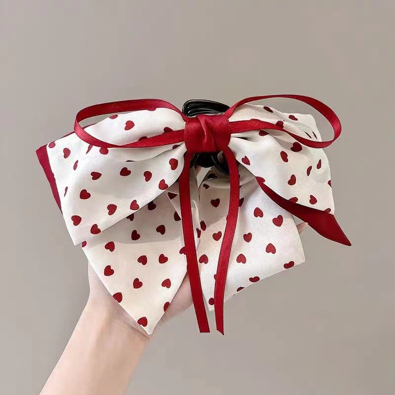在逃公主甜美小女孩公主头红色蝴蝶结网红波点发夹儿童盘发抓夹