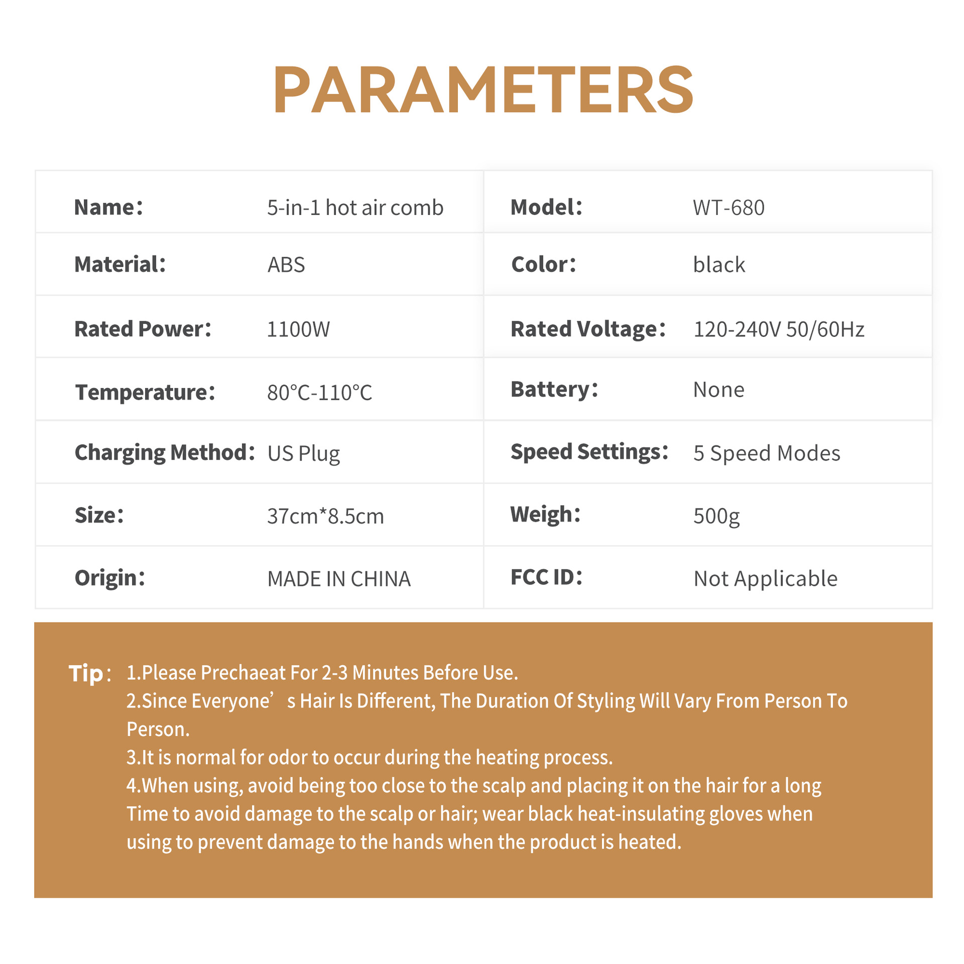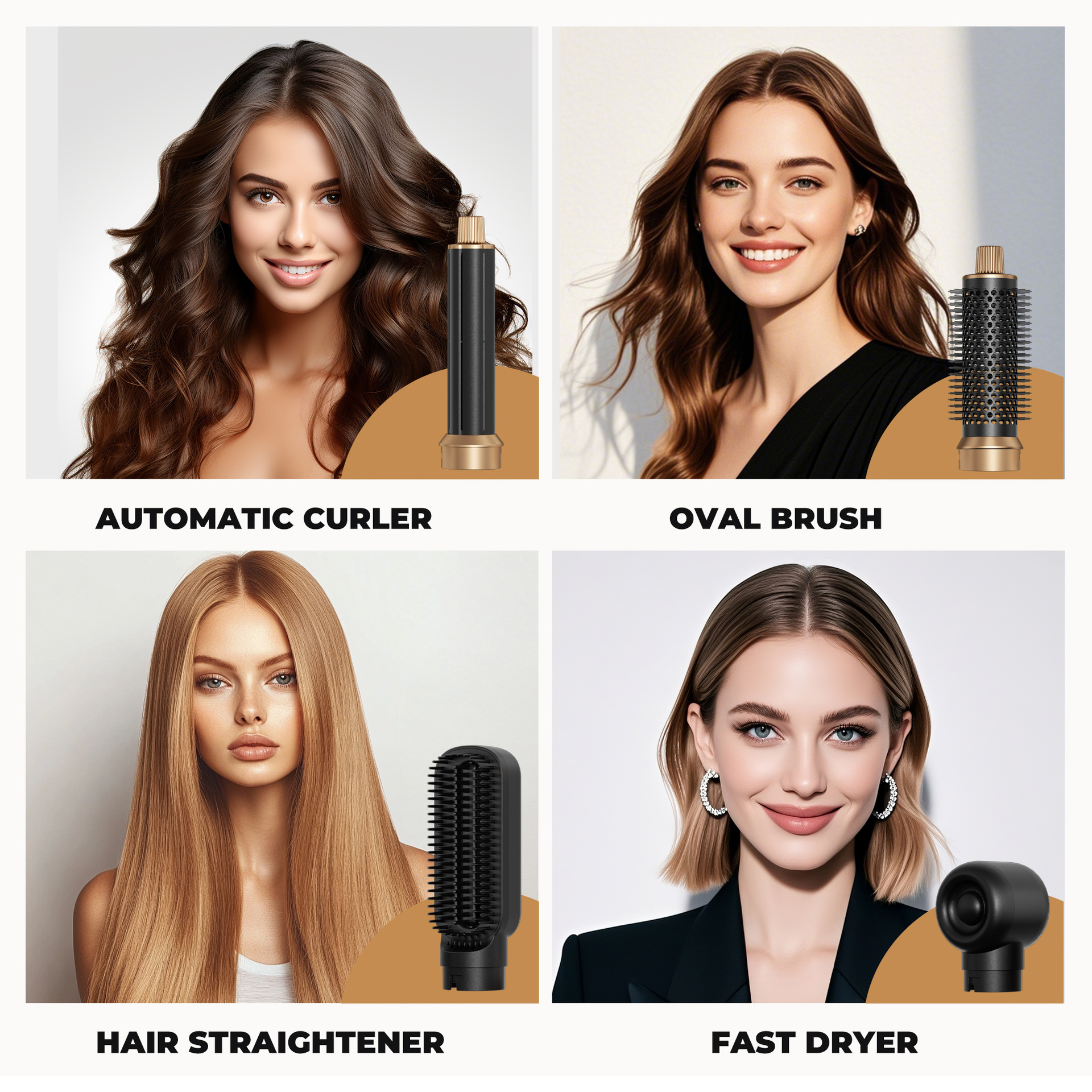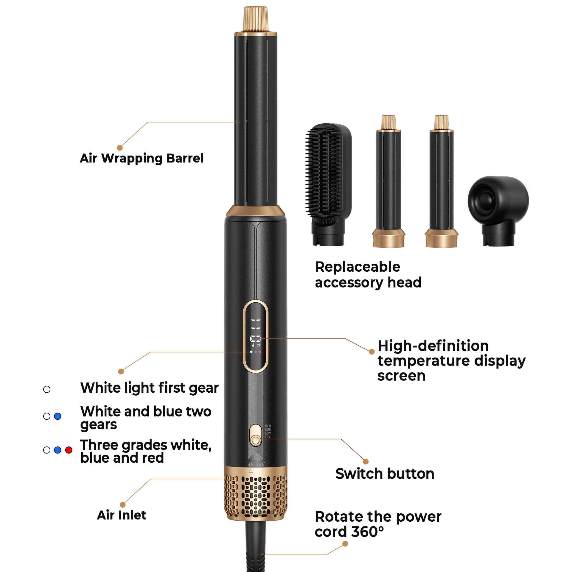 跨境新款五合一多功能热风梳造型直卷吹多合一套装家用多头电吹风