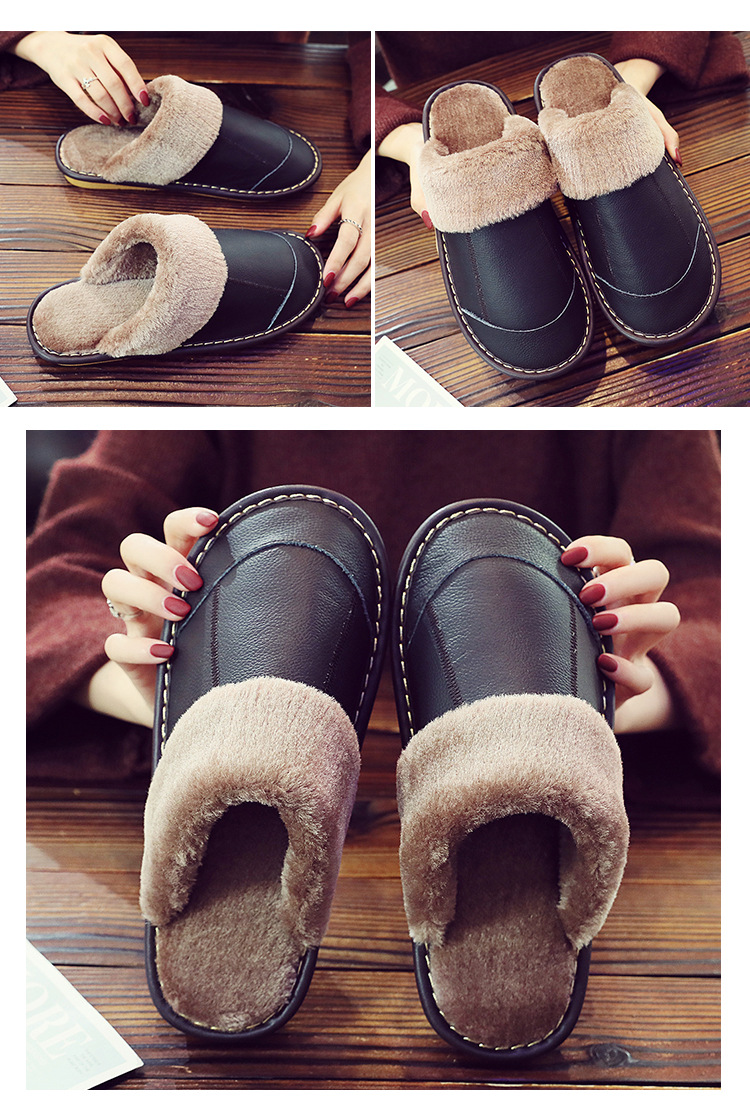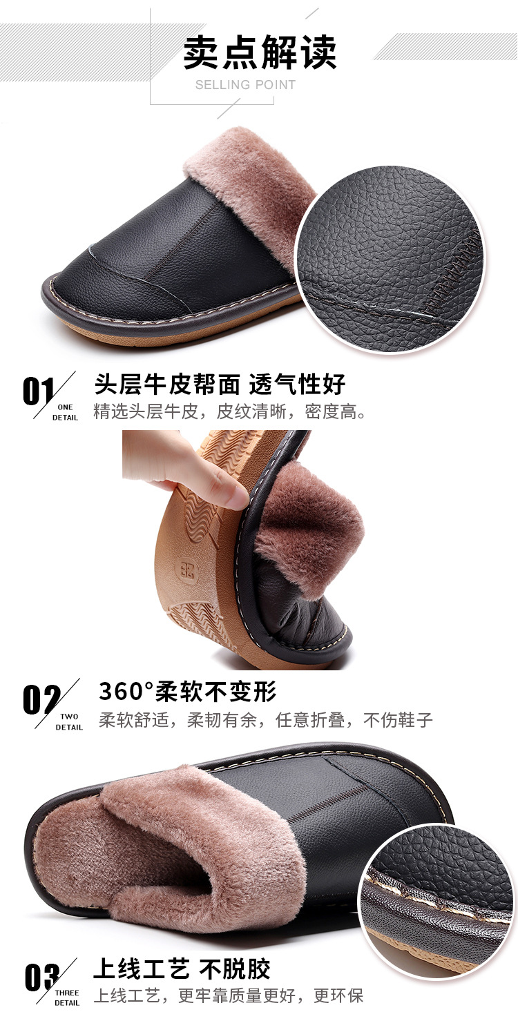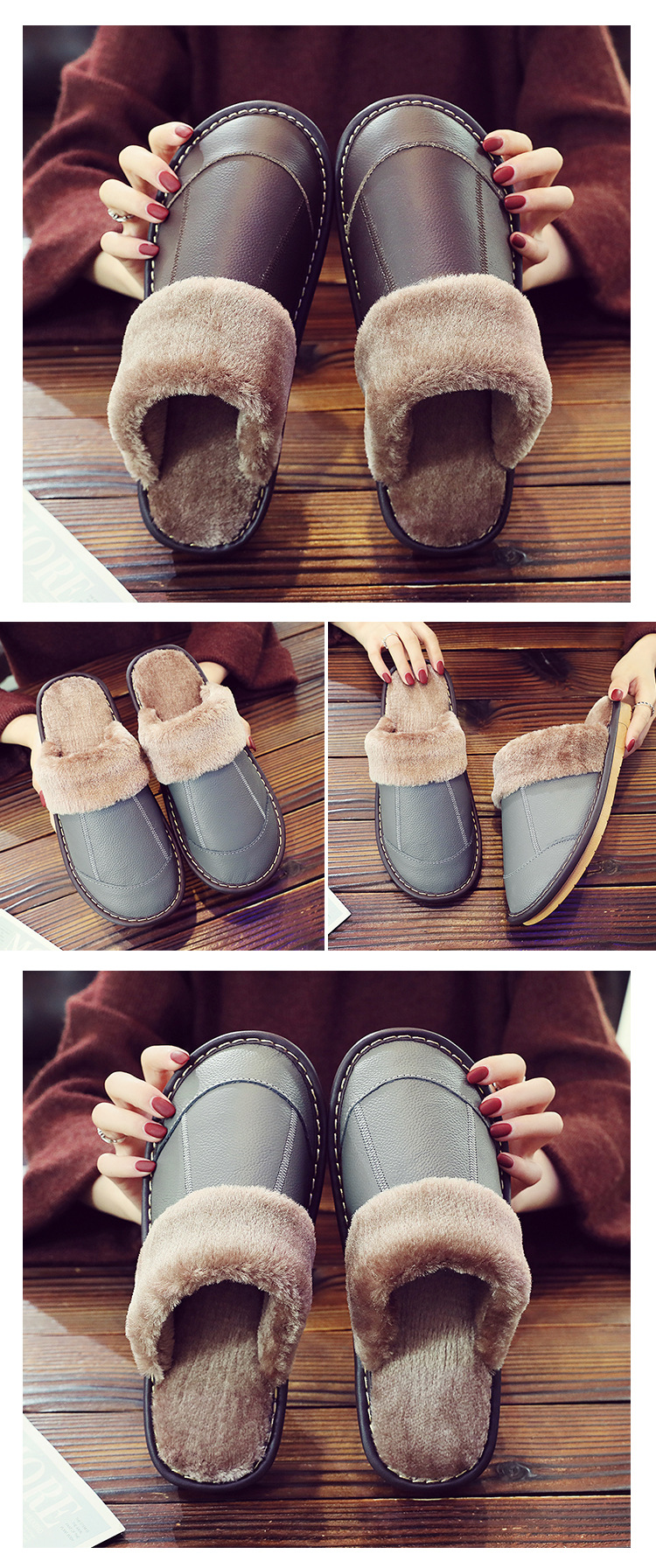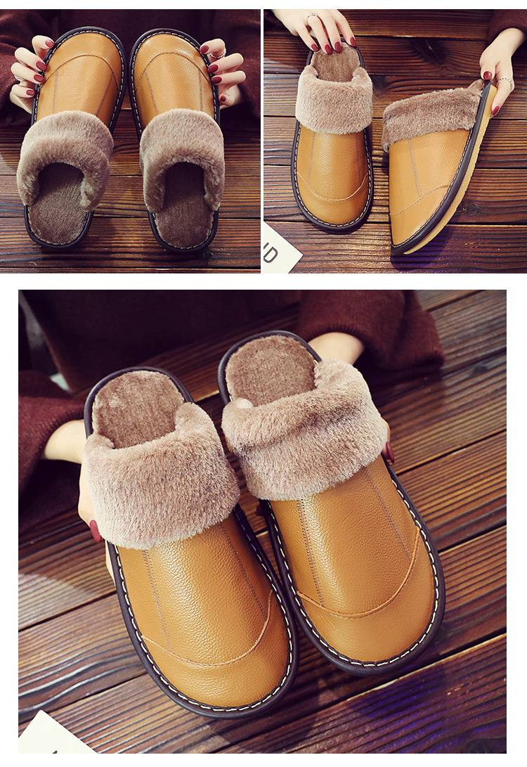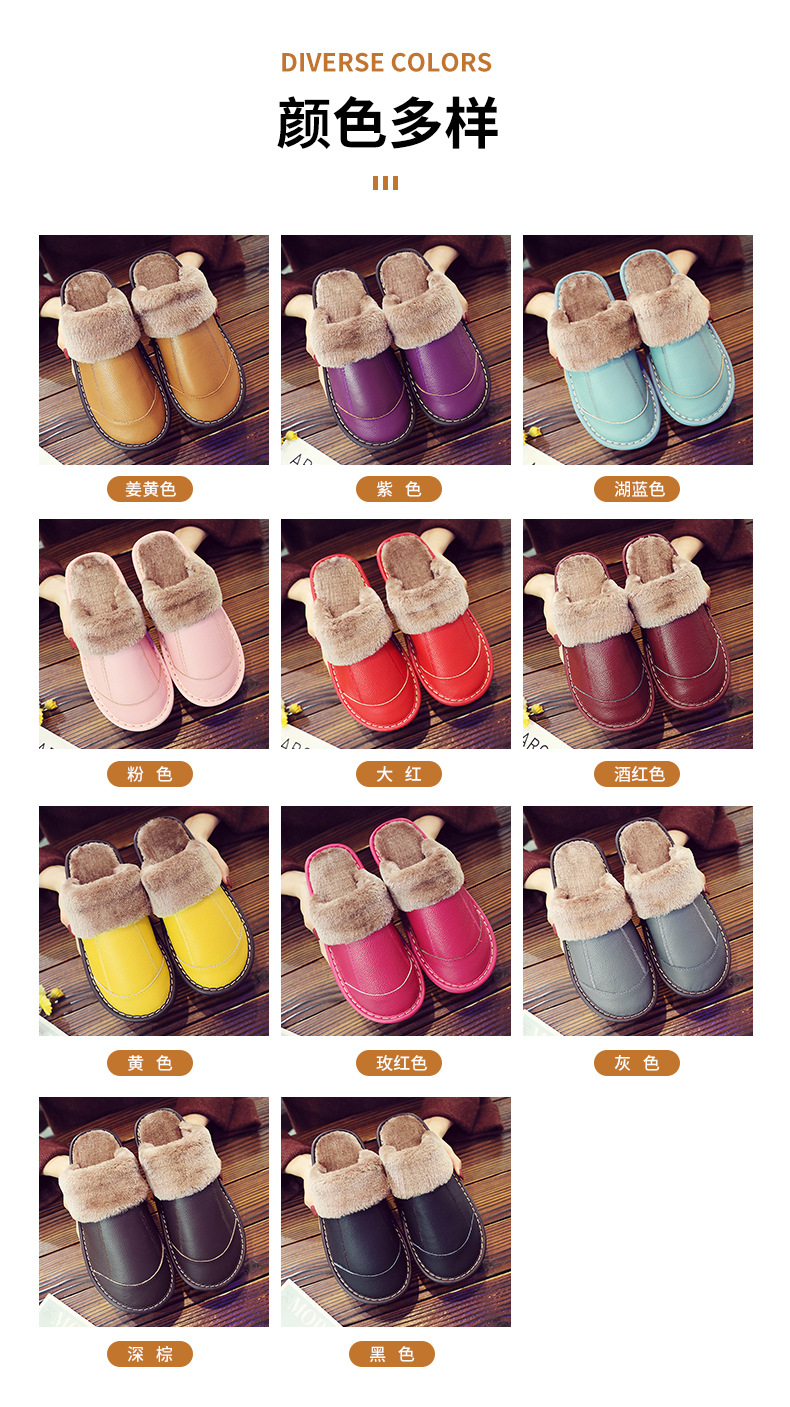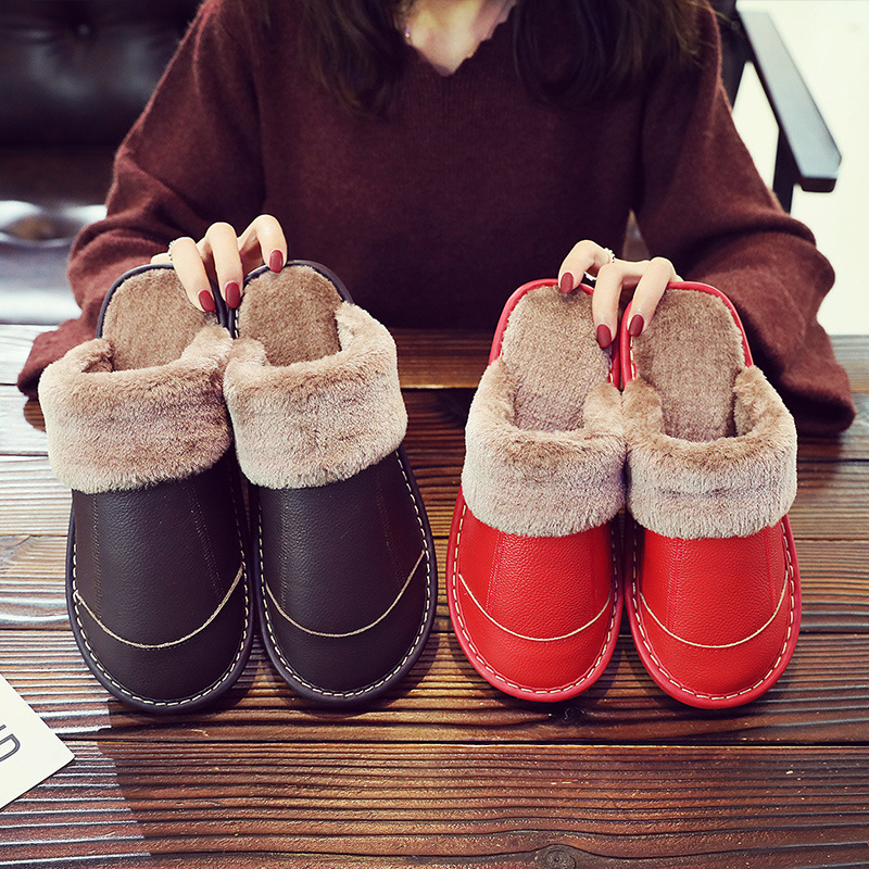 秋冬包头棉拖鞋室内毛绒加厚保暖鞋日系不包跟家用皮面棉拖鞋