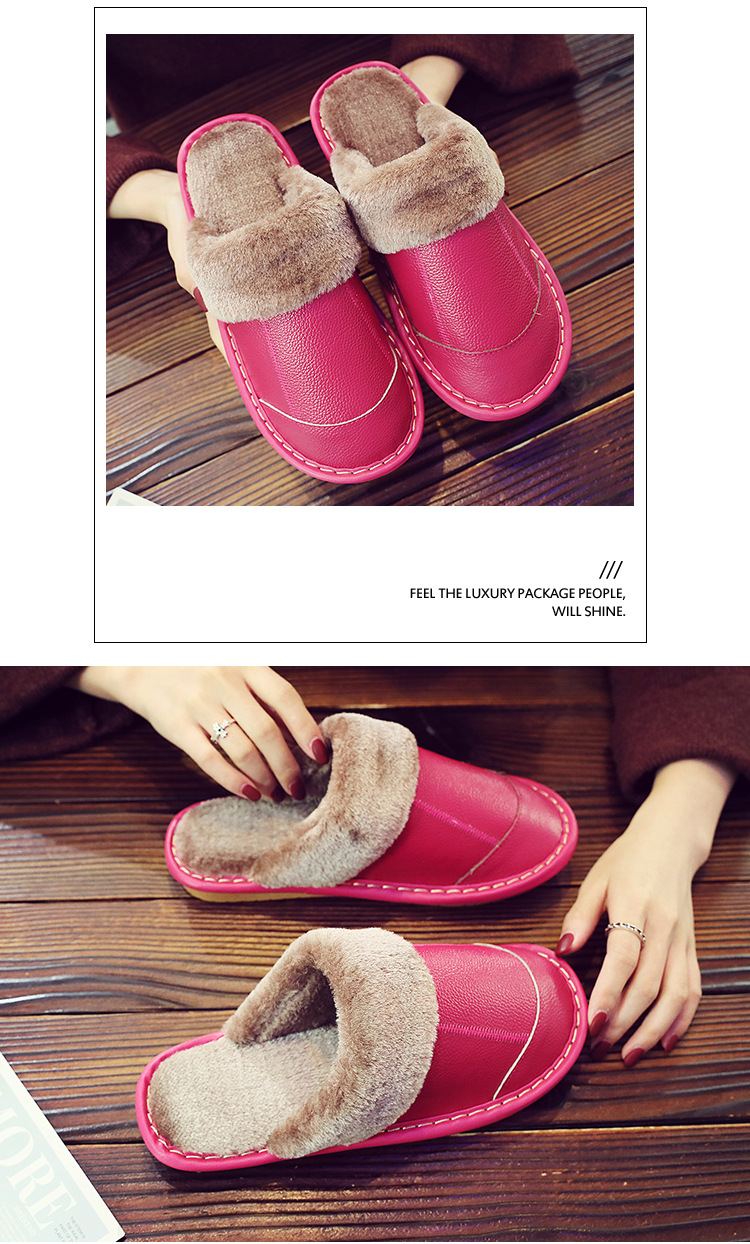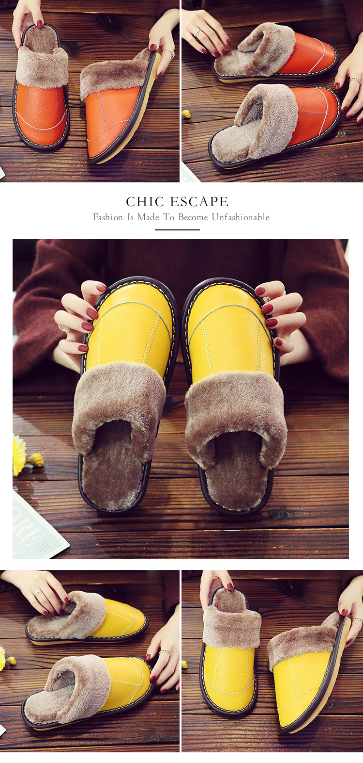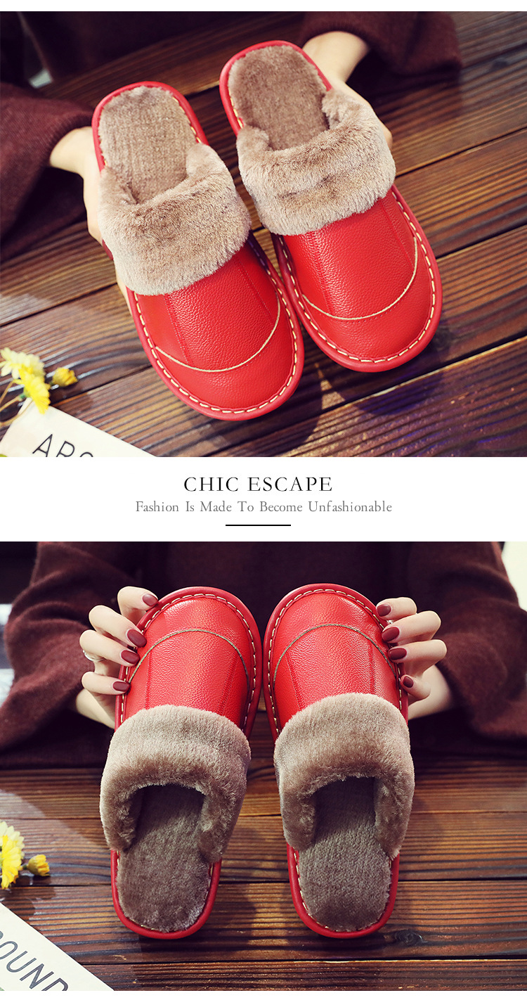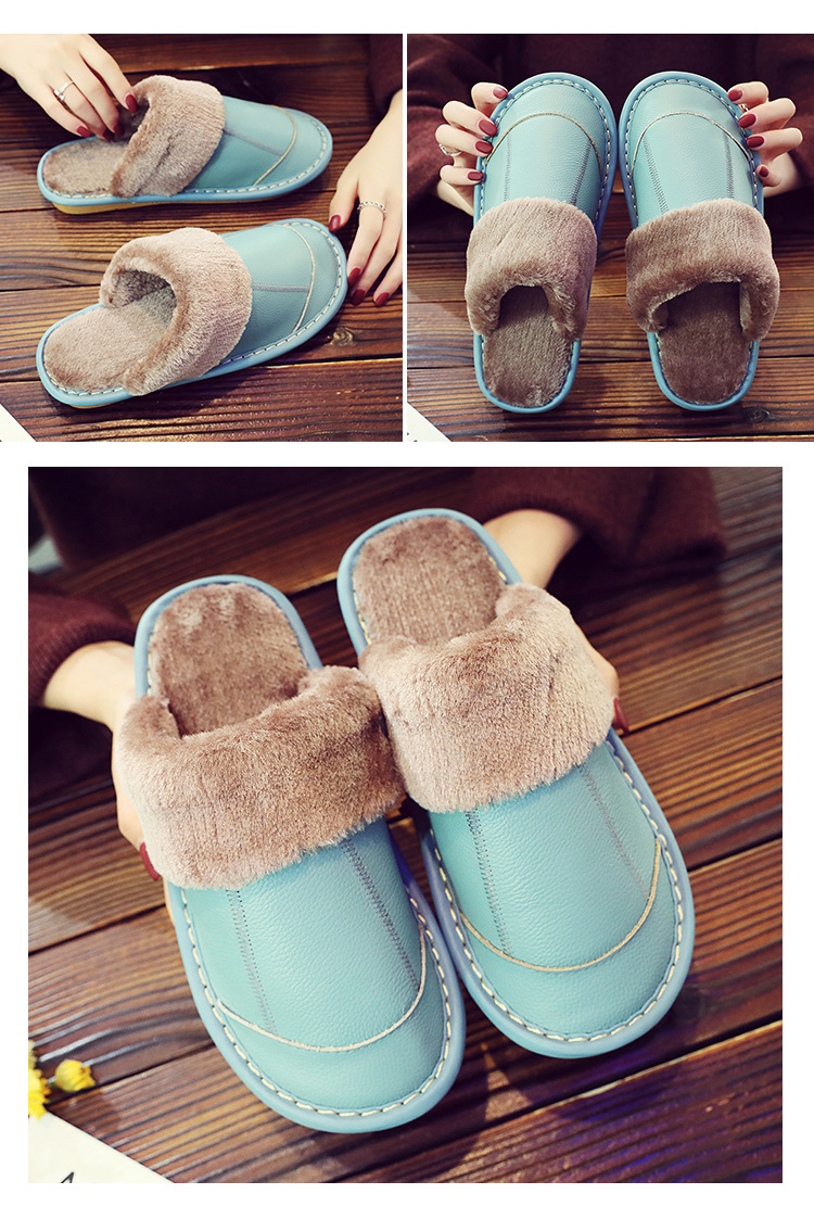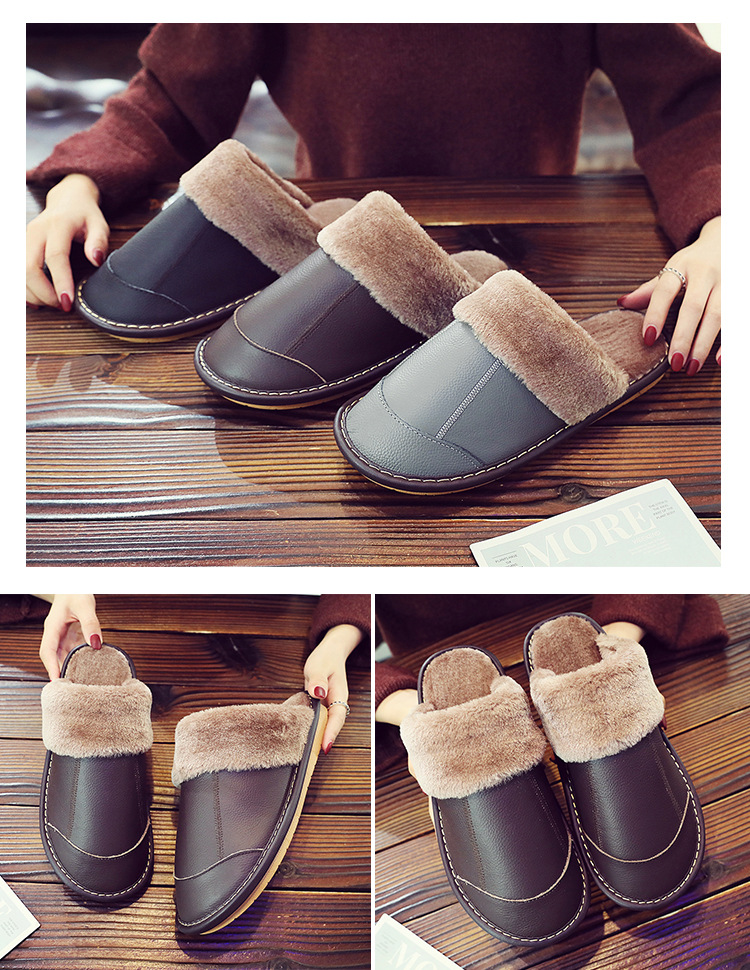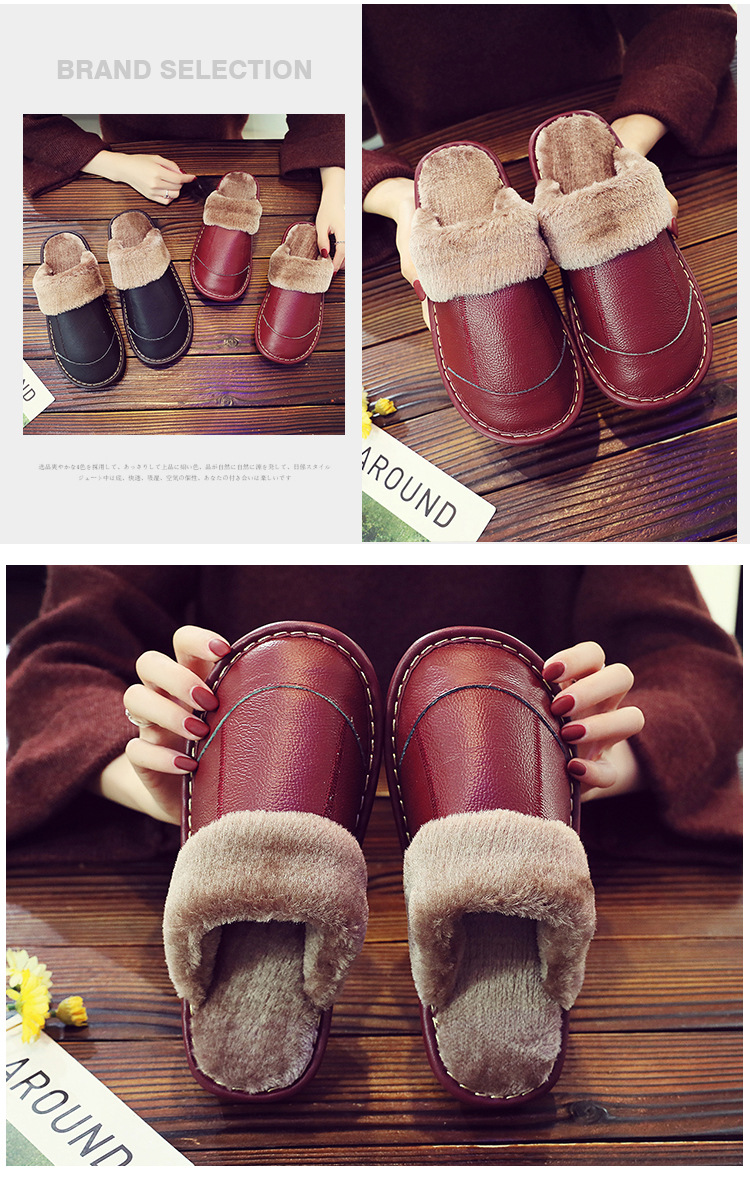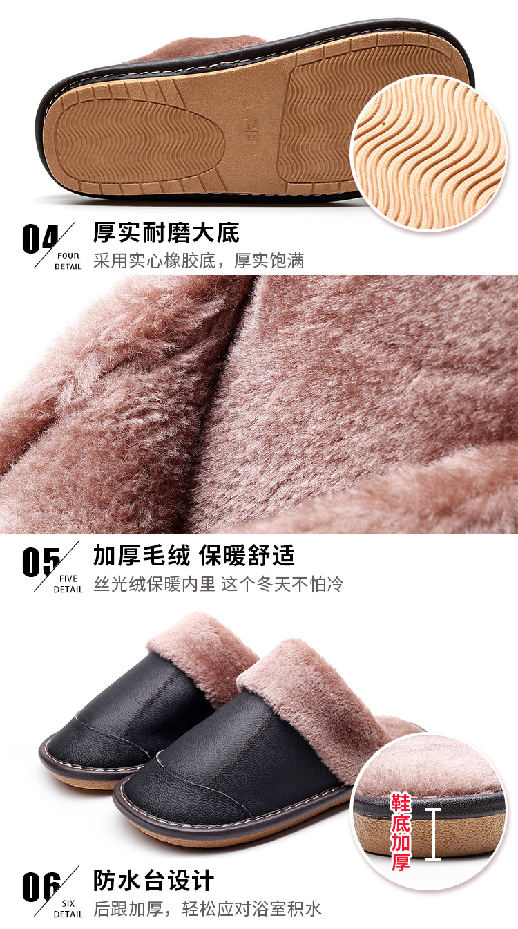 秋冬包头棉拖鞋室内毛绒加厚保暖鞋日系不包跟家用皮面棉拖鞋