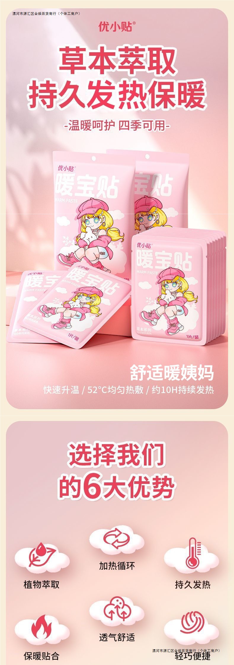 优小贴益母草大号暖贴户外宝宝贴少女宫自发热大姨妈热敷艾草高温