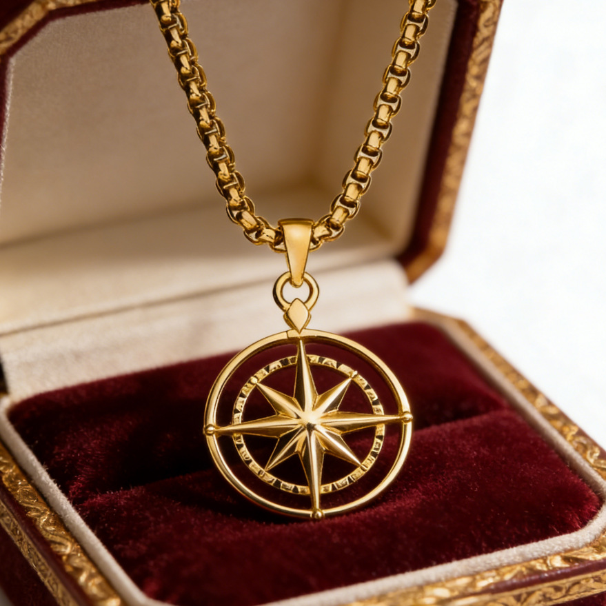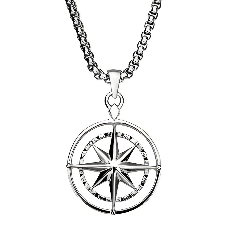 欧美不锈钢八芒星吊坠项链个性北极星镂空吊坠男女时尚百搭锁骨链