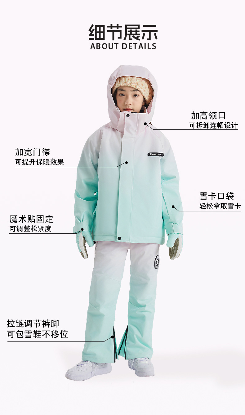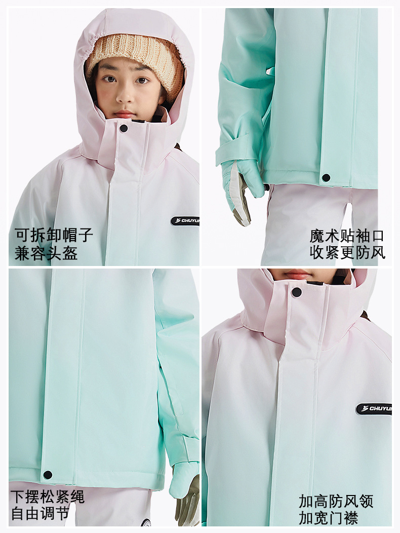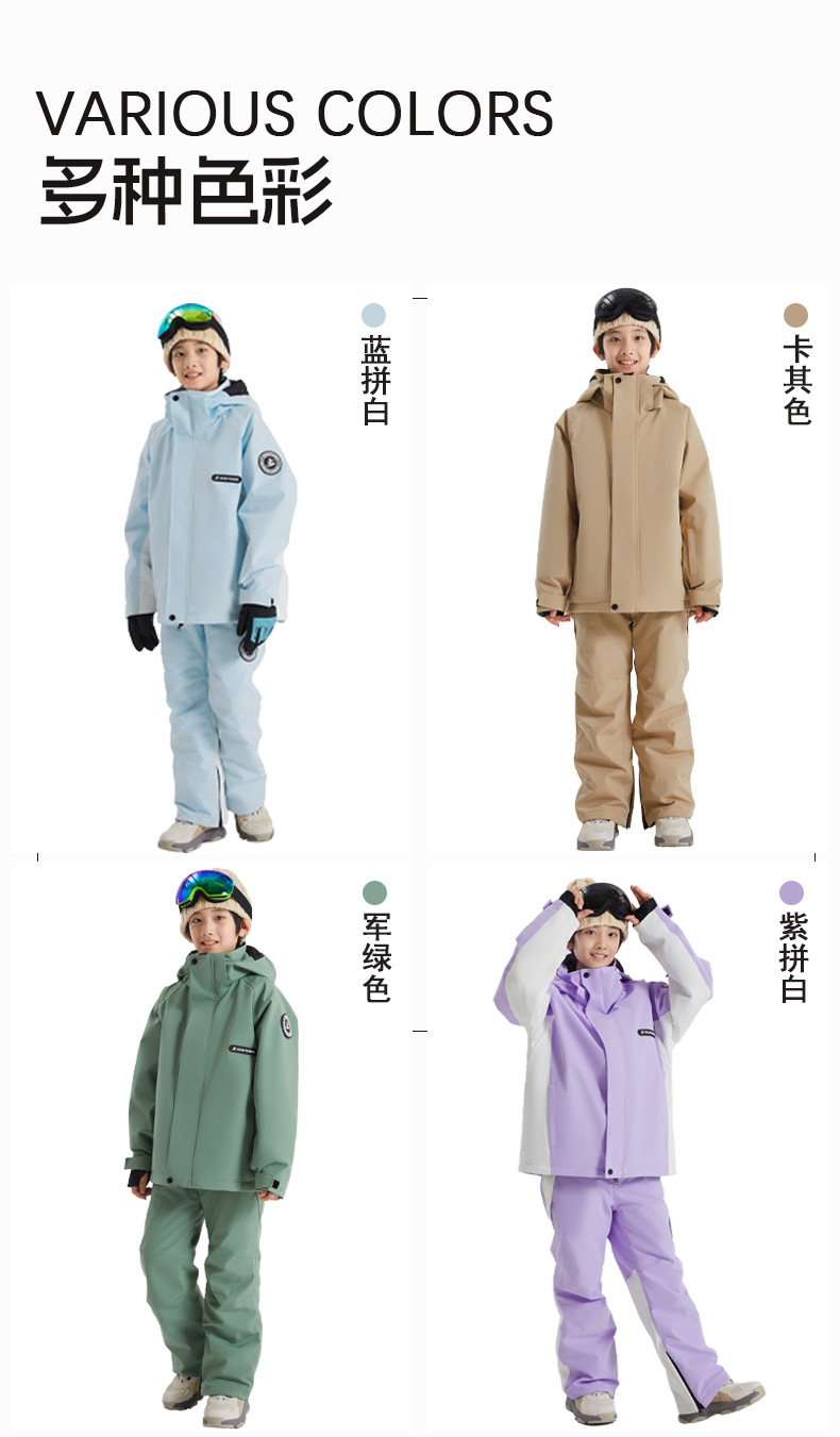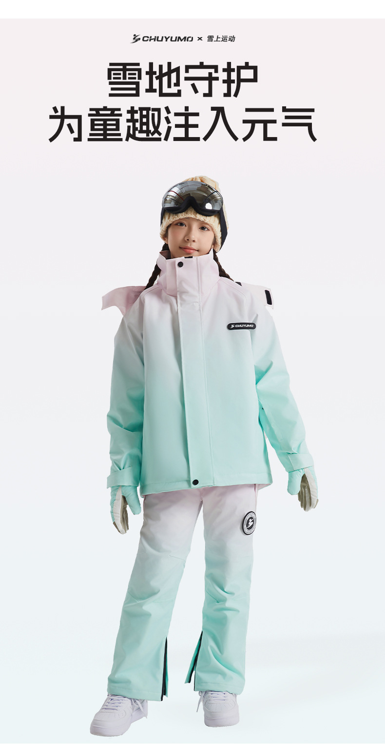儿童滑雪服套装男女童户外运动冬季保暖防风防水滑雪套装冲锋衣裤