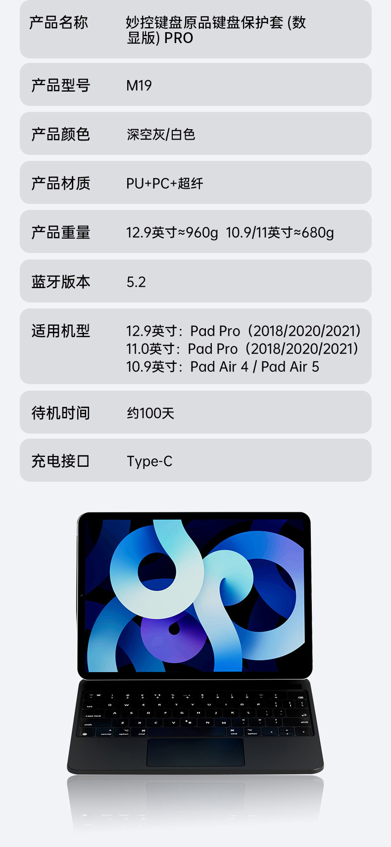 2025新款适用苹果iPadAir6平板触控板妙控键盘M19悬浮磁吸蓝牙
