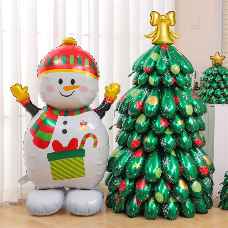 圣诞节装饰品充气圣诞树老人雪人铝膜打气球摆件节日场景布置道具