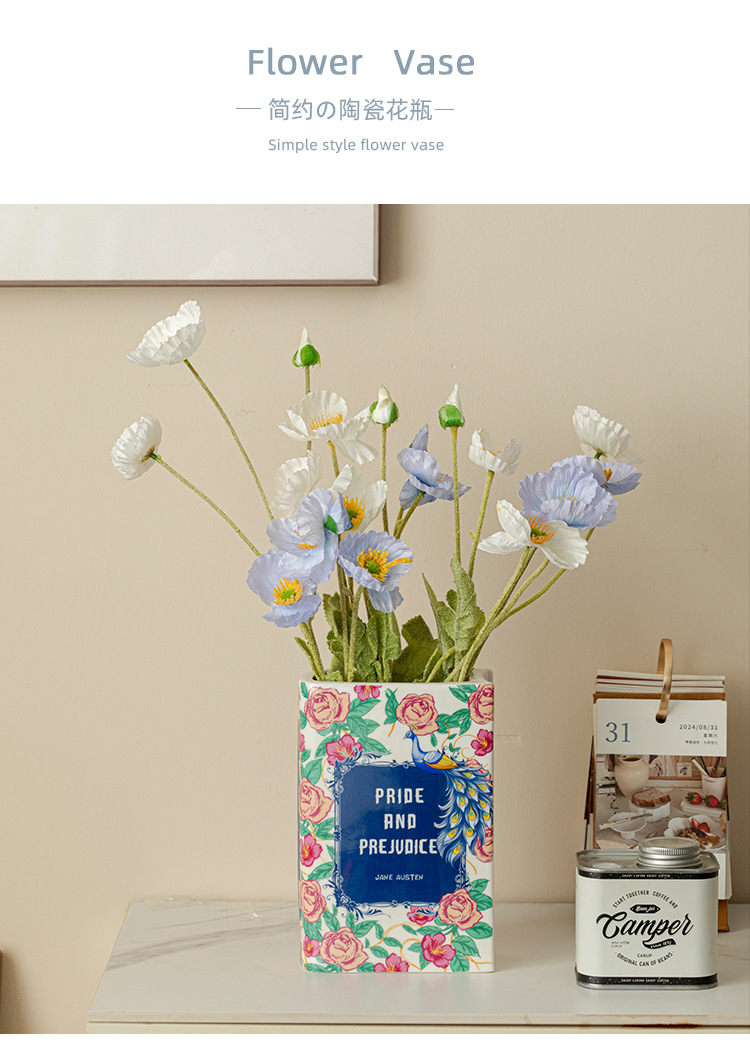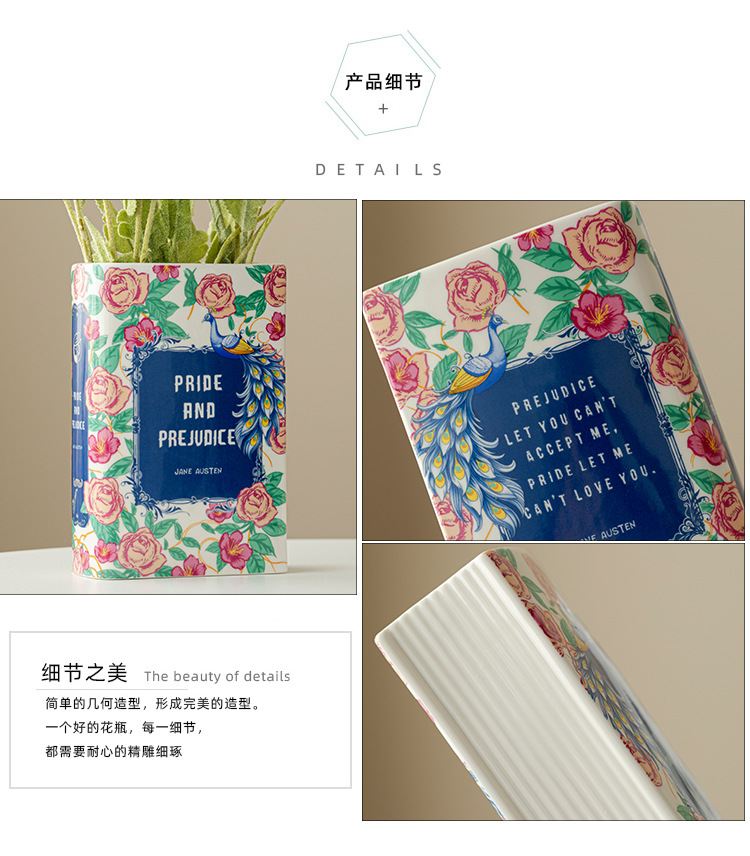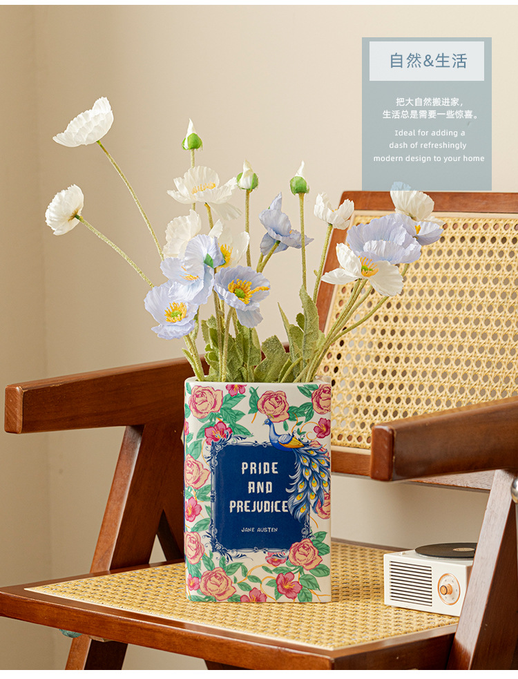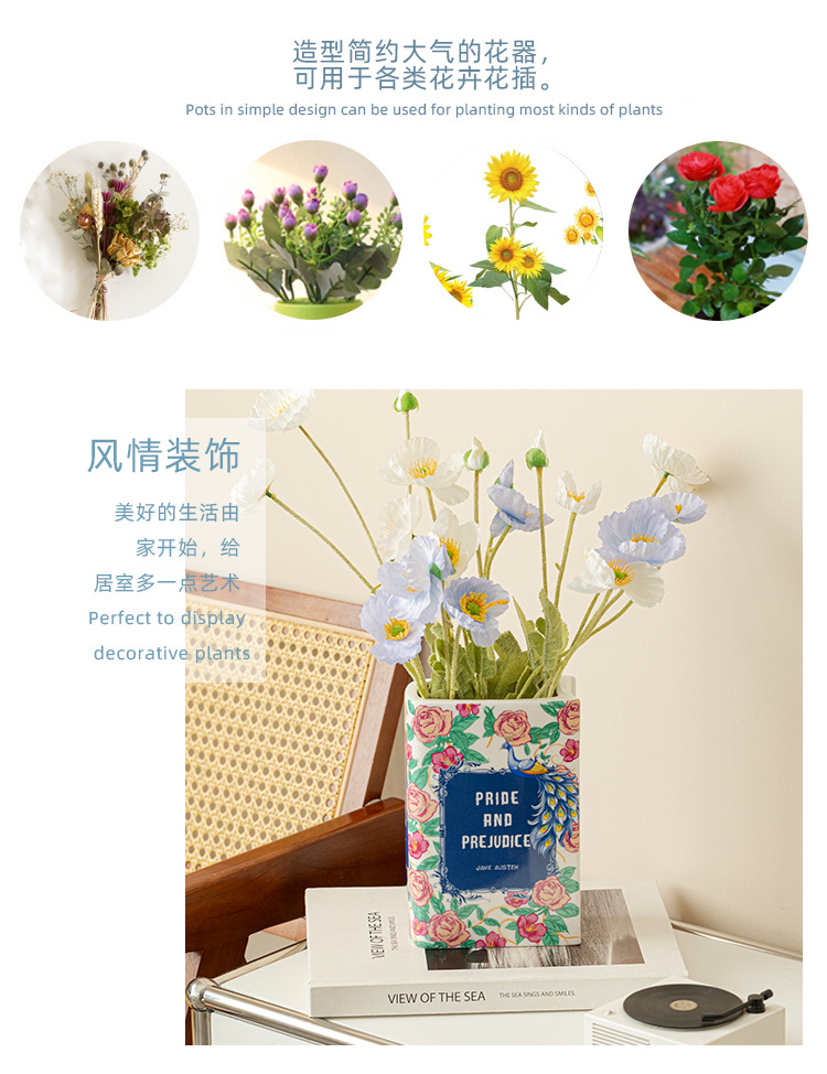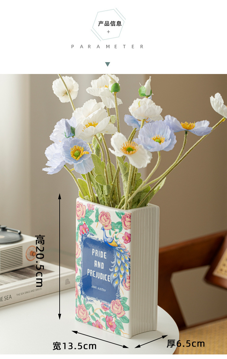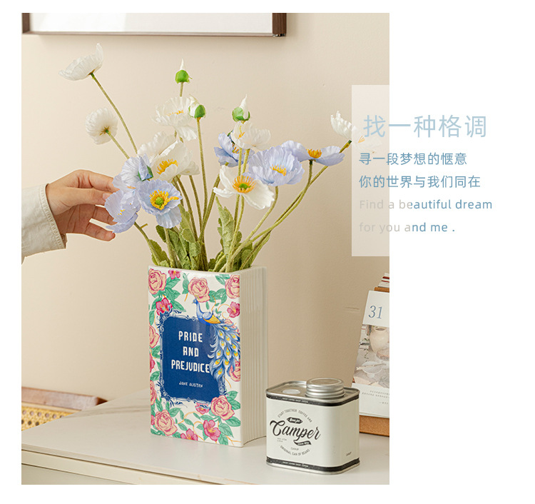 [ 商业 ] 跨境意亚马逊陶瓷花瓶仿真陶瓷书本花瓶花插摆件花瓶创意书形装饰