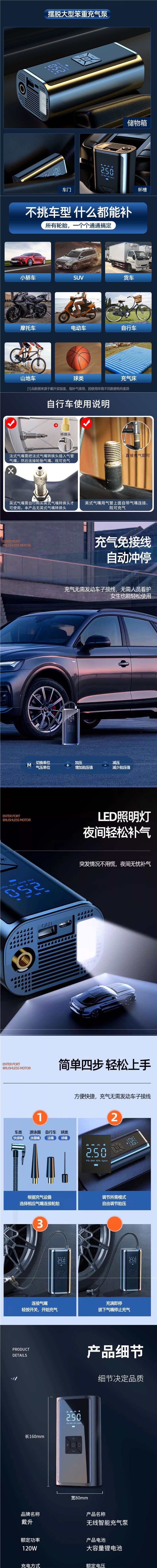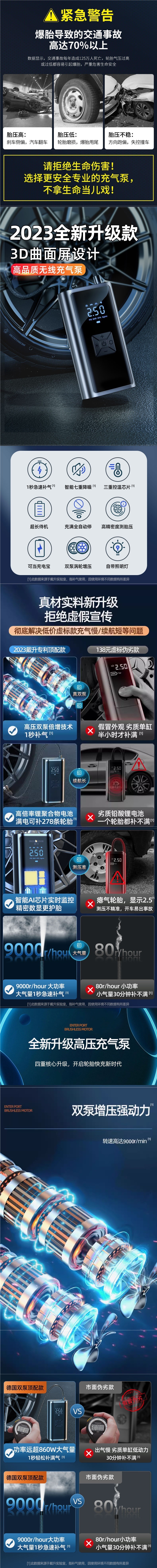 车载无线充气泵车用便携式汽车用打气泵电动轿车轮胎高压打气批发
