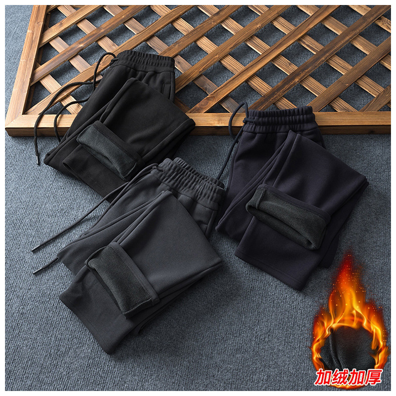 冬季加绒卫裤男款宽松直筒长裤2025新款加厚保暖松紧腰男士休闲裤