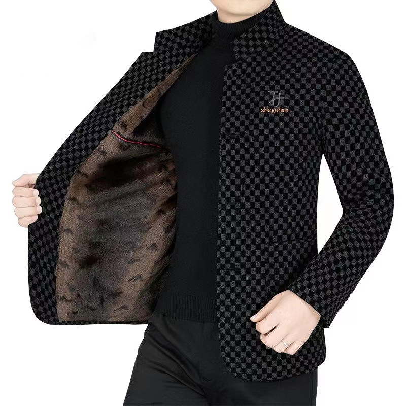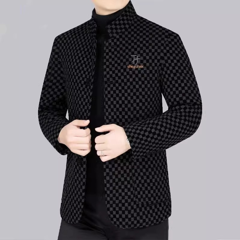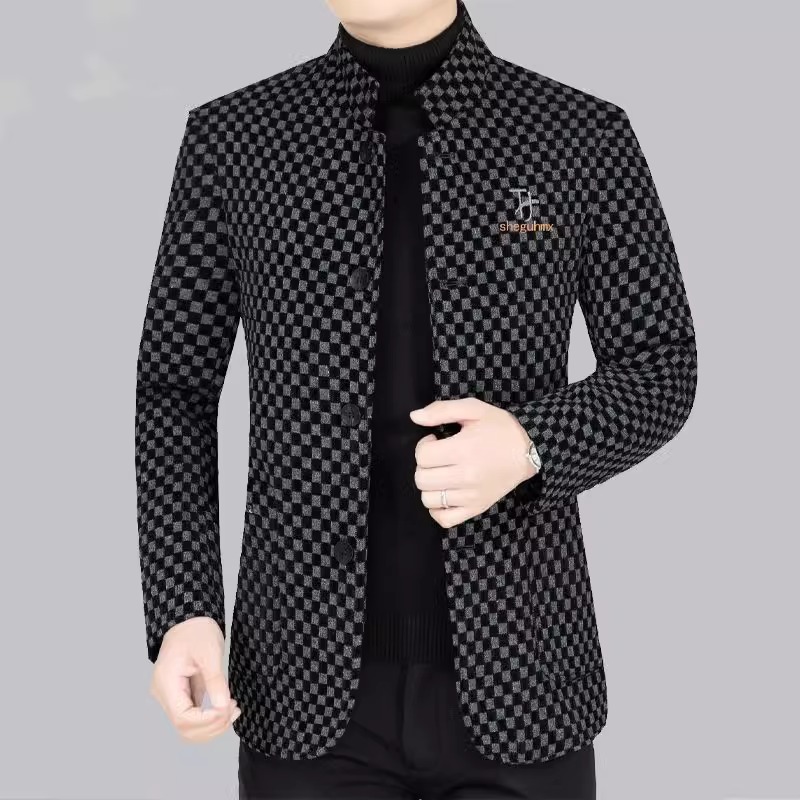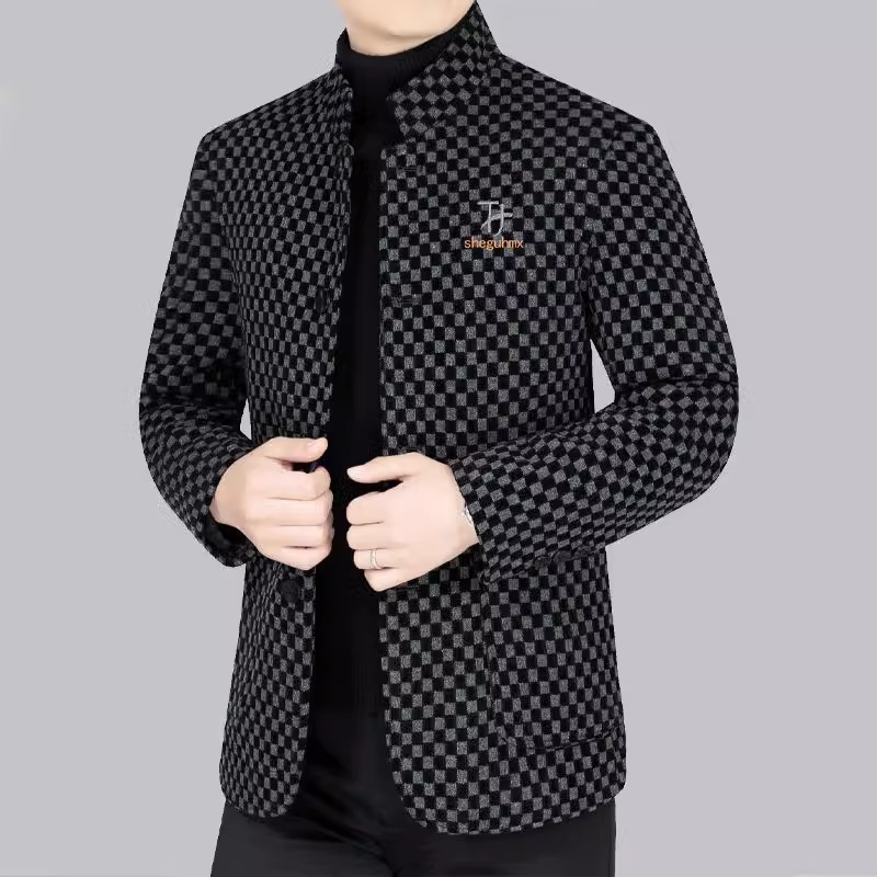 2025秋季外套男士毛呢中年立领短款夹克秋冬爸爸装男上衣时尚都市