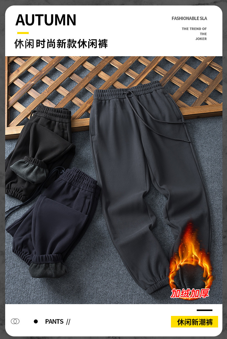 秋冬松紧腰男款束脚裤2025年冬季新款男士卫裤加绒加厚休闲长裤