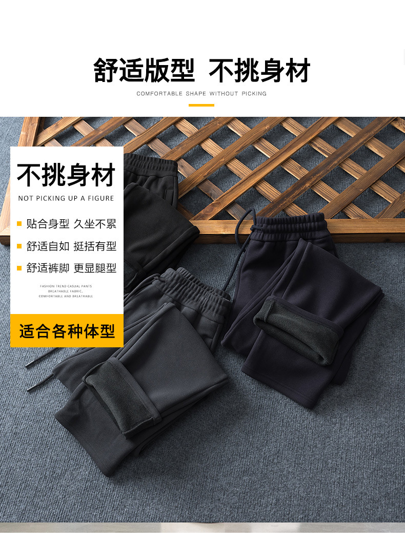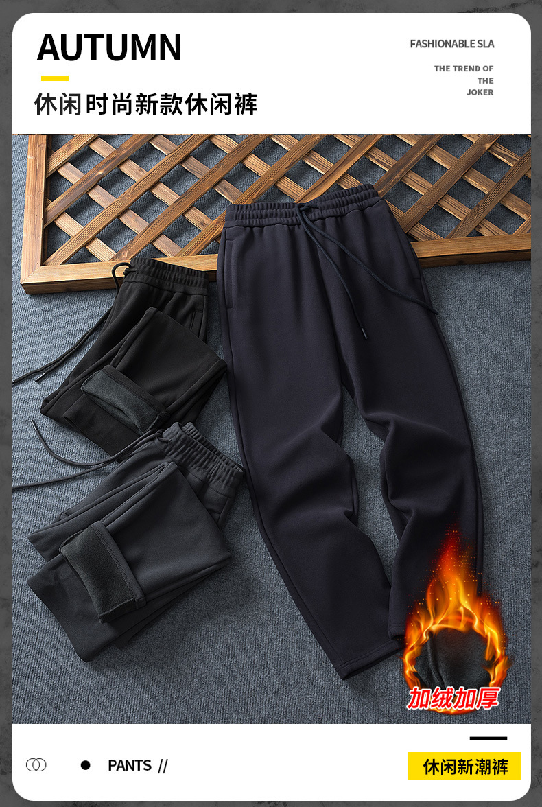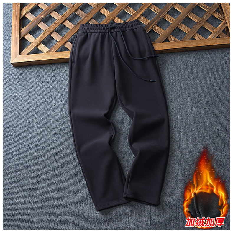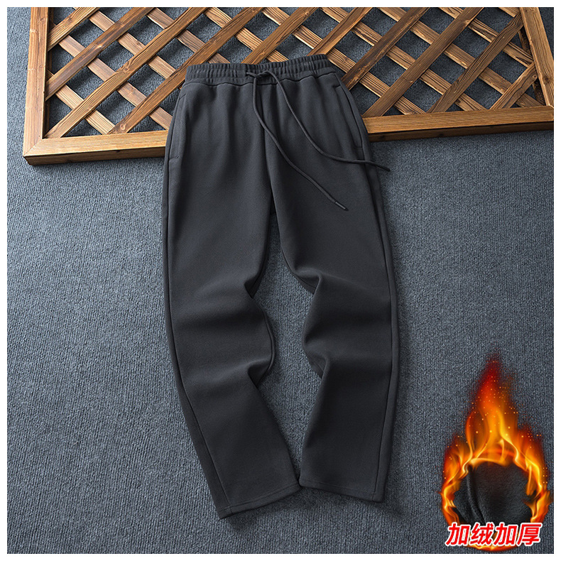 批发秋冬加绒松紧带卫裤男士百搭宽松直筒大码男裤韩版潮流休闲裤