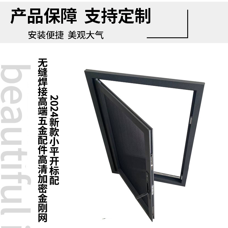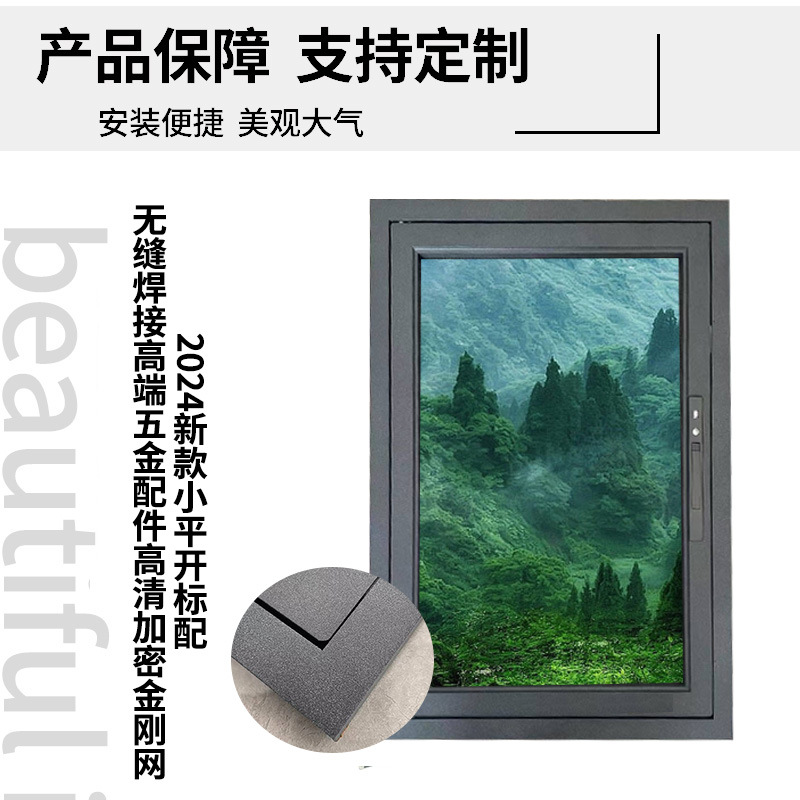 定制金刚网纱窗自装免打孔带锁儿童防护窗窄边小平开窗户网防盗窗