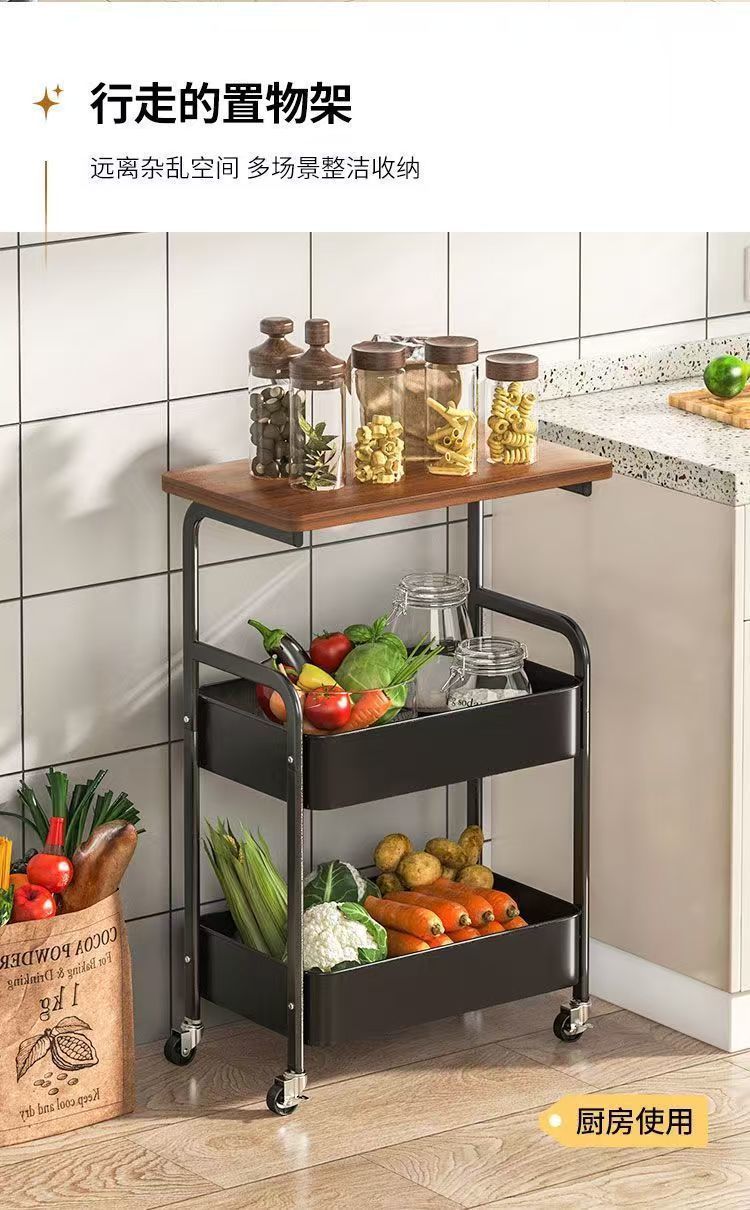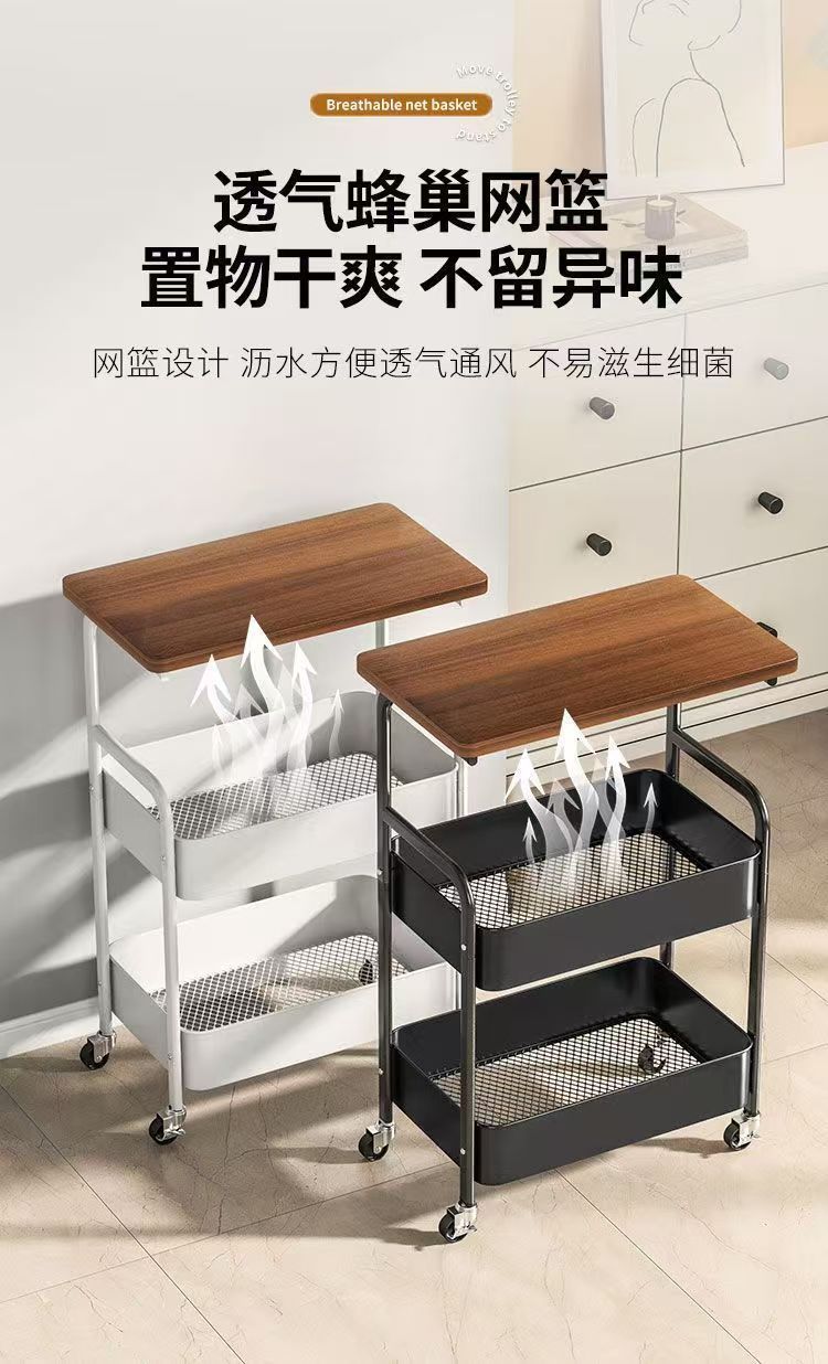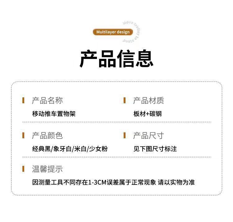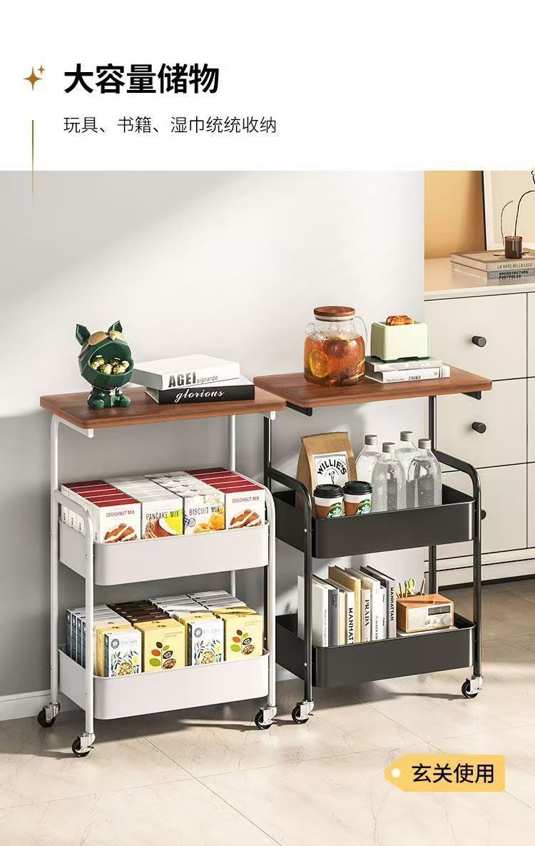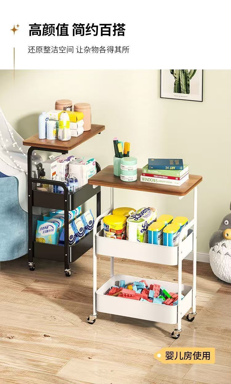 关键词:奶油简约收纳卧室客厅浴室夹缝落地可移动零食储物架两层小推车