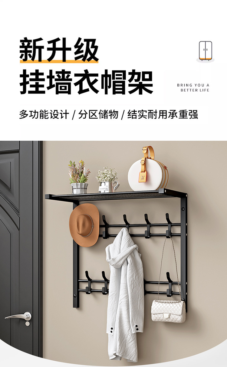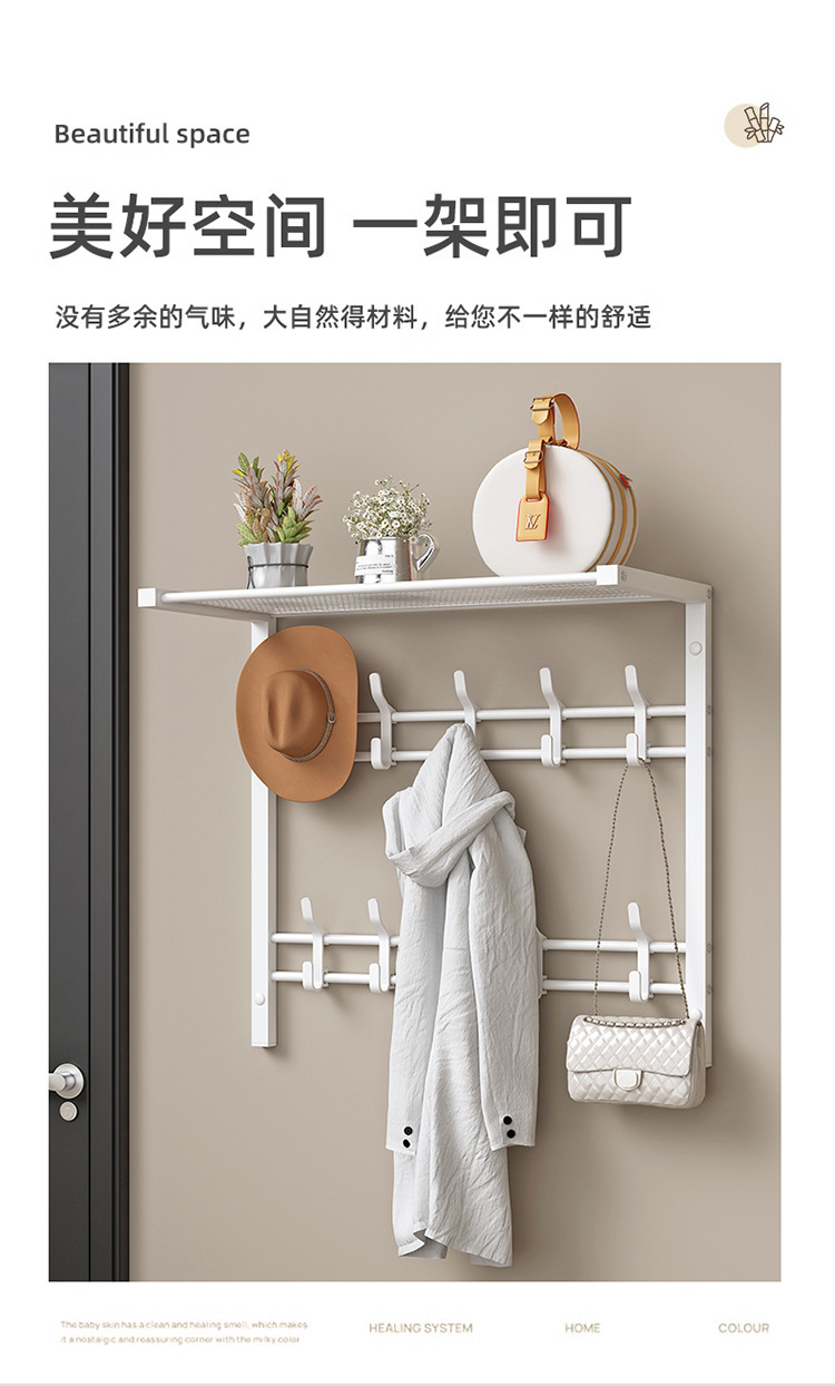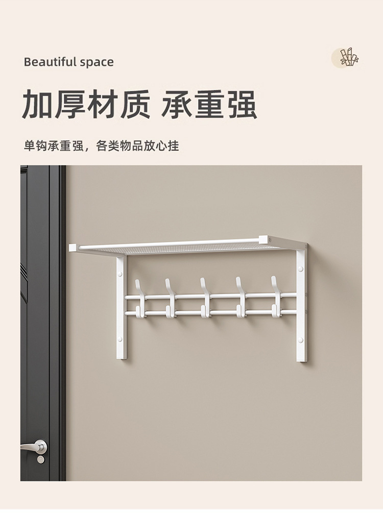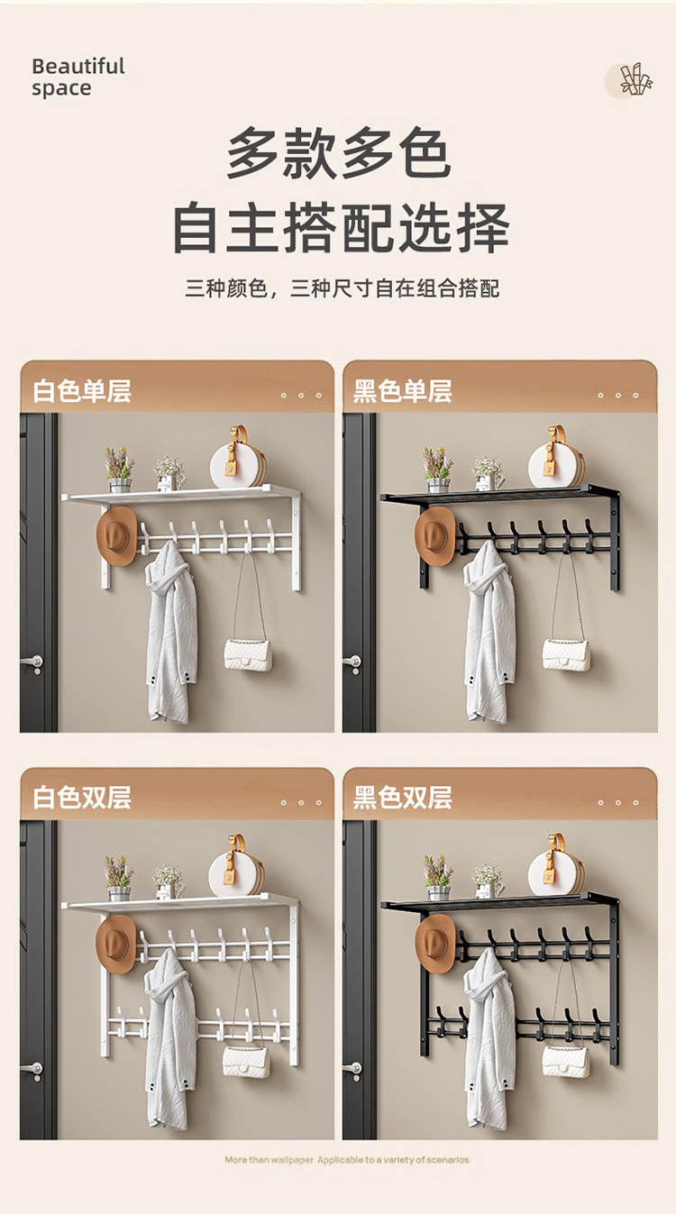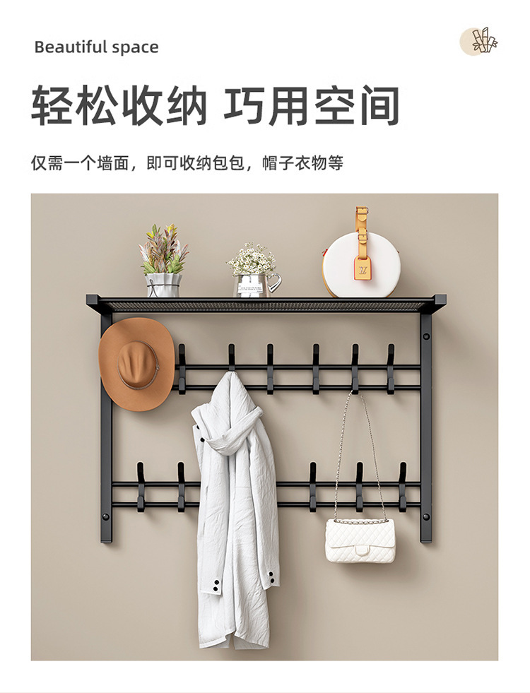 推荐理由:免打孔墙壁挂衣架厂家批发家用玄关门后壁挂衣帽收纳架金属置物架