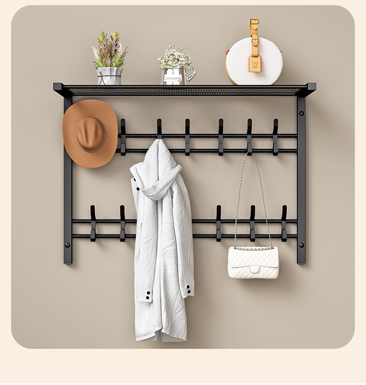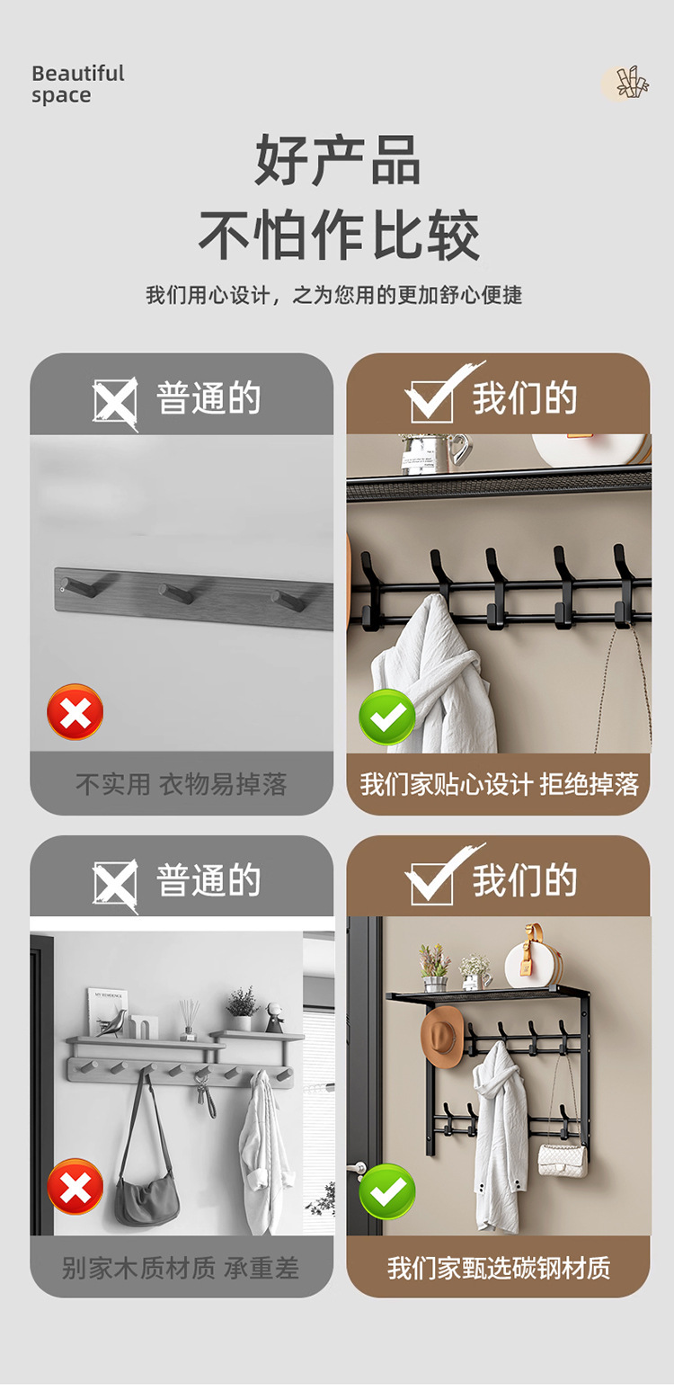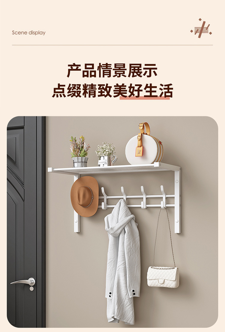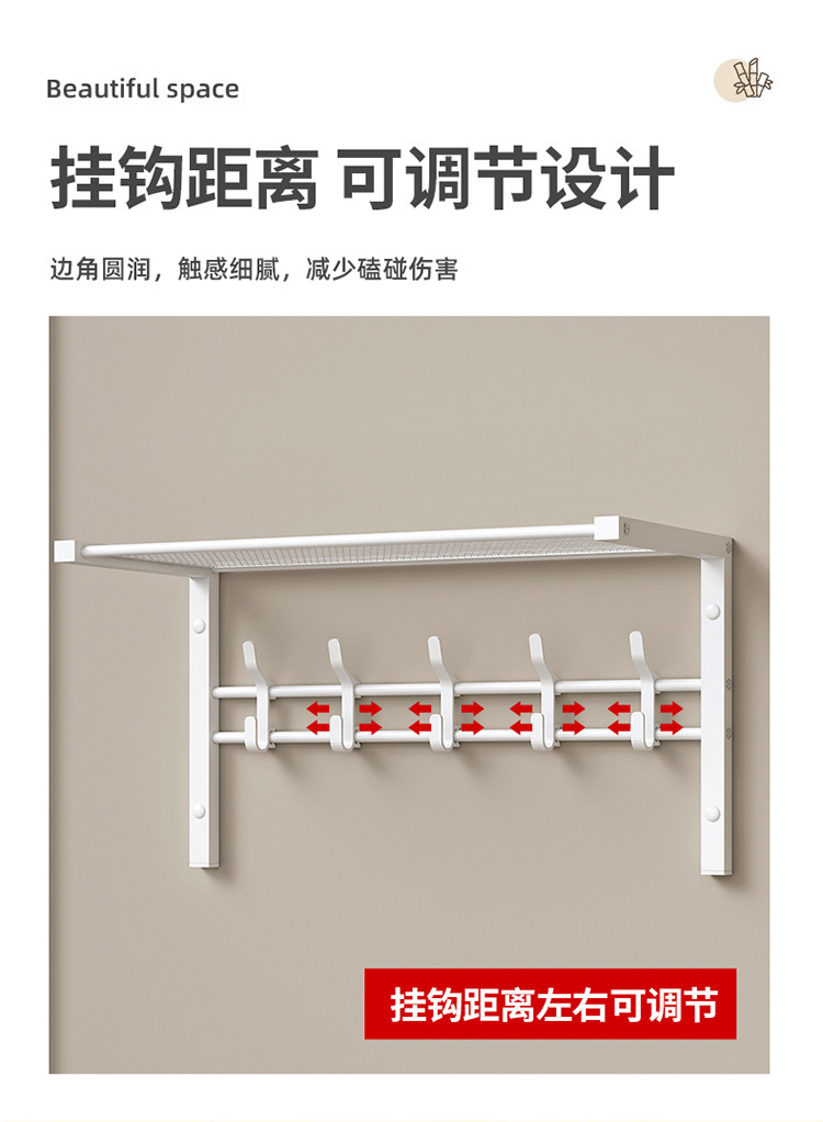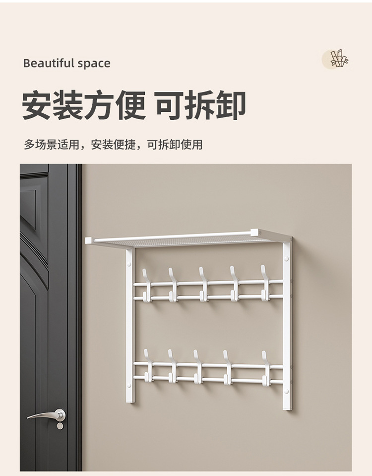 推荐理由:免打孔墙壁挂衣架厂家批发家用玄关门后壁挂衣帽收纳架金属置物架