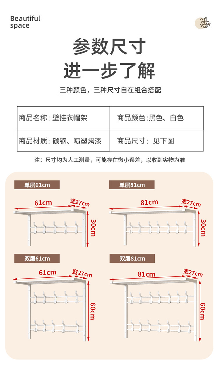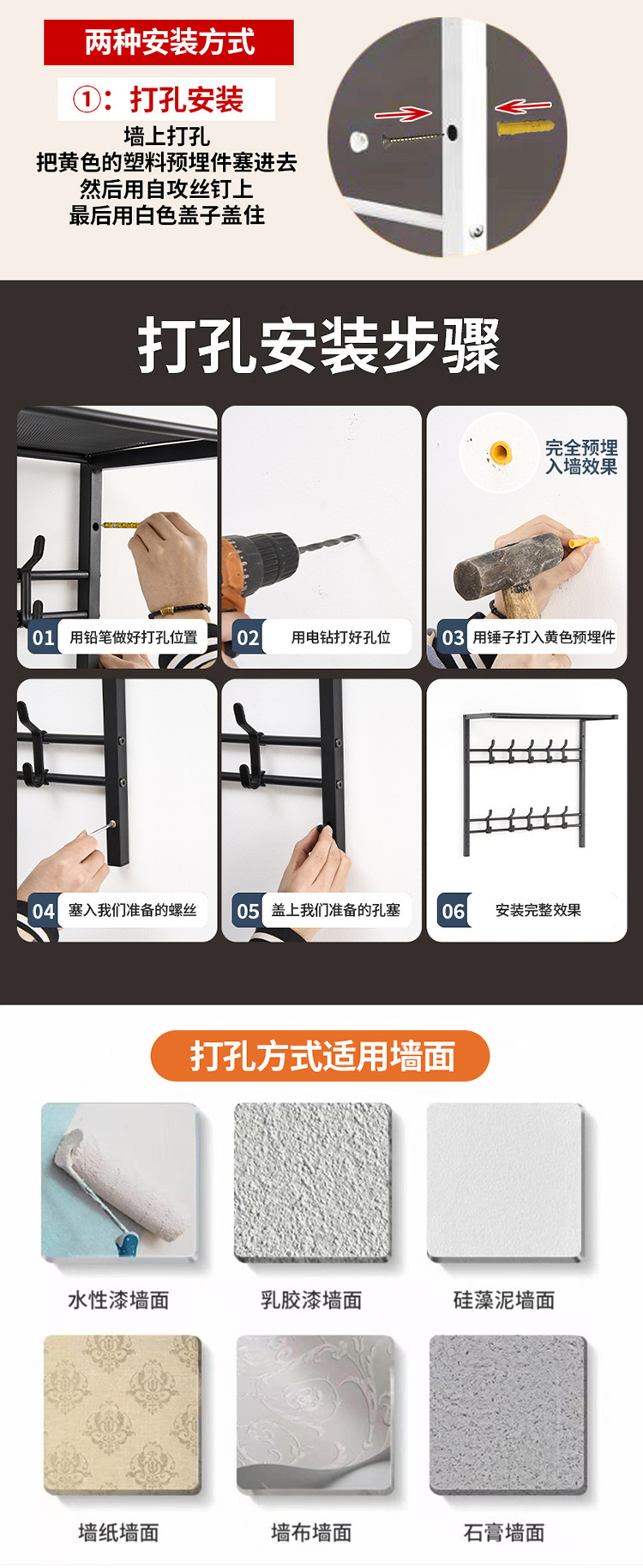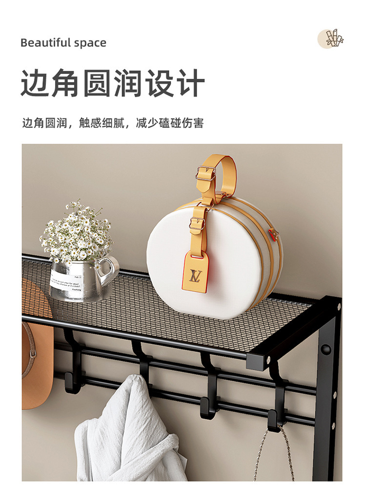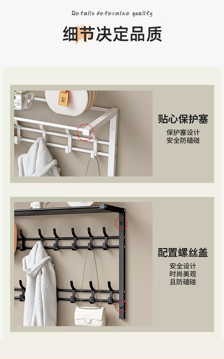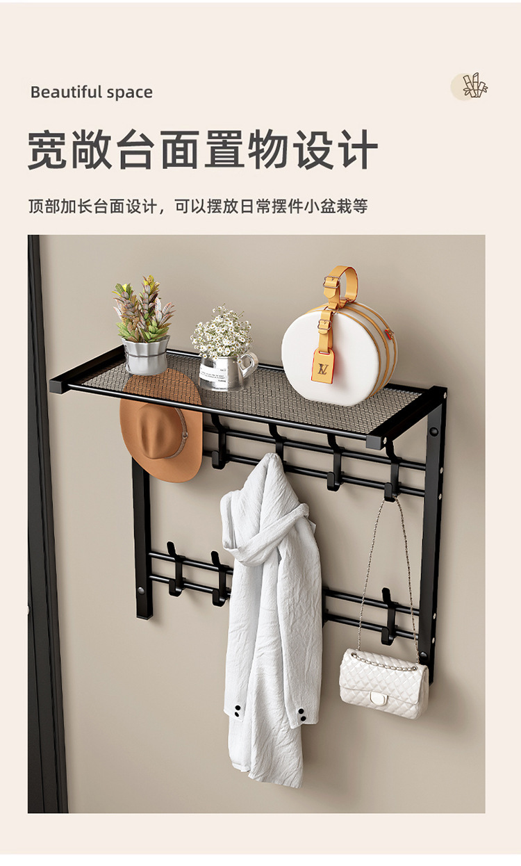 推荐理由:免打孔墙壁挂衣架厂家批发家用玄关门后壁挂衣帽收纳架金属置物架
