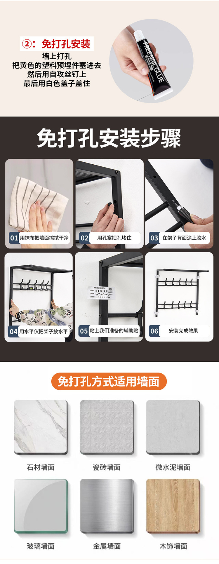 关键词:免打孔墙壁挂衣架厂家批发家用玄关门后壁挂衣帽收纳架金属置物架
