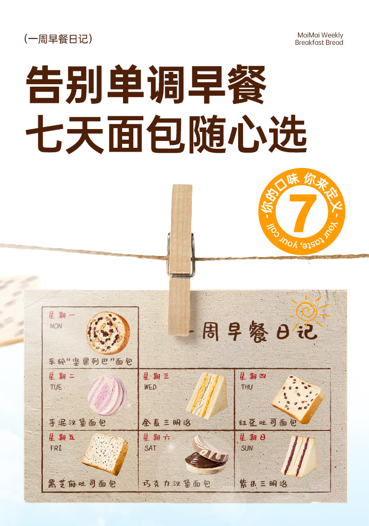 一周早餐麦麦的日记面包全麦车轮坚果面包嫩吐司下午茶推荐代餐