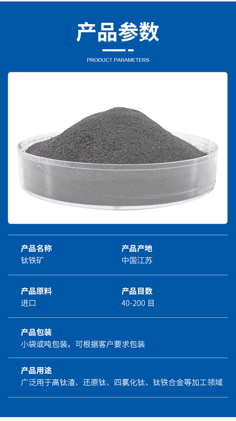 关键词:钛铁矿,钛精矿,高纯钛铁矿,钛矿,钛铁矿砂,钛精矿砂