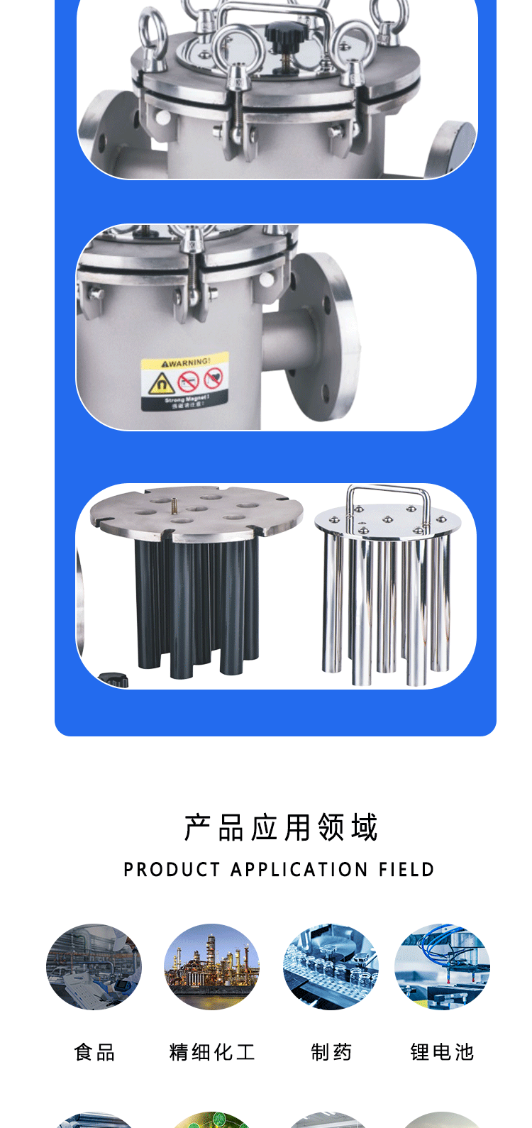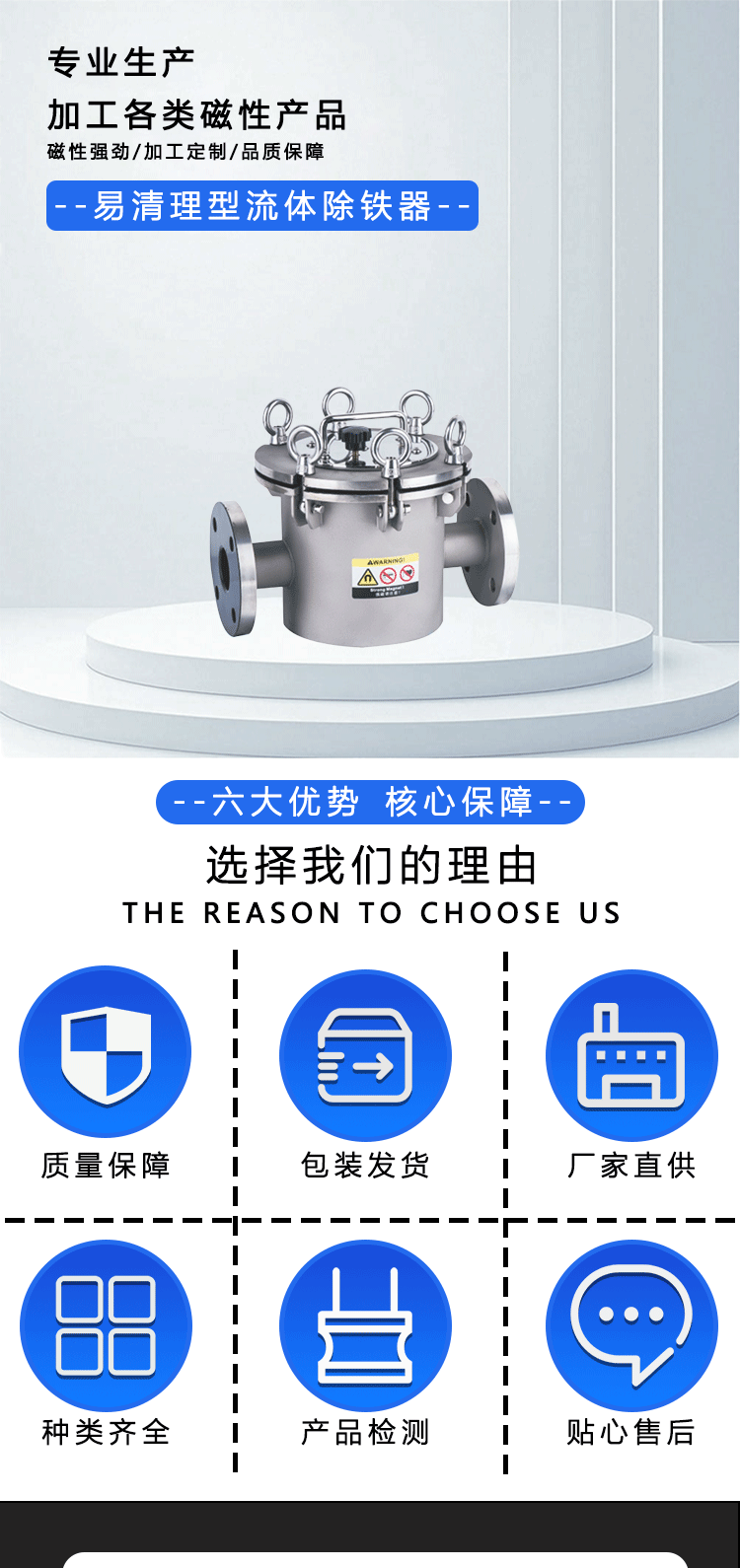 304不锈钢流体除铁器食品级液体浆料磁性过滤器易清理流体除铁器