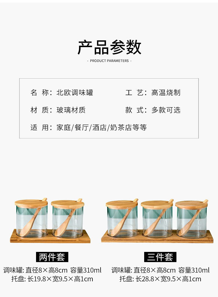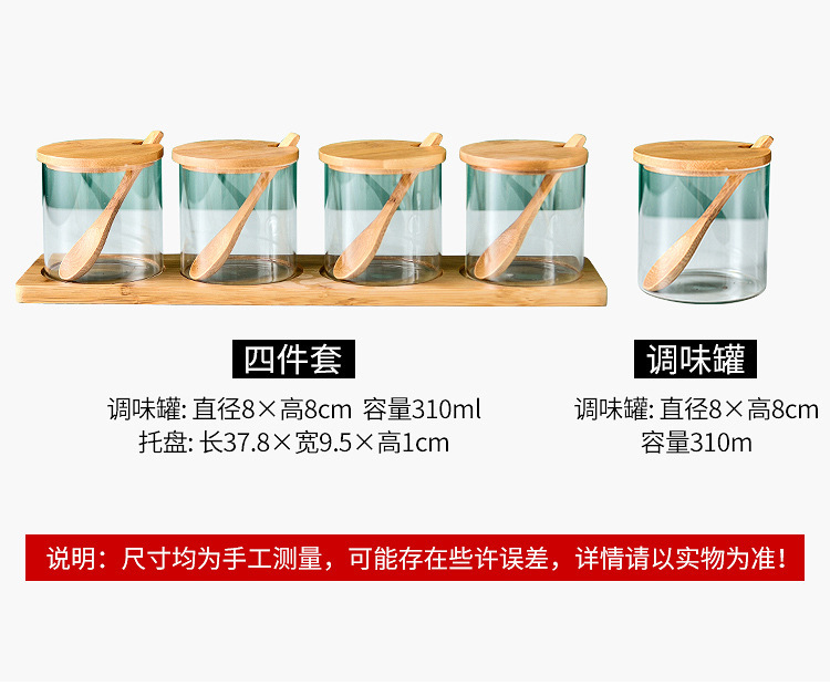 竹木盖带勺收纳盒玻璃调料瓶味精盐罐子高硼硅玻璃调味罐套装组合