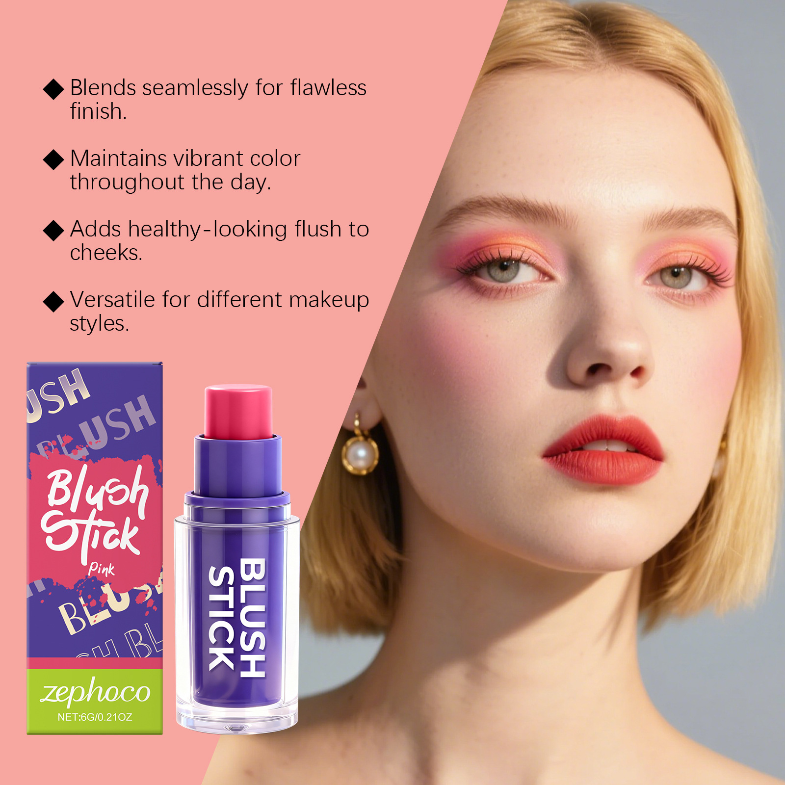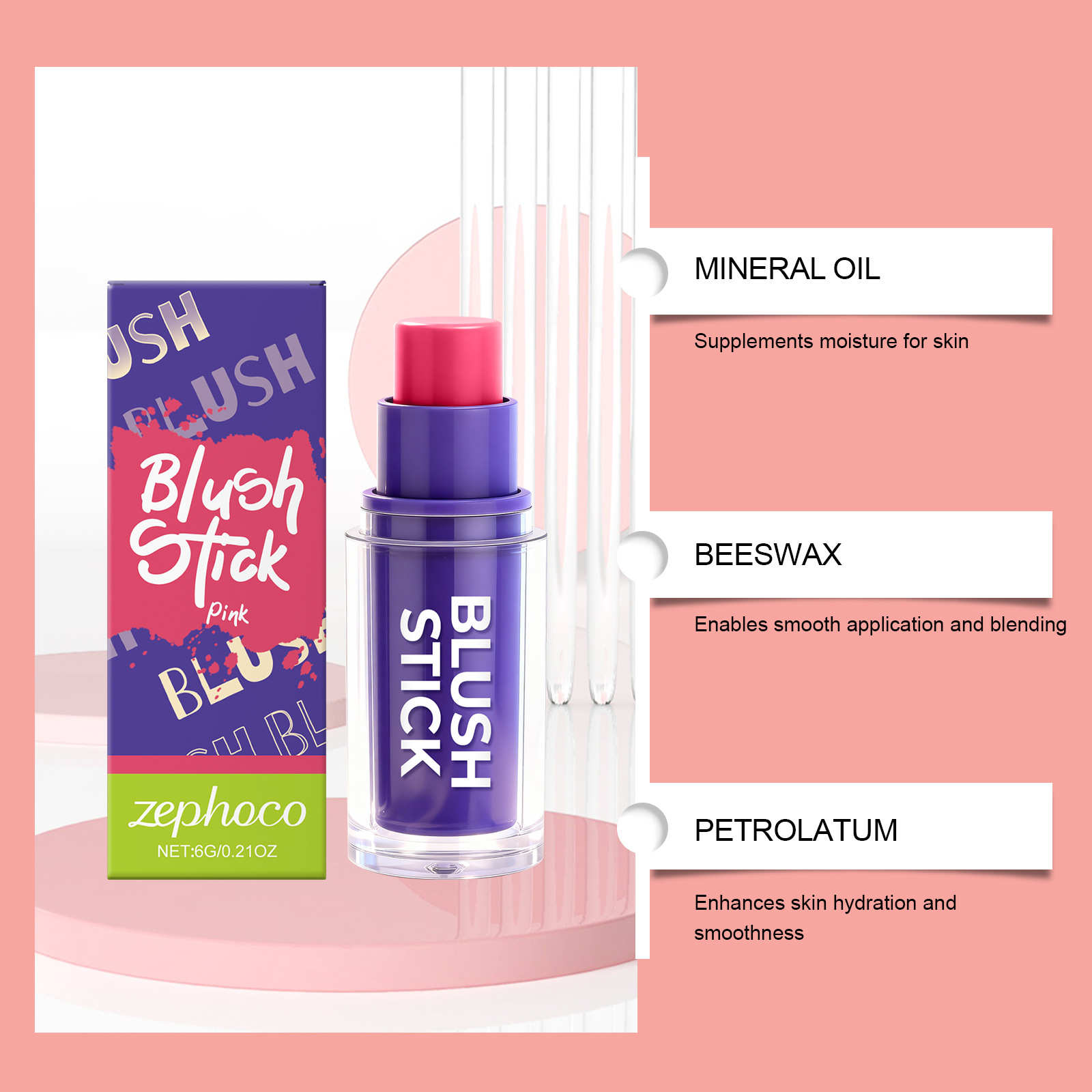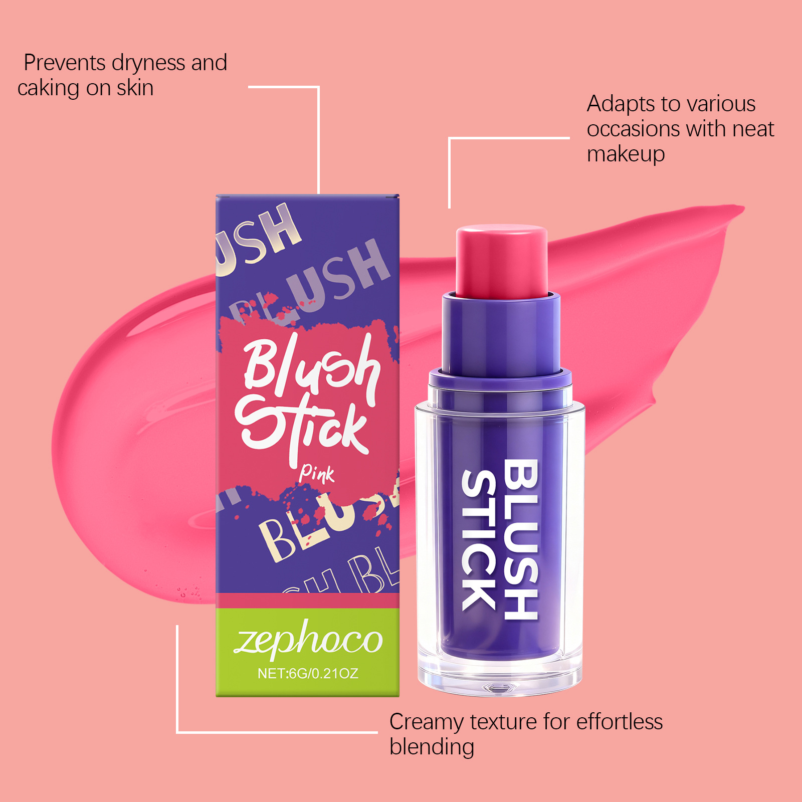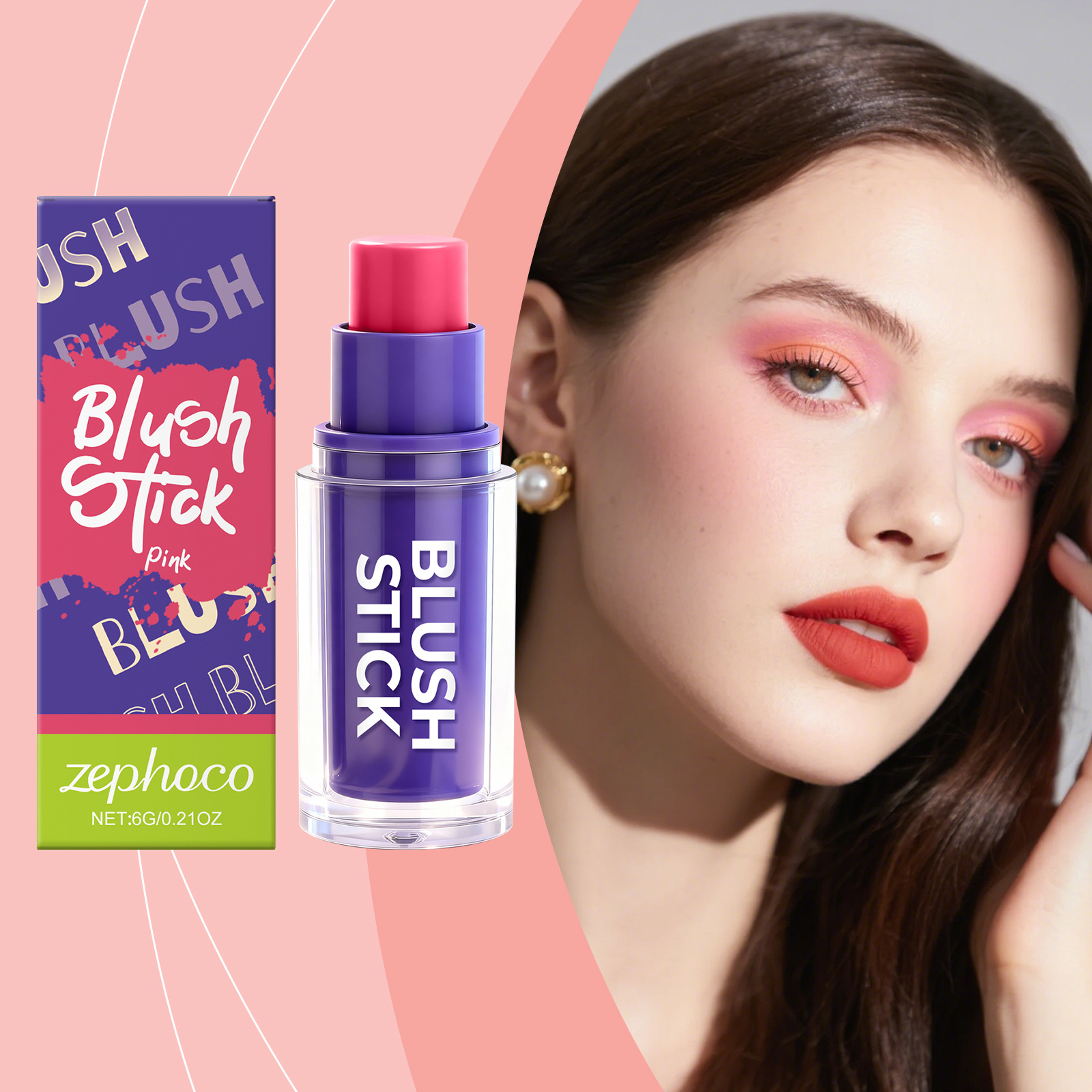 关键词:zephoco 粉色腮红棒 滋润丝滑自然显色打造日常面部妆容