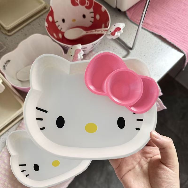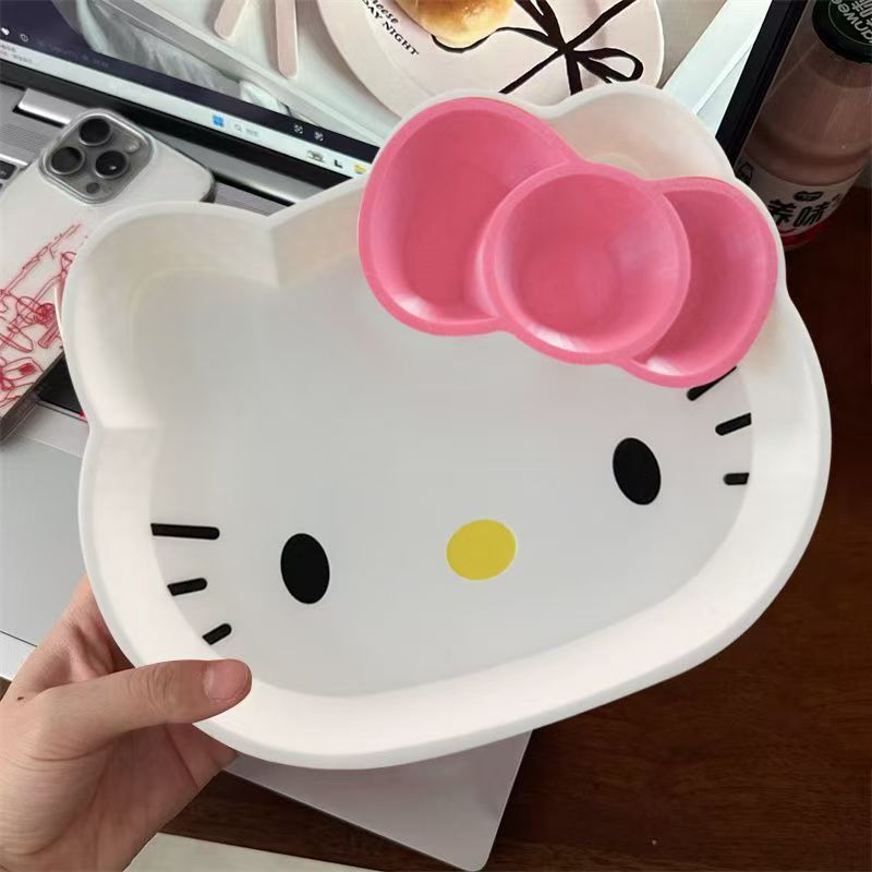 新款可爱凯蒂猫盘少女心分格饺子盘零食点心吐骨家用盘hellokitty