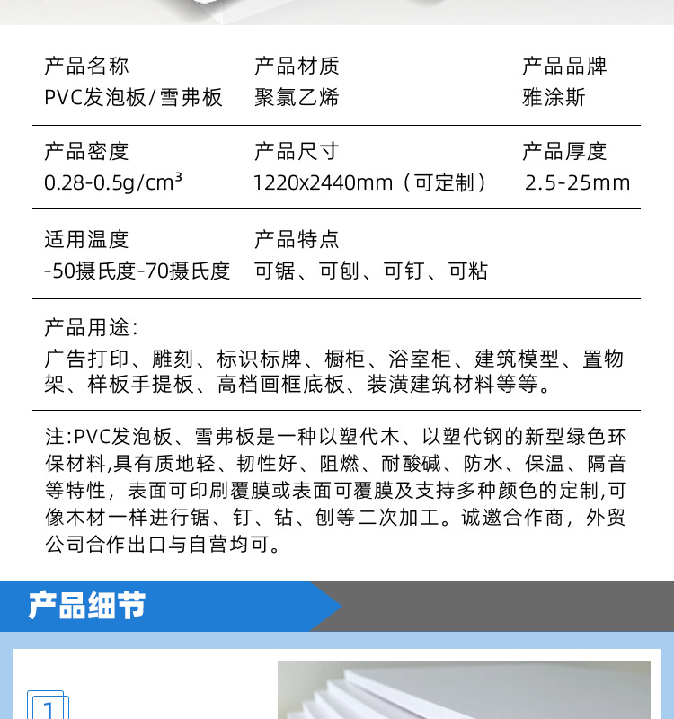 高密度PVC共挤板室内家居装饰橱柜卫浴板智能镜PVC硬板光面雪弗板