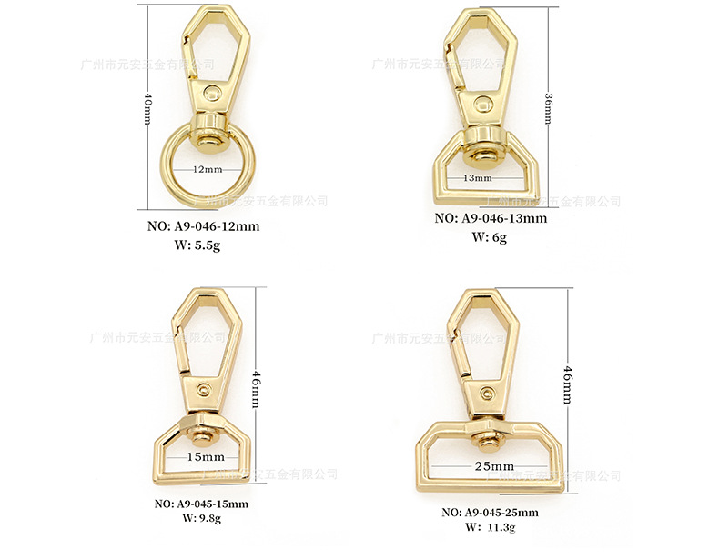 批发五金箱包配件多种规格菱形扣钥匙扣饰品挂扣多边形狗扣
