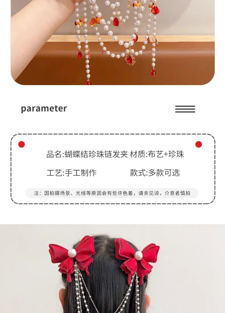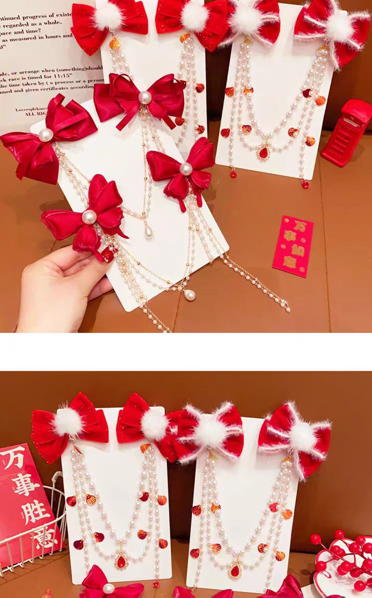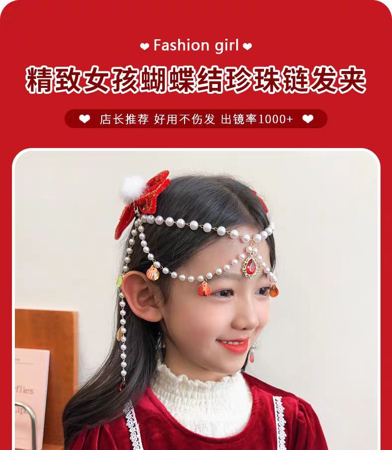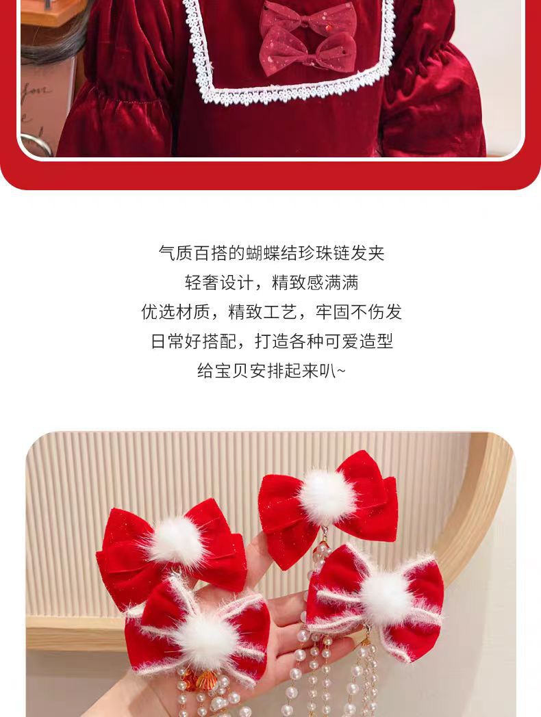 儿童红色蝴蝶结发夹新年女童公主后脑勺发链宝宝超仙对夹过年头饰