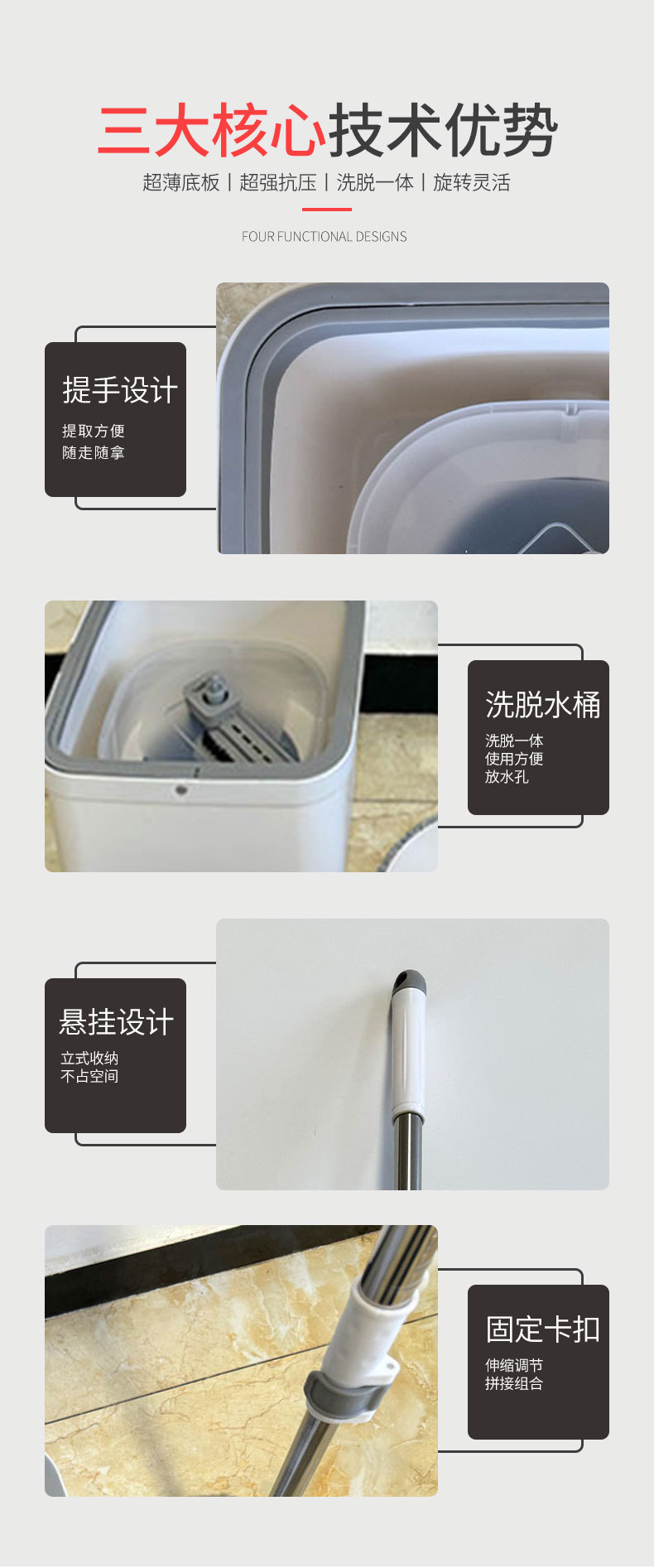 圆形免手洗一拖净懒人拖把圆头方型单筒拖把干湿两用清洁拖把