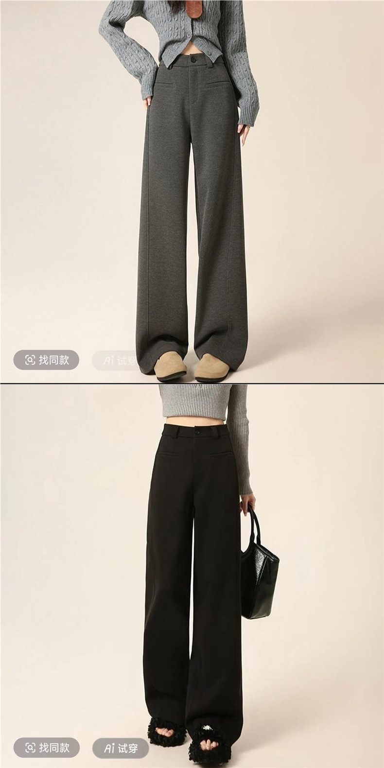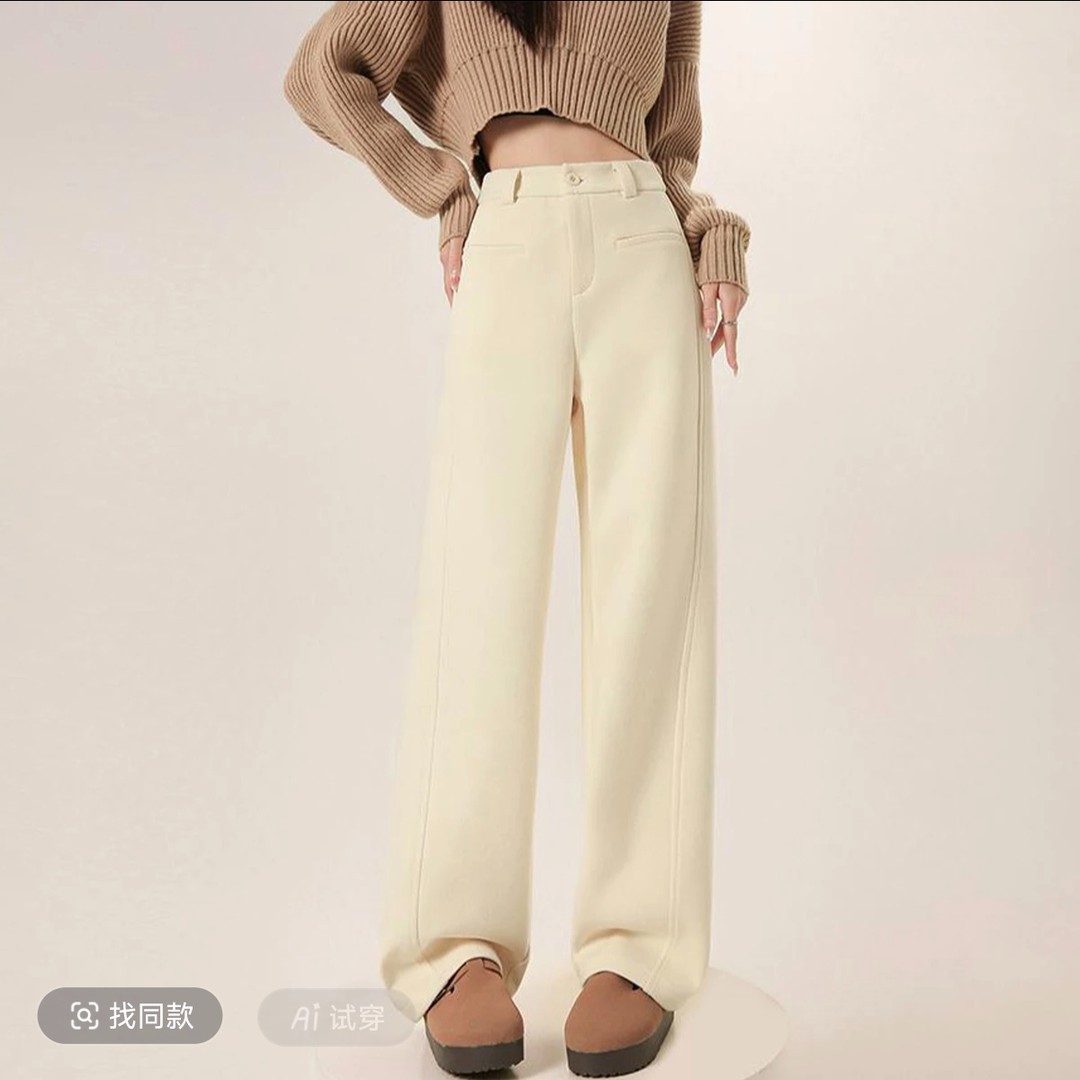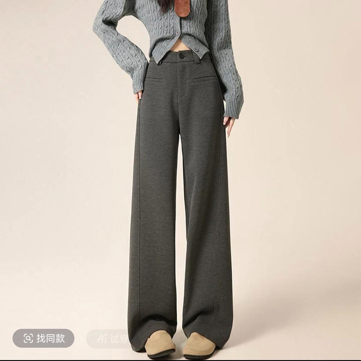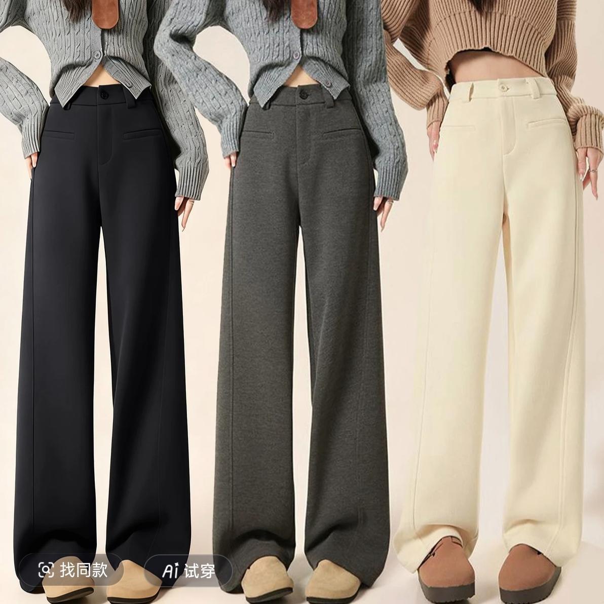 万人好评~【毛呢加绒】窄版阔腿裤秋冬加绒加厚高腰显瘦直筒裤