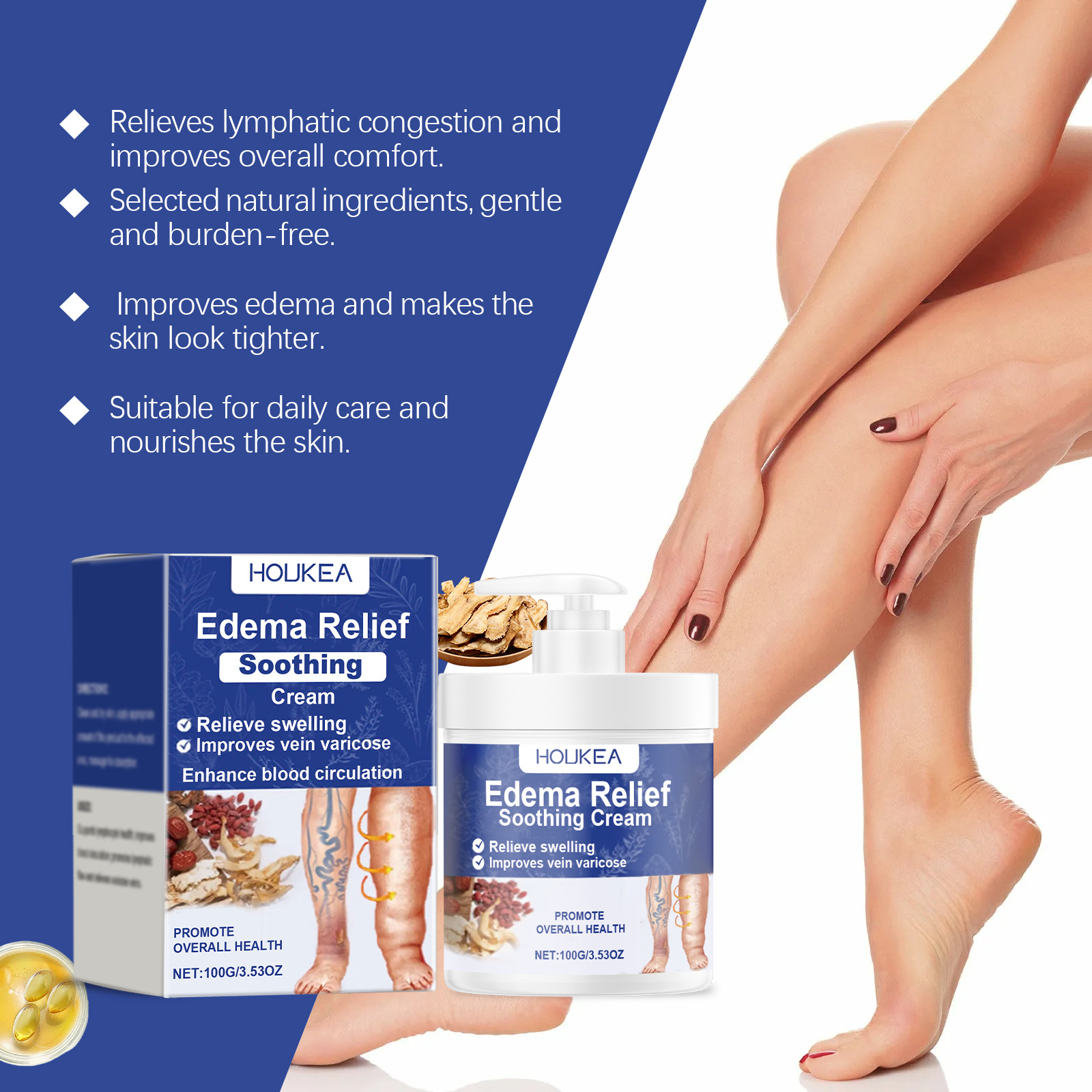 HOUKEA 腿部护理霜 日常滋润按摩腿部肌肤温和配方身体护理霜