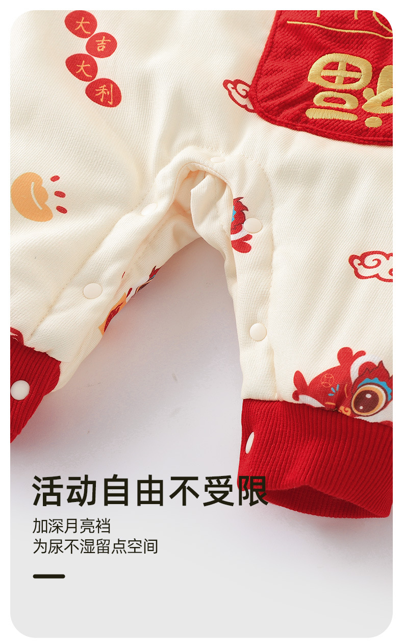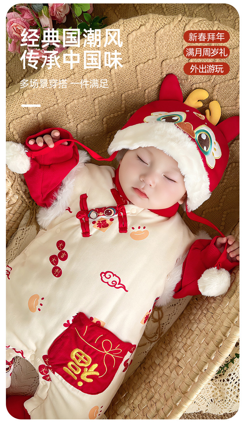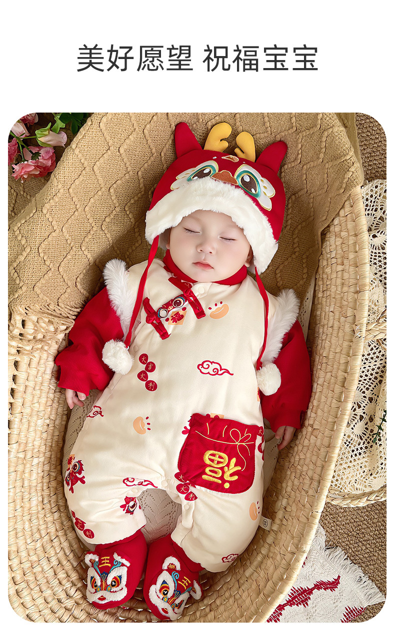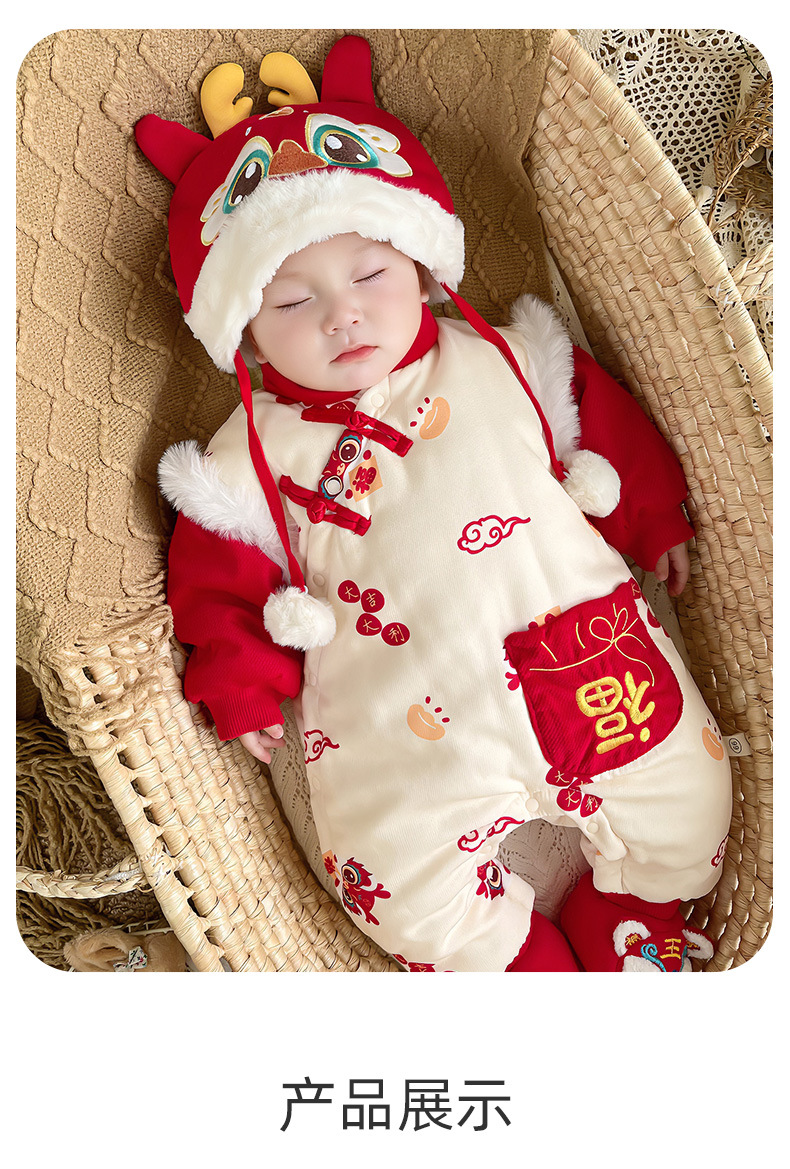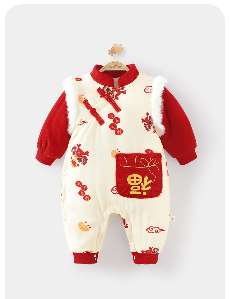 优奇婴儿衣服秋冬季宝宝喜庆红连体衣满月百天周岁礼服新年拜年服