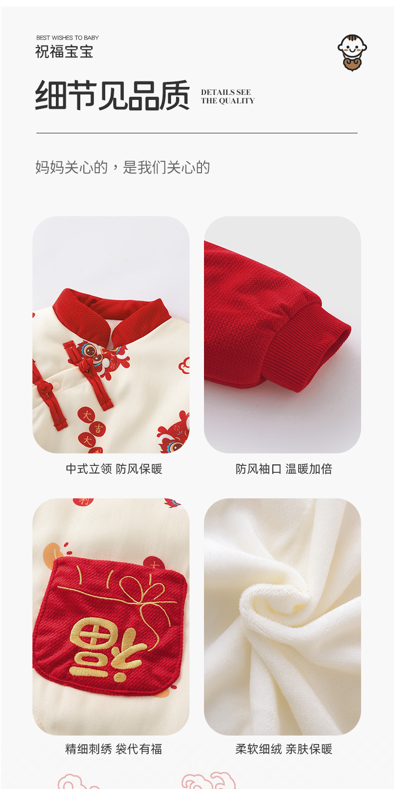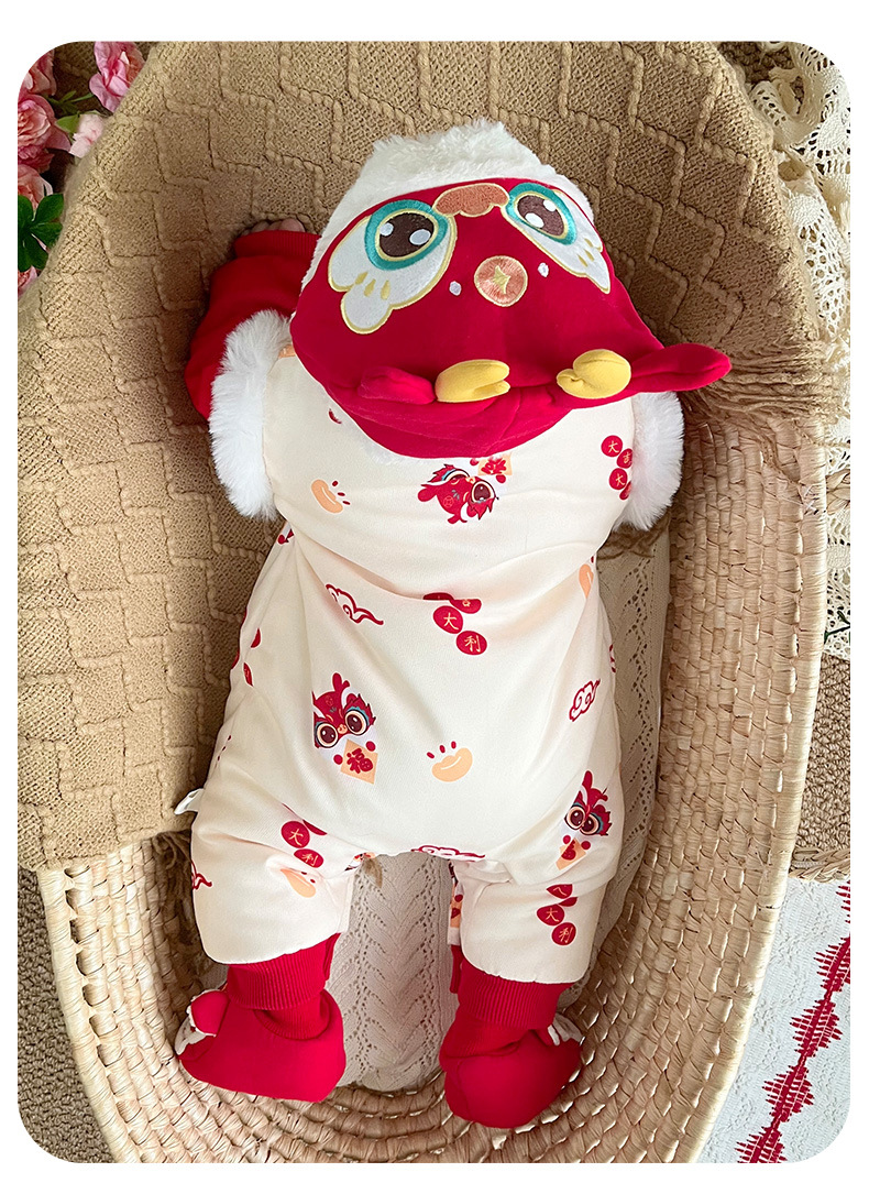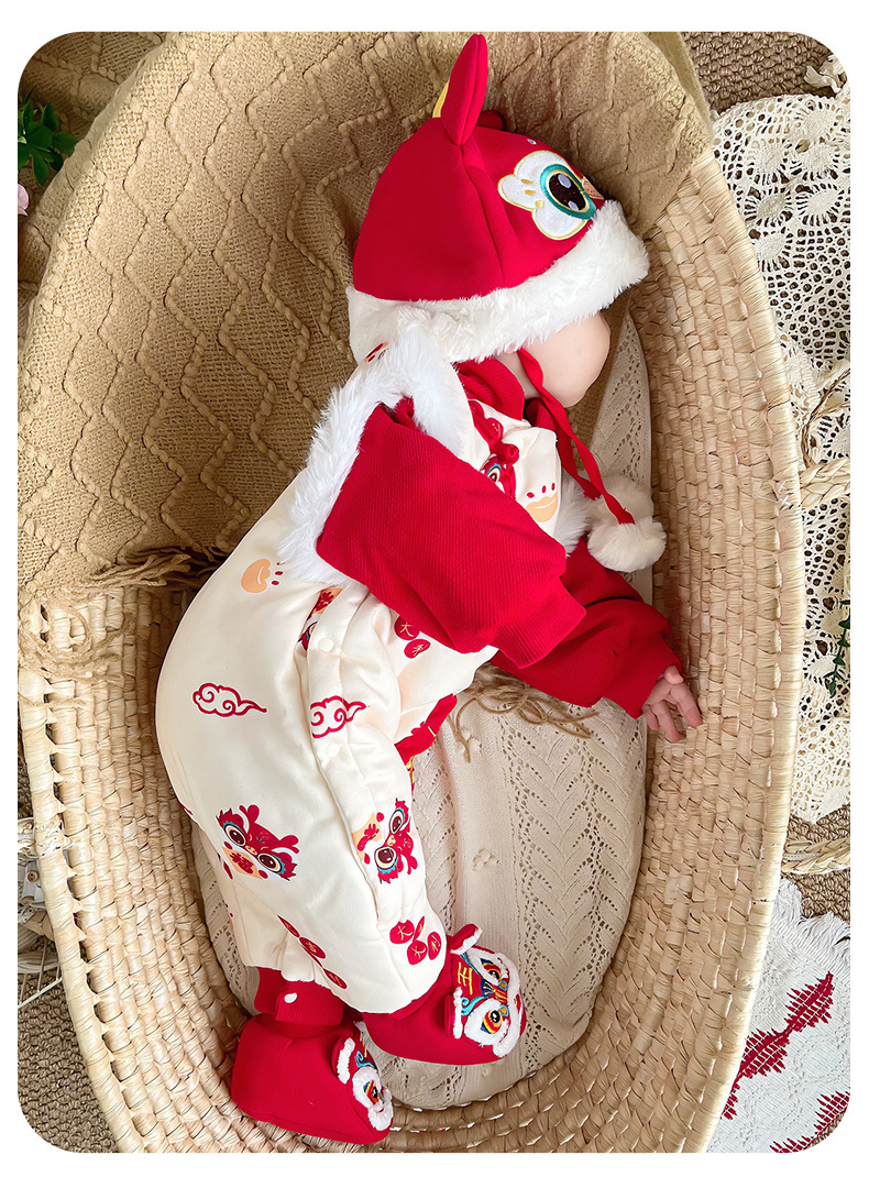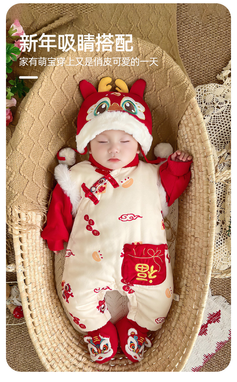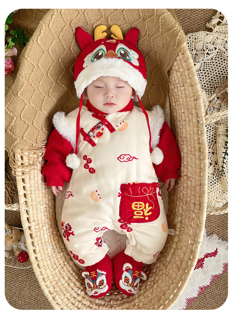 优奇婴儿衣服秋冬季宝宝喜庆红连体衣满月百天周岁礼服新年拜年服