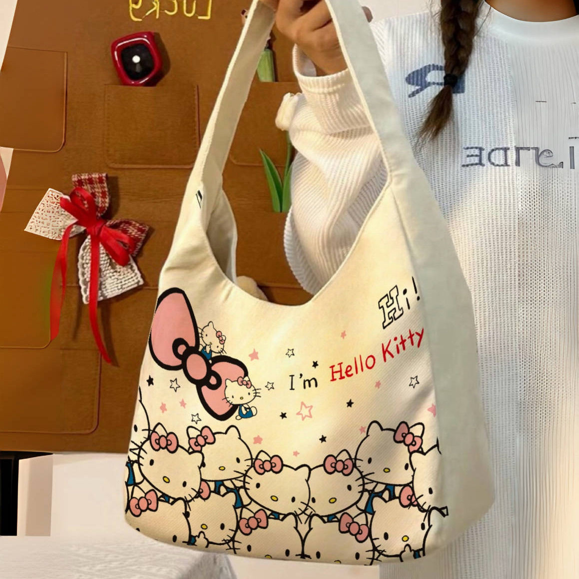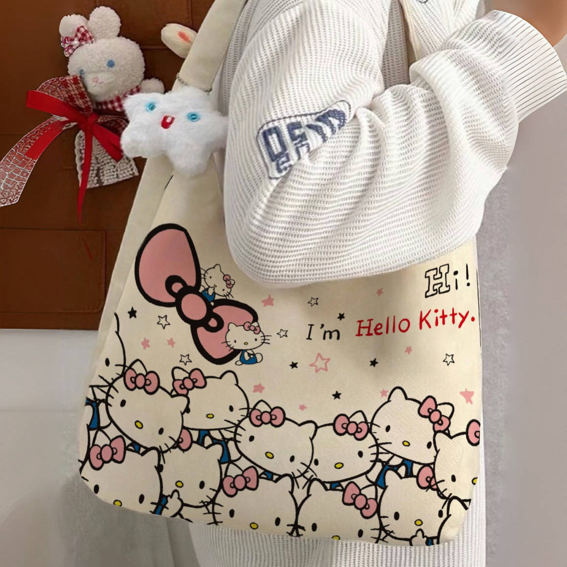 hellokitty卡通帆布包时尚包女手提袋可爱通勤百搭单肩托特大容量